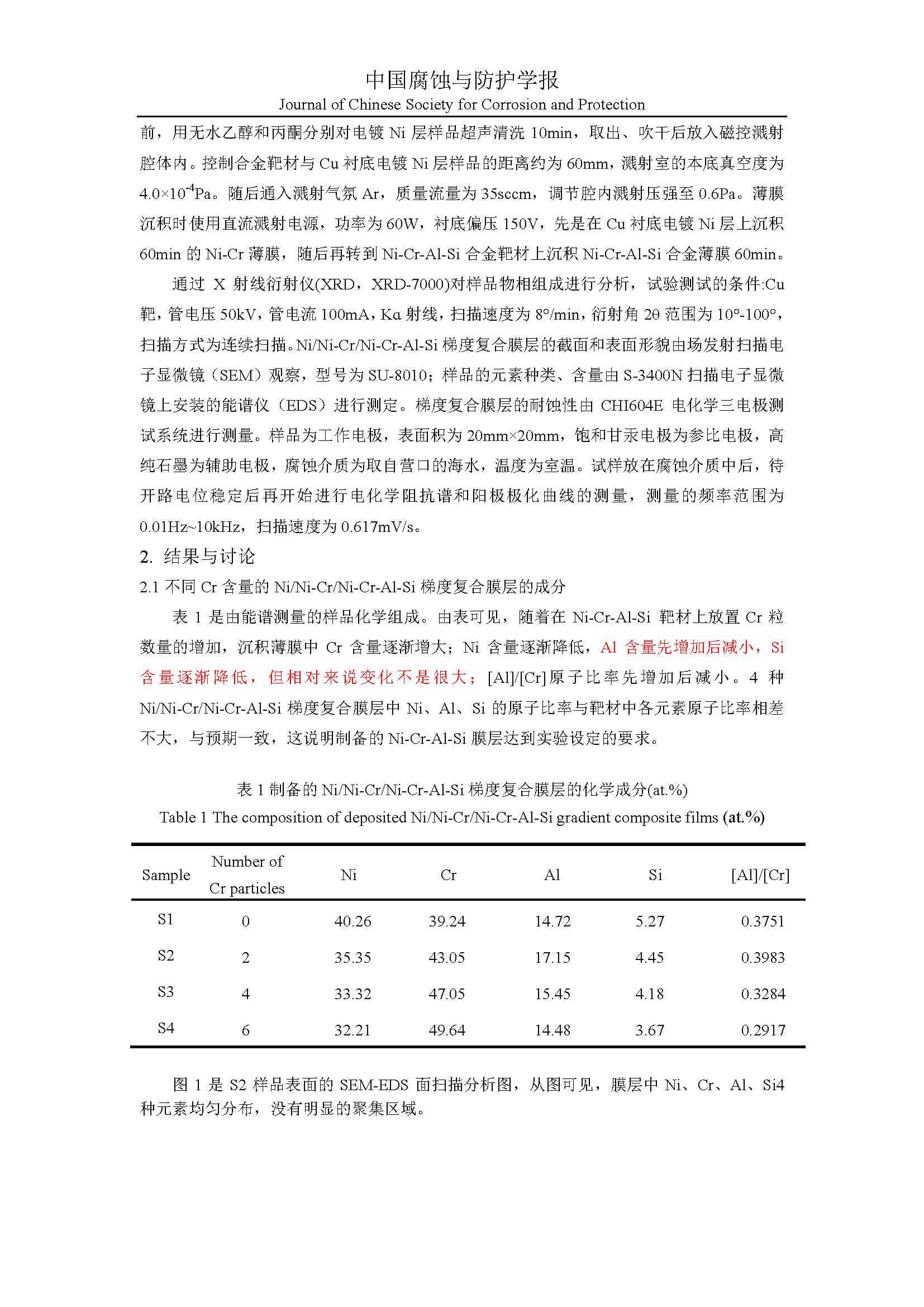 Cr含量对Cu合金表面Ni/Ni-Cr/Ni-Cr-Al-Si膜层耐蚀性的影响