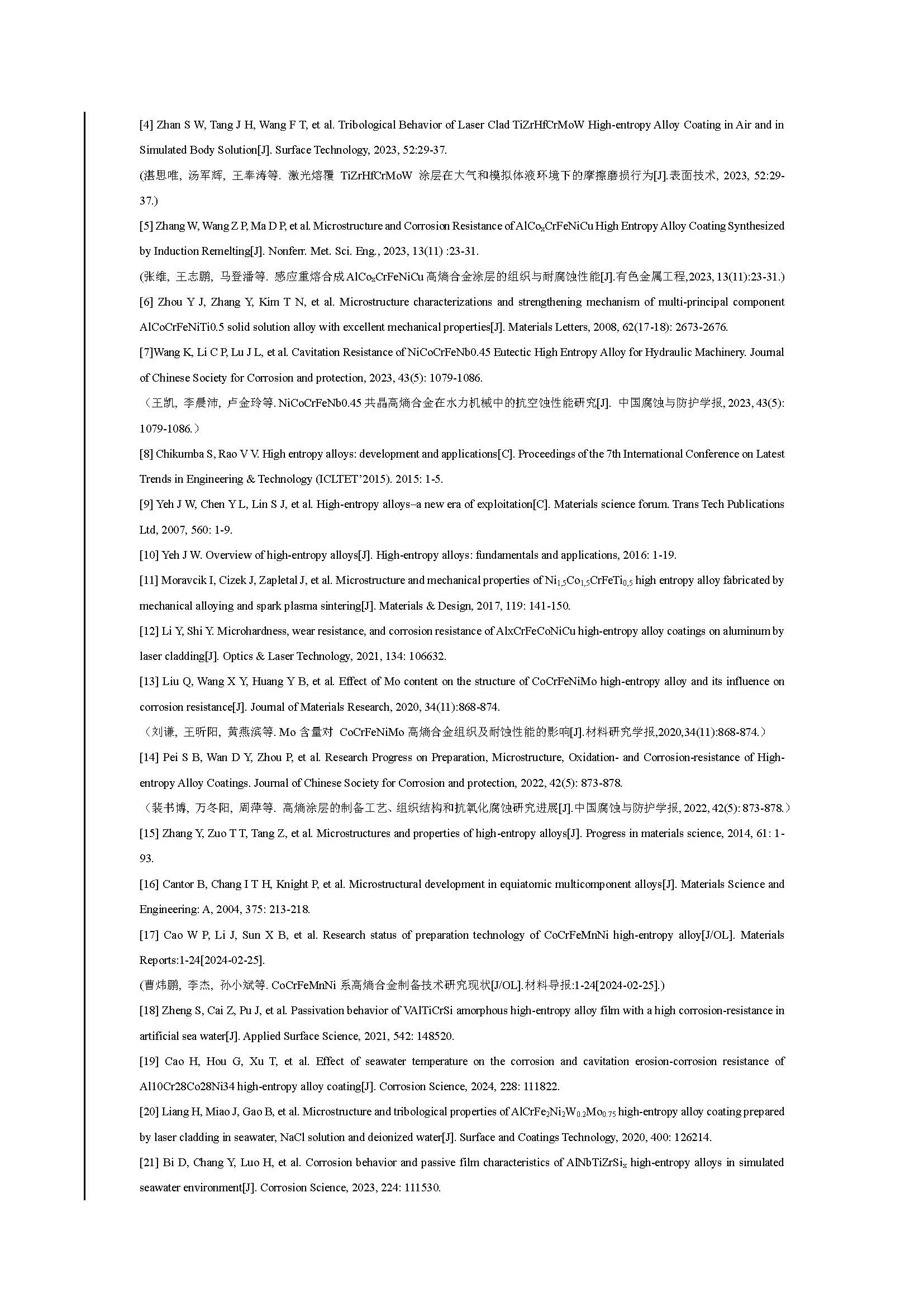 长沙理工大学利用激光增材制造高熵合金涂层抵御海上钢