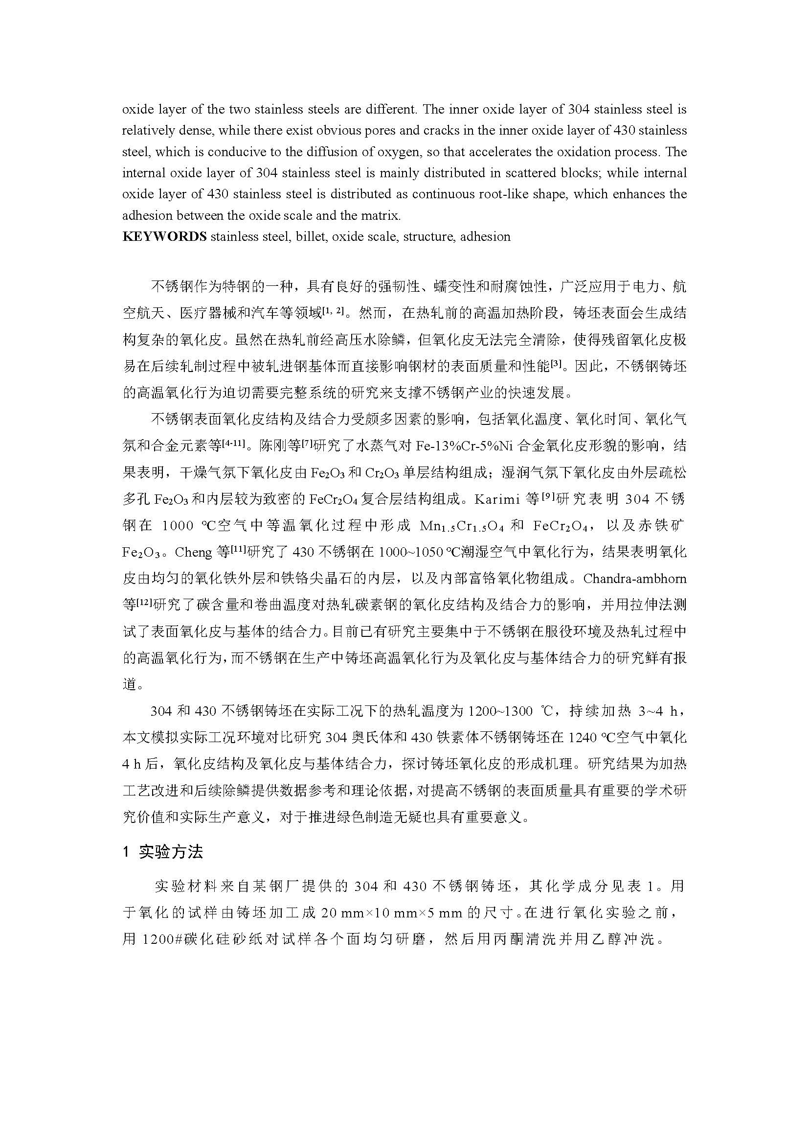 304和430不锈钢铸坯氧化皮结构及结合力研究