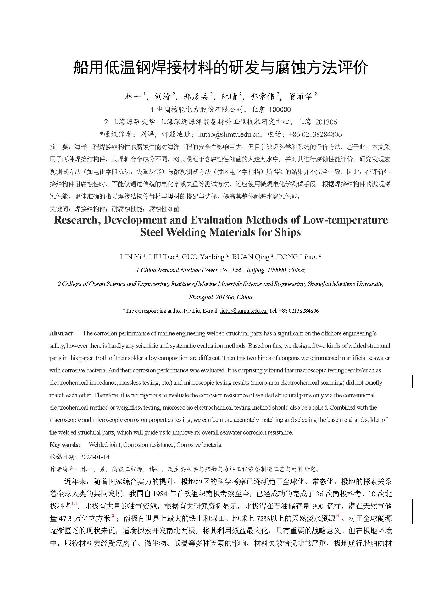 船用低温钢焊接材料的研发与腐蚀方法评价