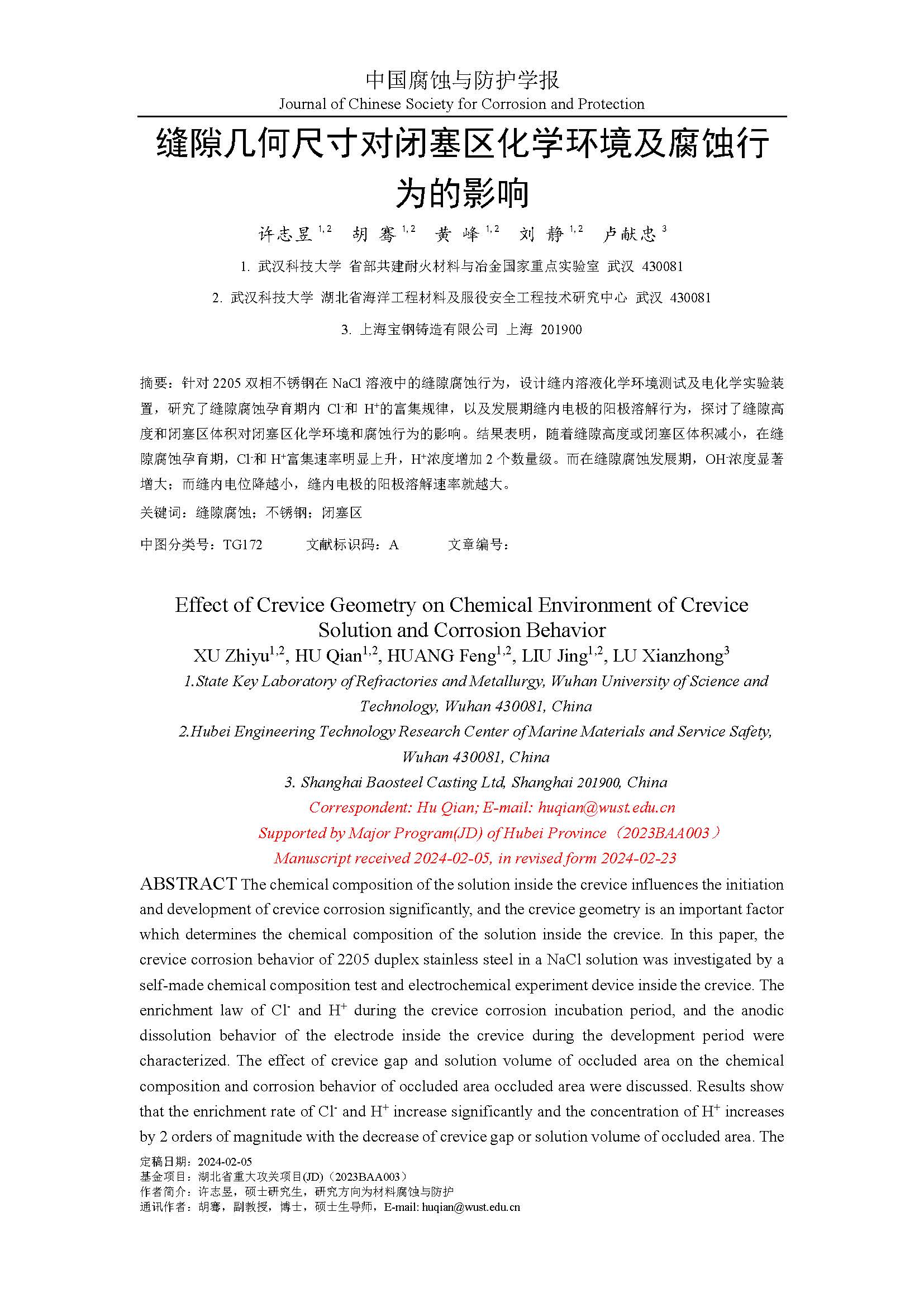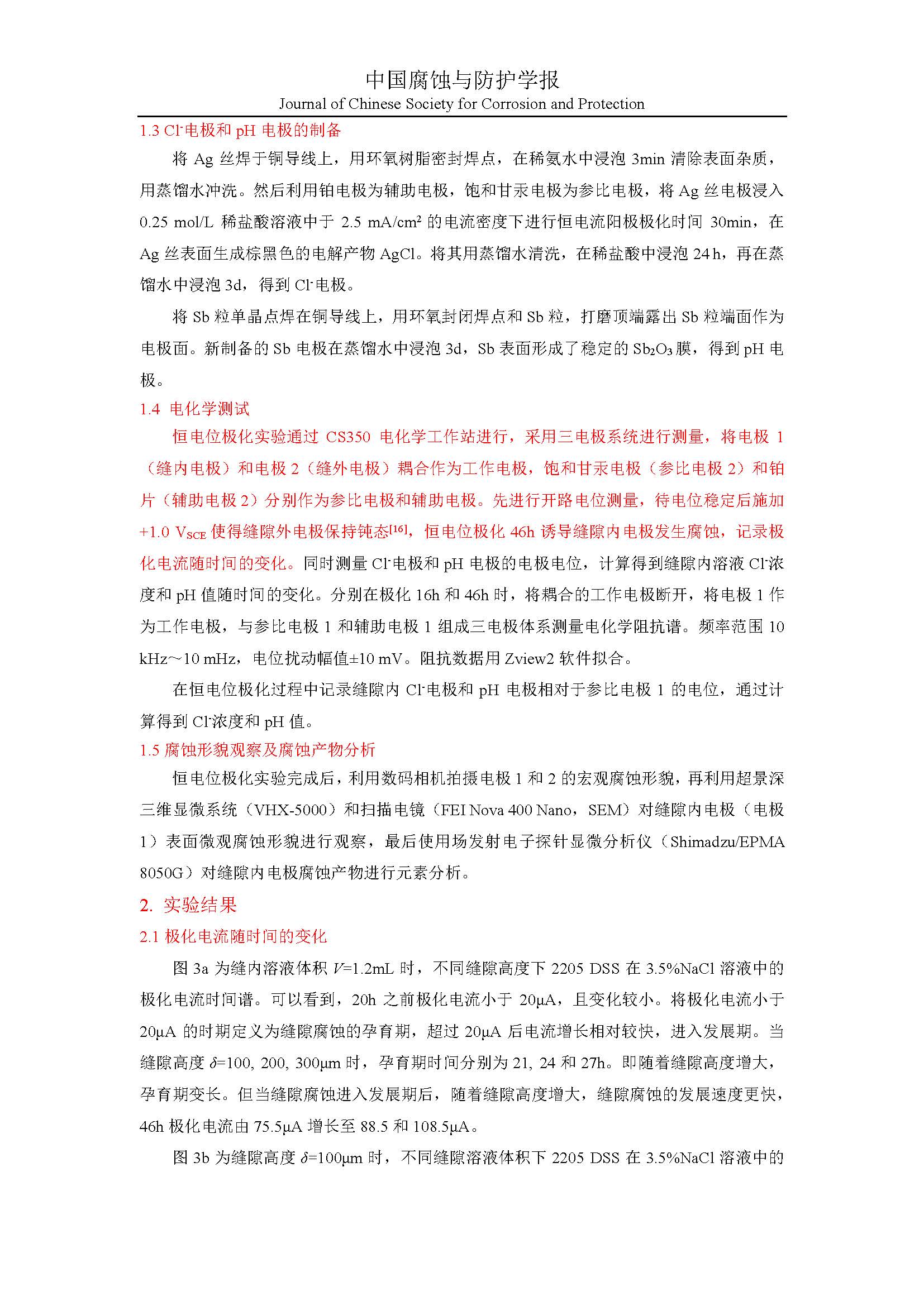 缝隙几何尺寸对闭塞区化学环境及腐蚀行为的影响