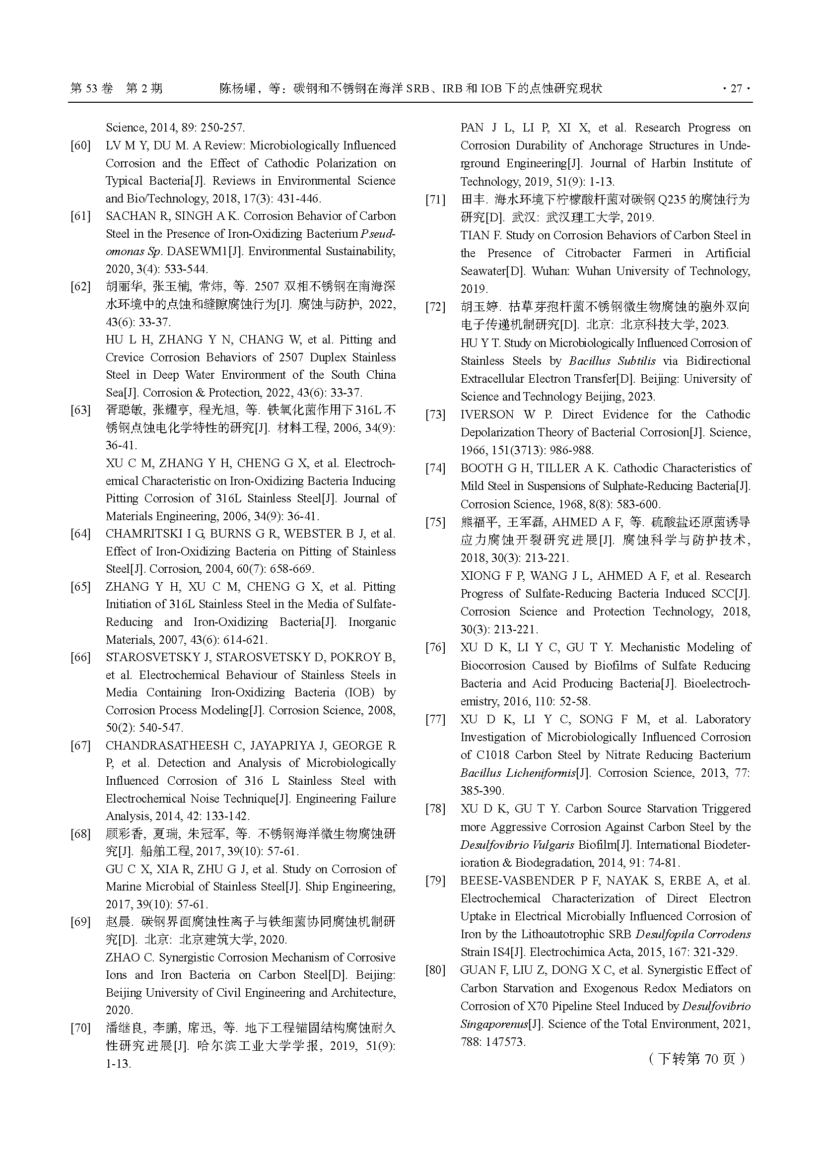 碳钢和不锈钢在海洋SRB、IRB和IOB下的点蚀研究现状