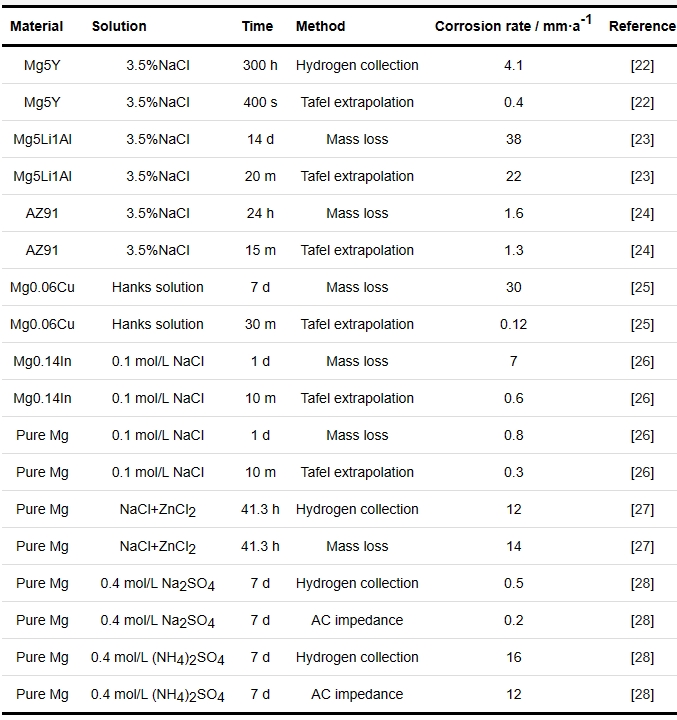 6 Atrens A, Shi Z M, Mehreen S U, et al. Review of Mg alloy corrosion rates [J]. J. Magnes. Alloy., 2020, 8: 989