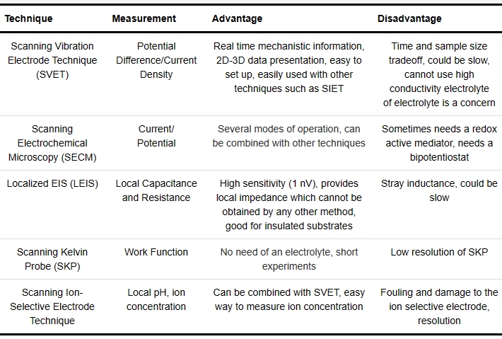 表2 微区电化学技术的特性和优缺点[4]