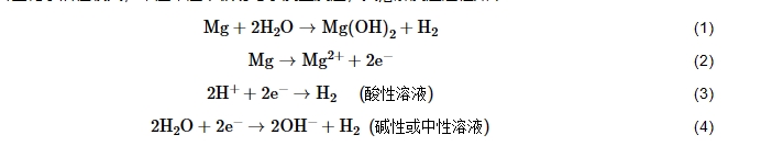 镁合金化学活性较大,常温常压下极易与水发生反应,其溶解反应过程如下: