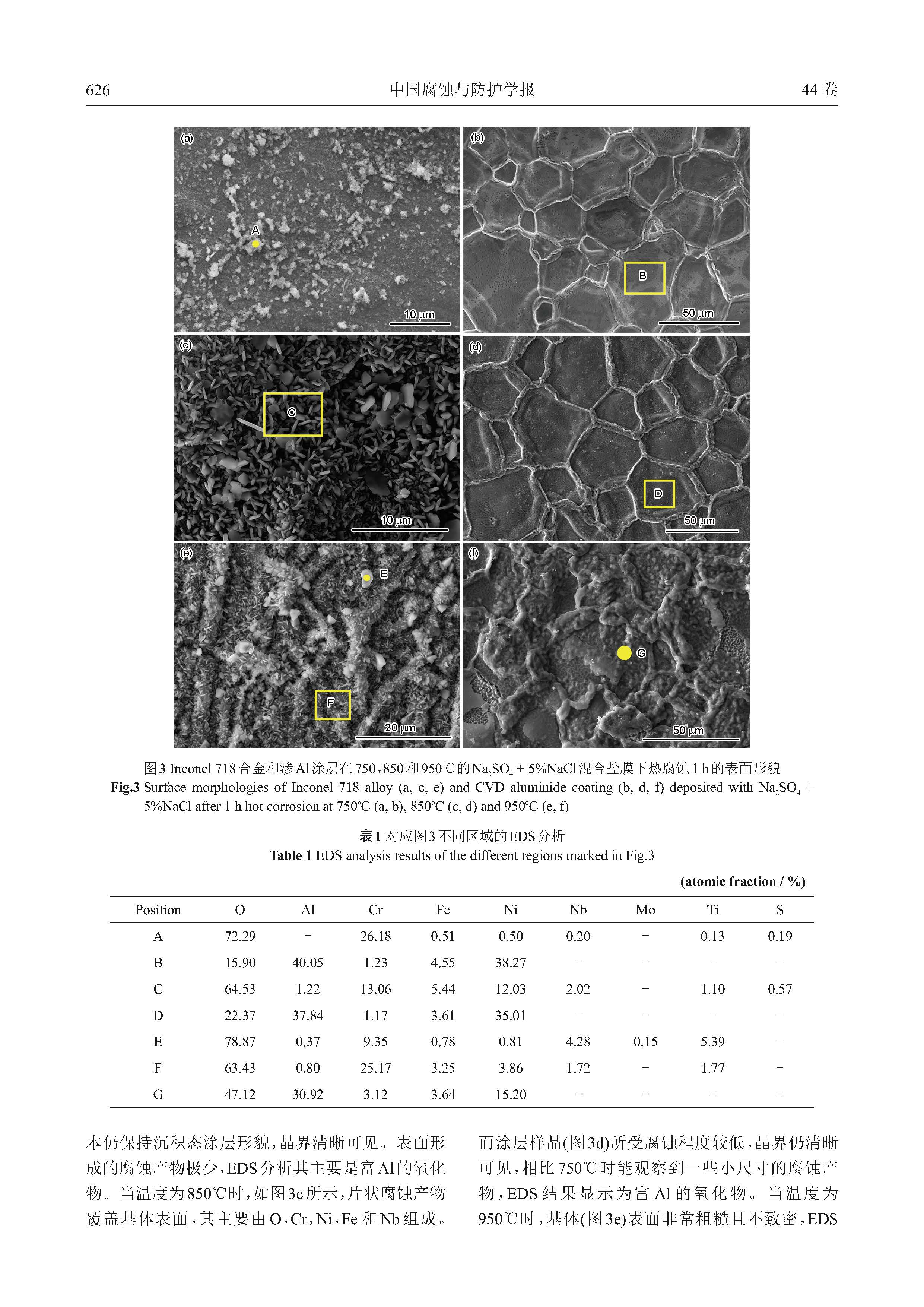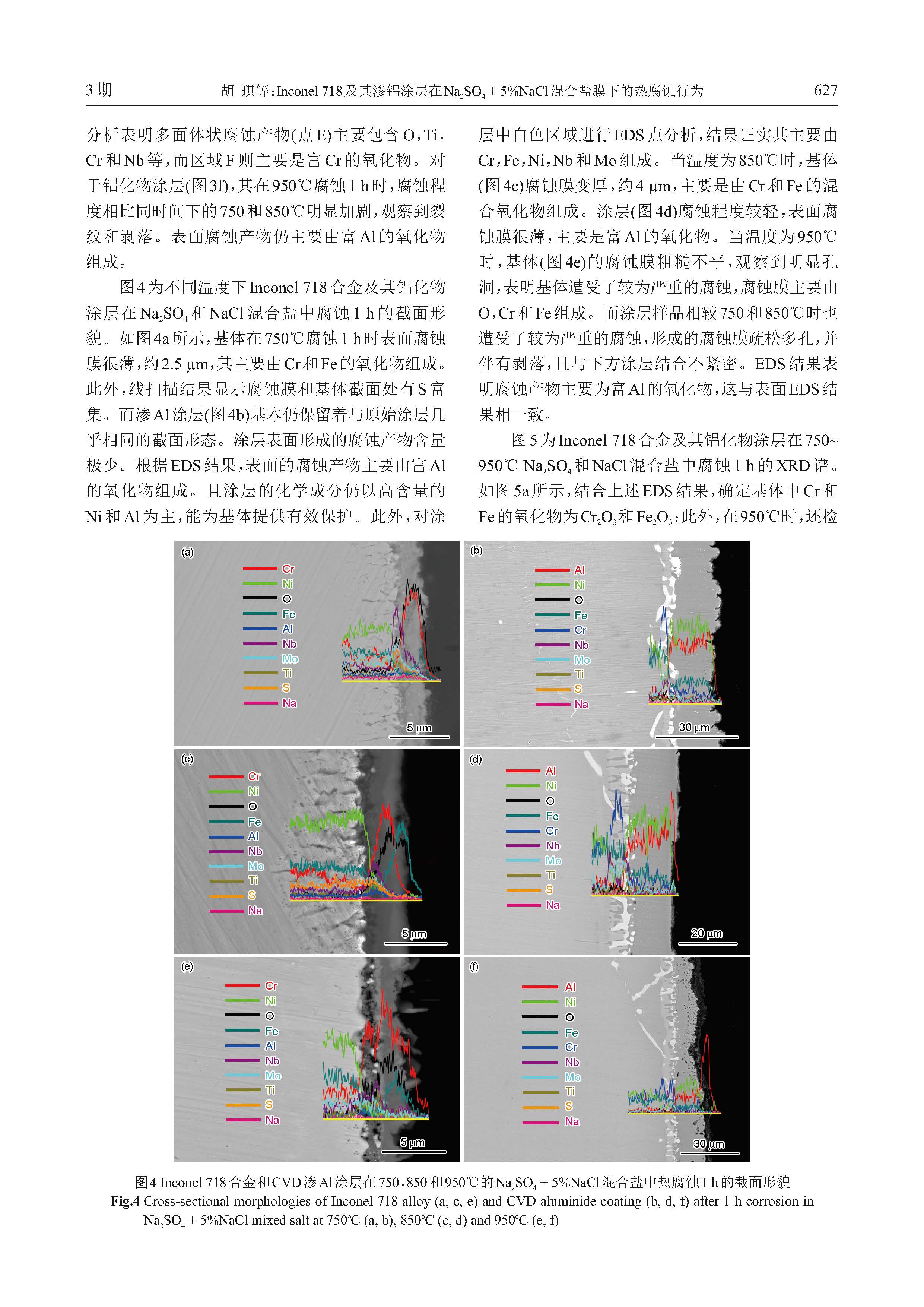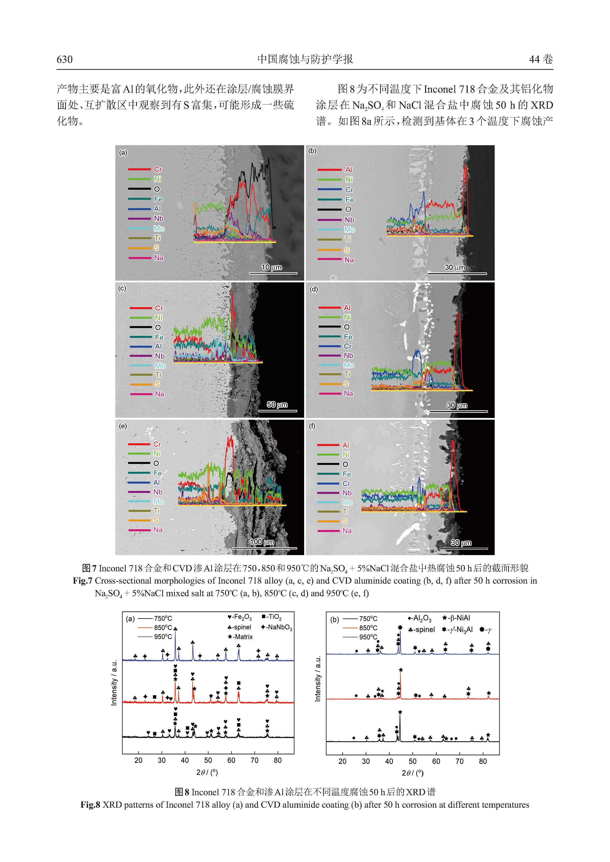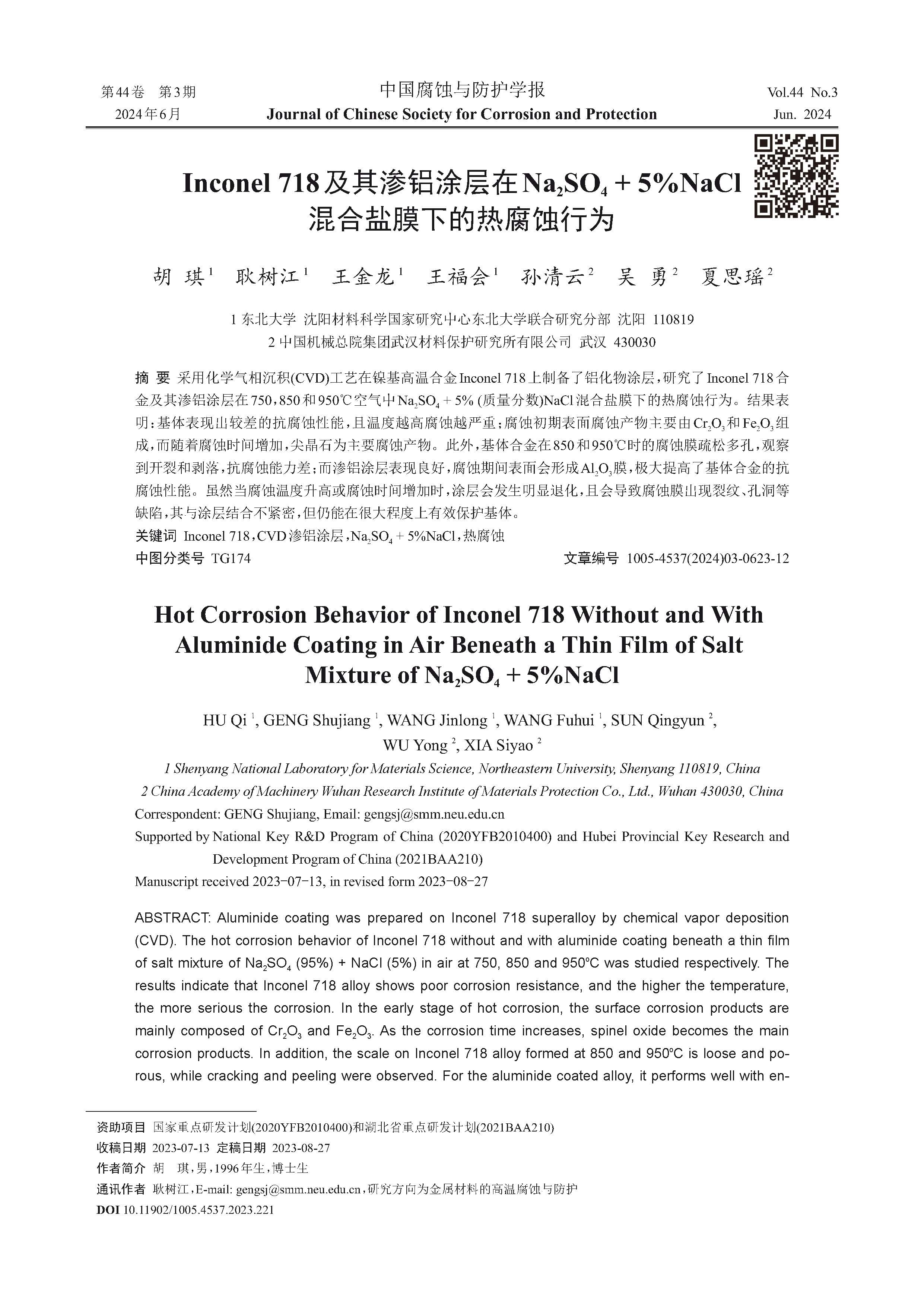 Inconel 718及其渗铝涂层在Na2SO4 + 5%NaCl混合盐膜下的热腐蚀行为