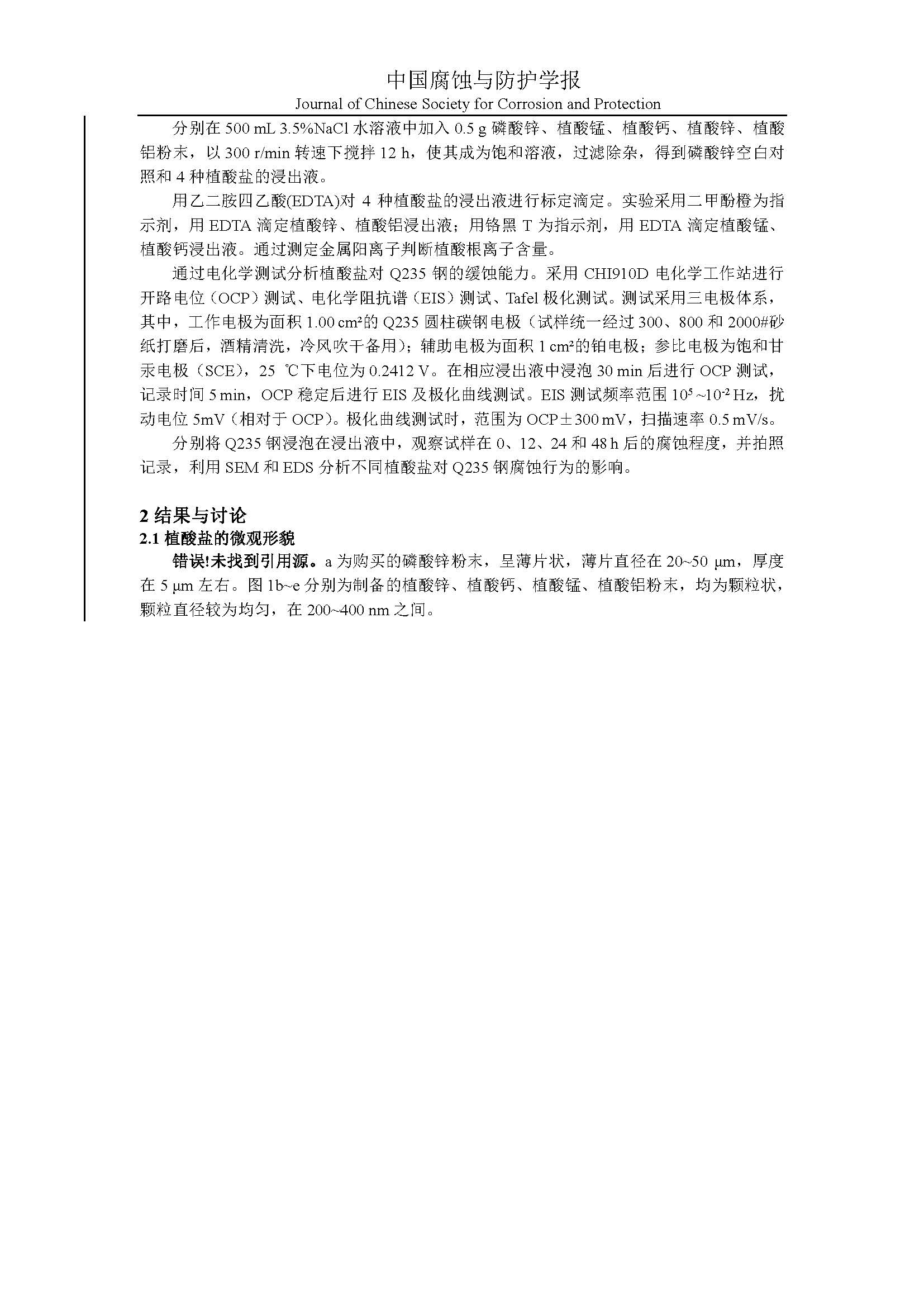 来源:中国腐蚀与防护学报