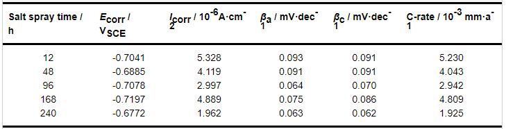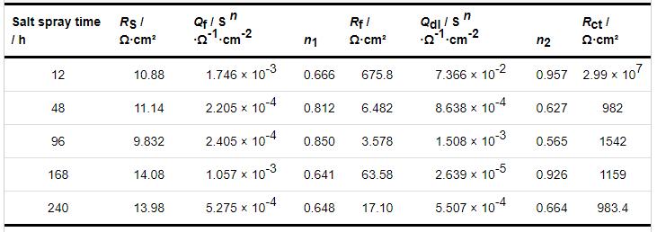 Table 4 Equivalent circuit fitting results of PT-HMS after salt spray corrosion with different corrosion time