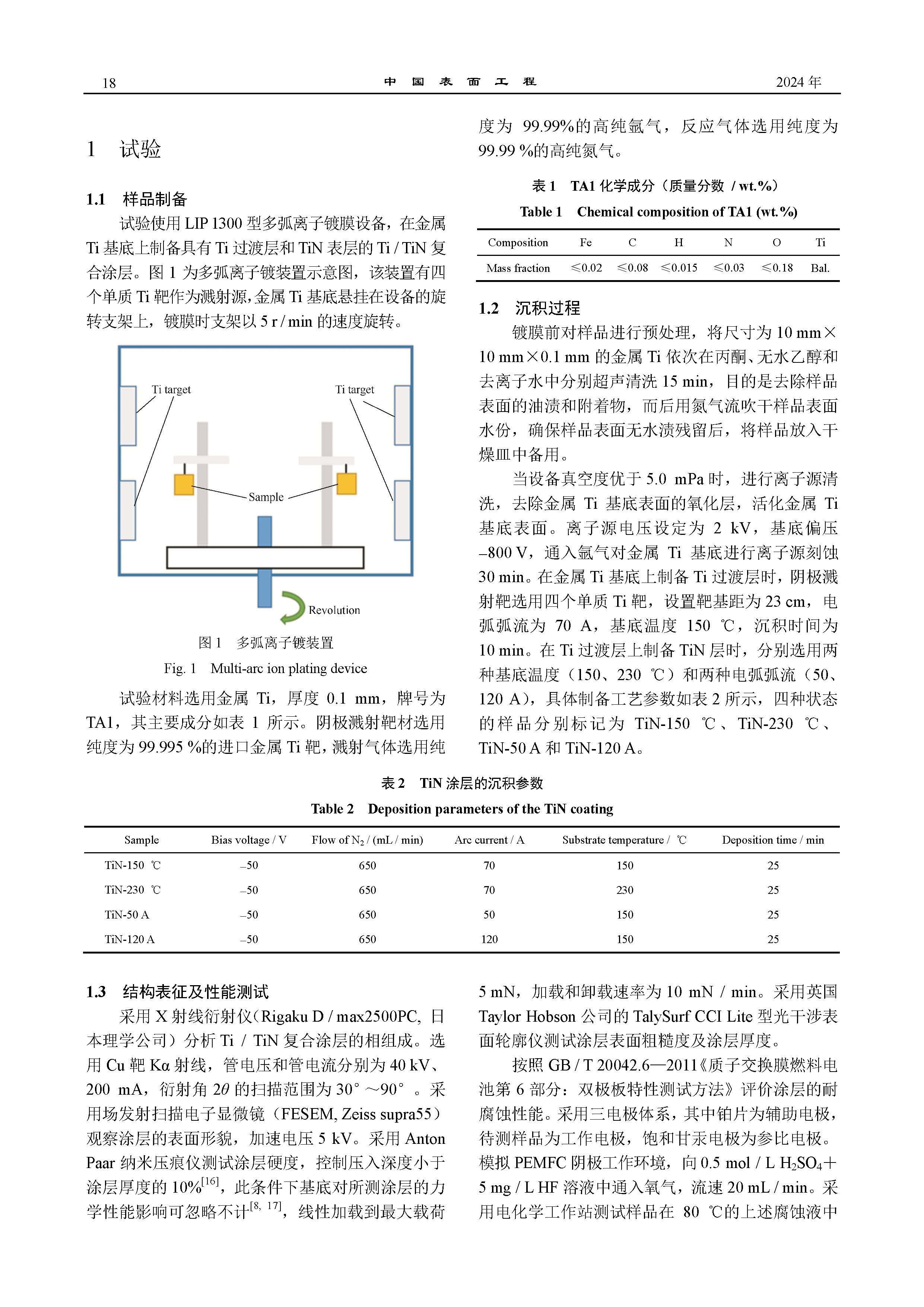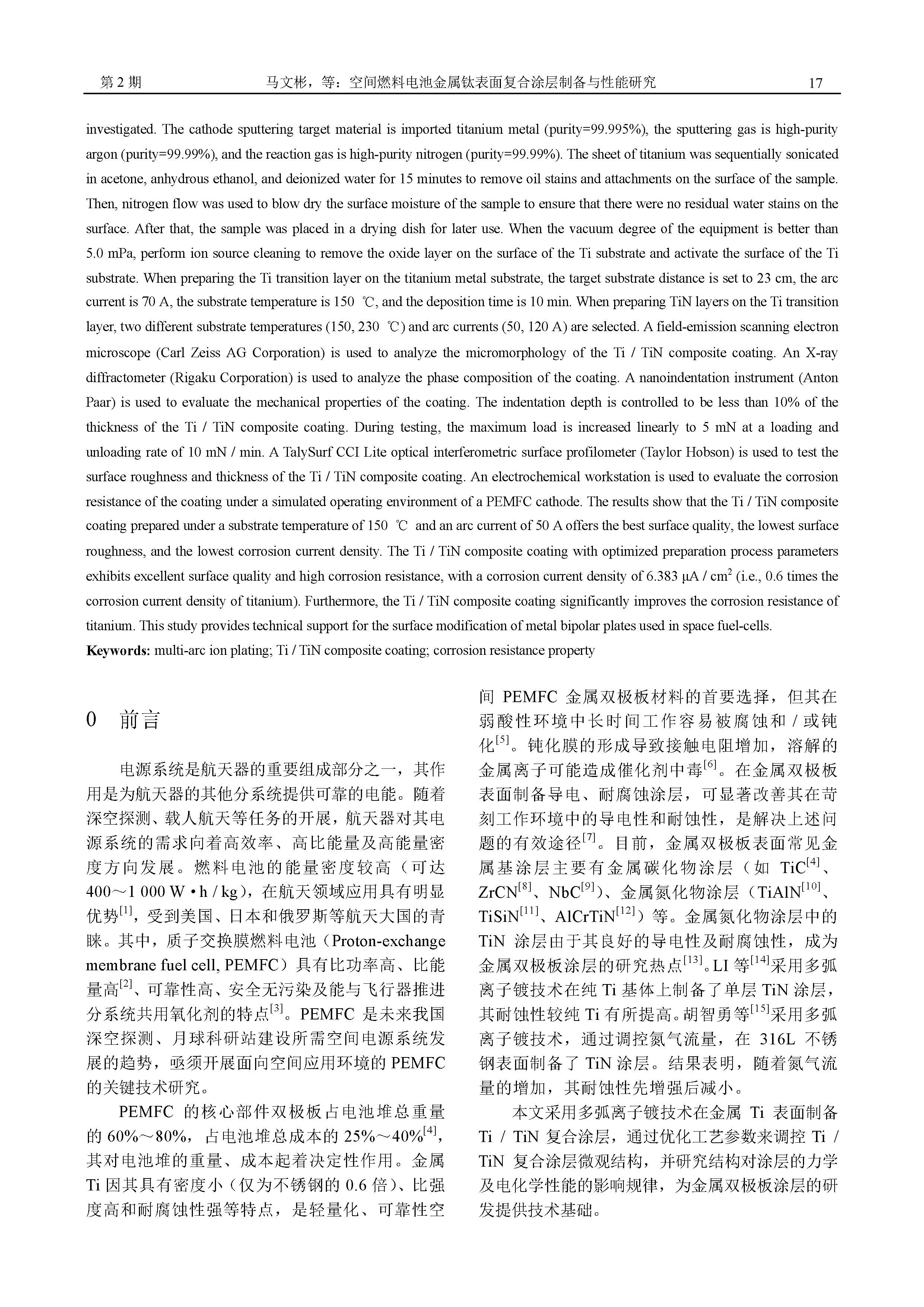 空间燃料电池金属钛表面复合涂层制备与性能研究