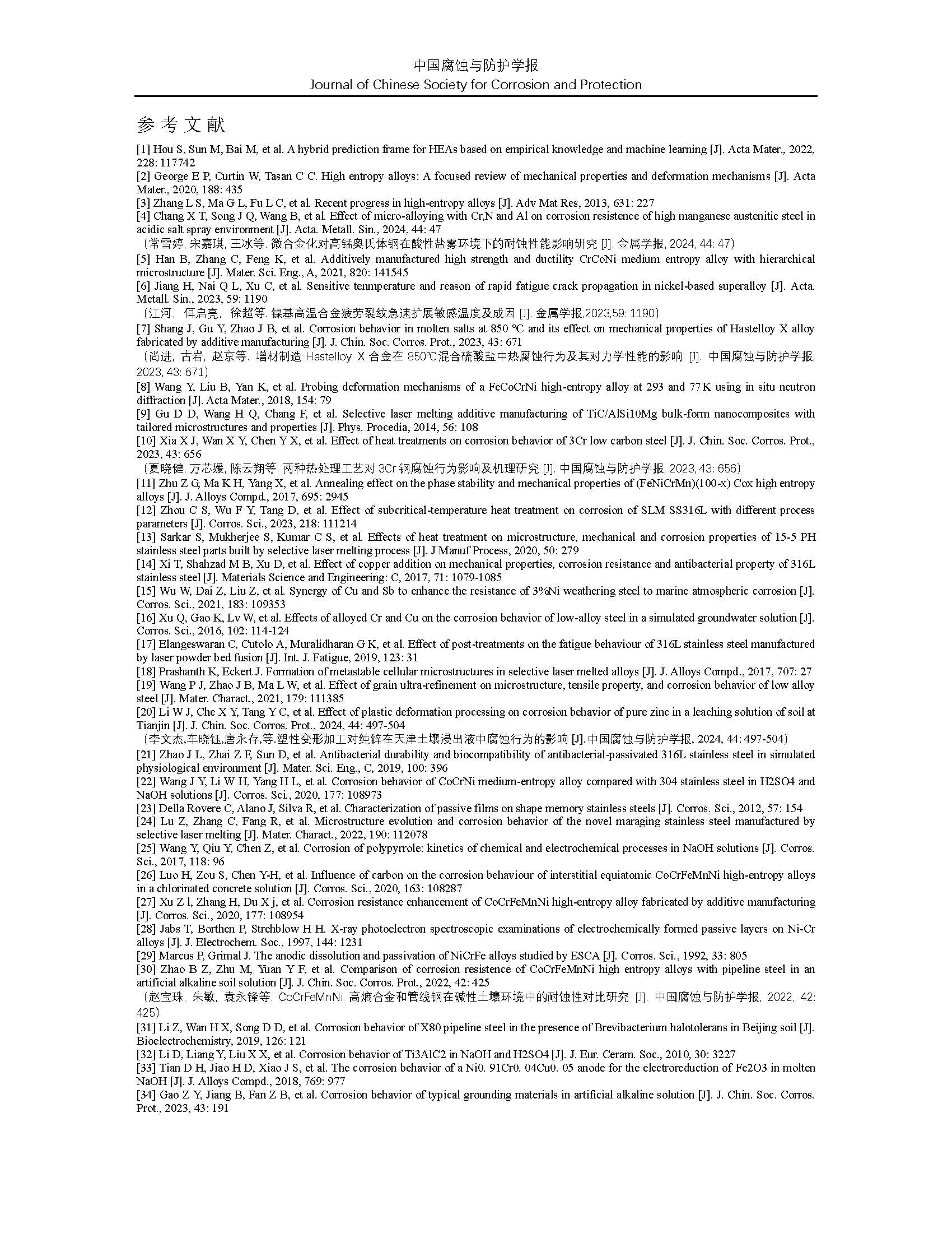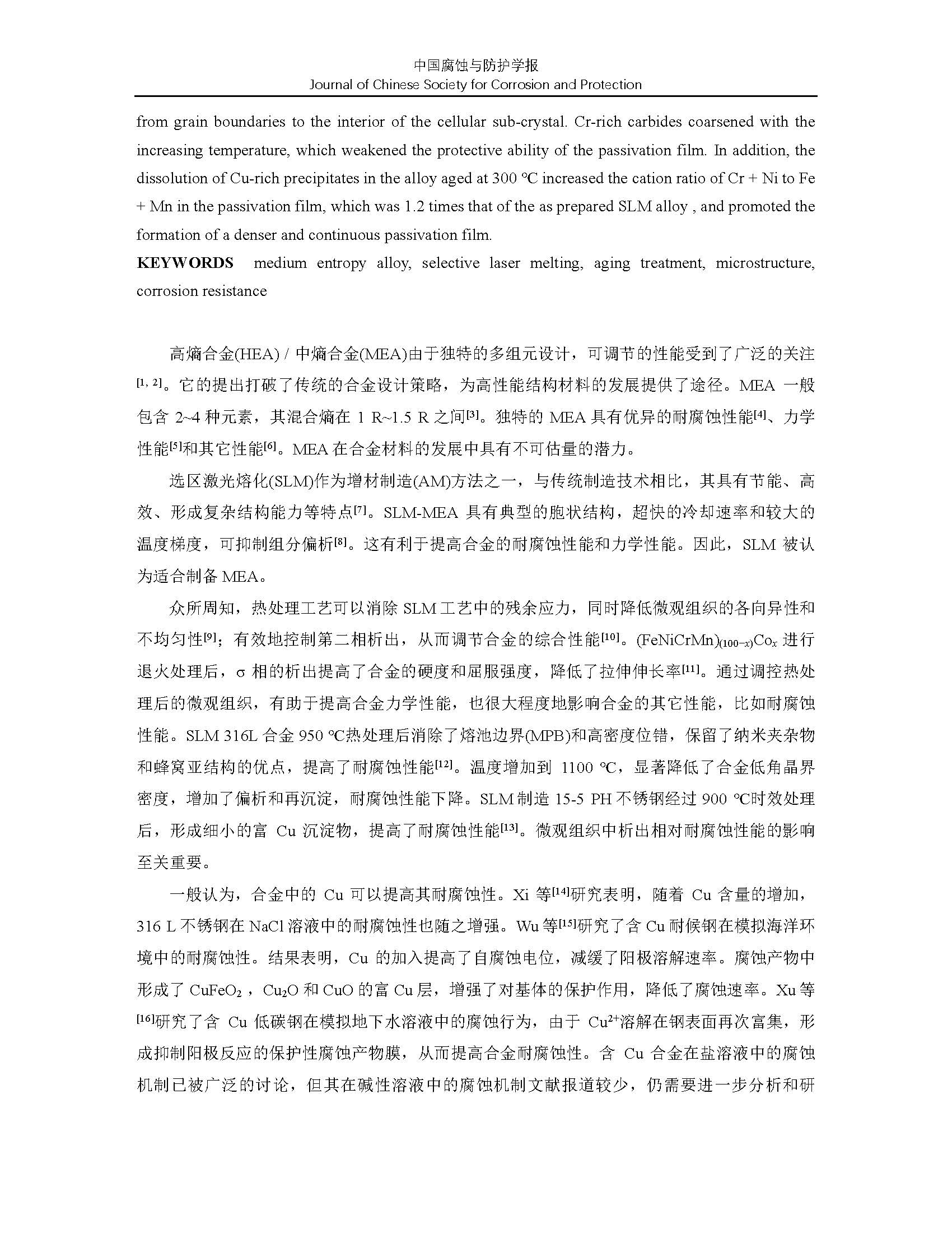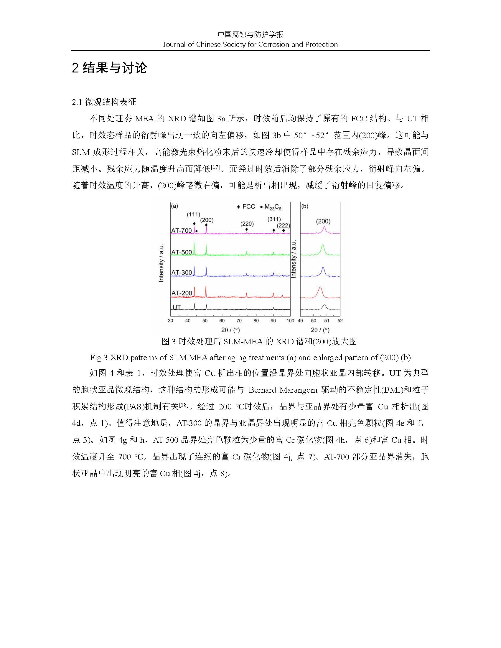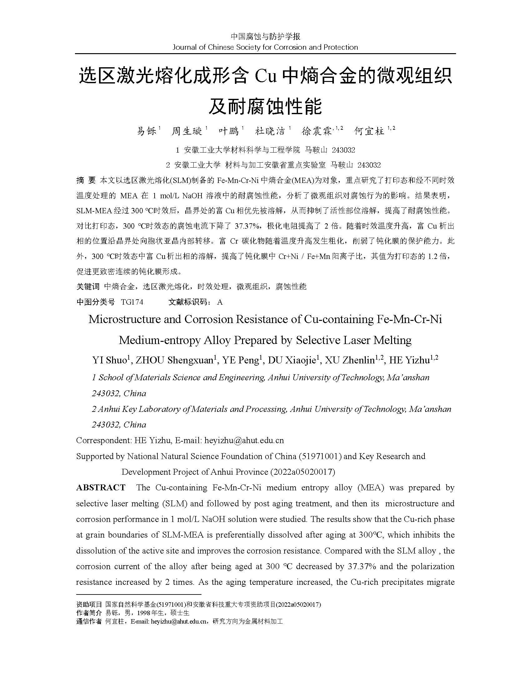 选区激光熔化成形含Cu中熵合金的微观组织及耐腐蚀性能