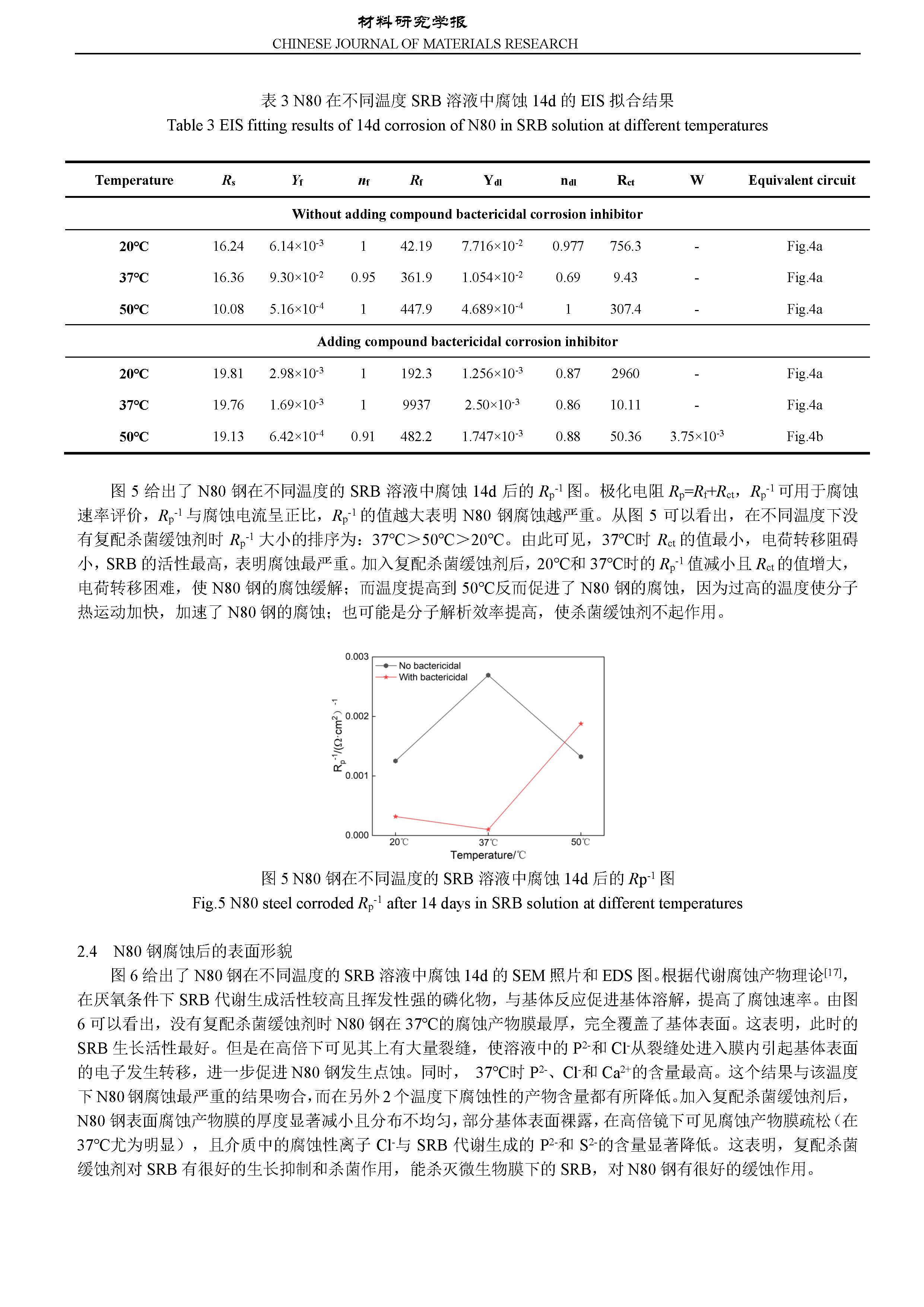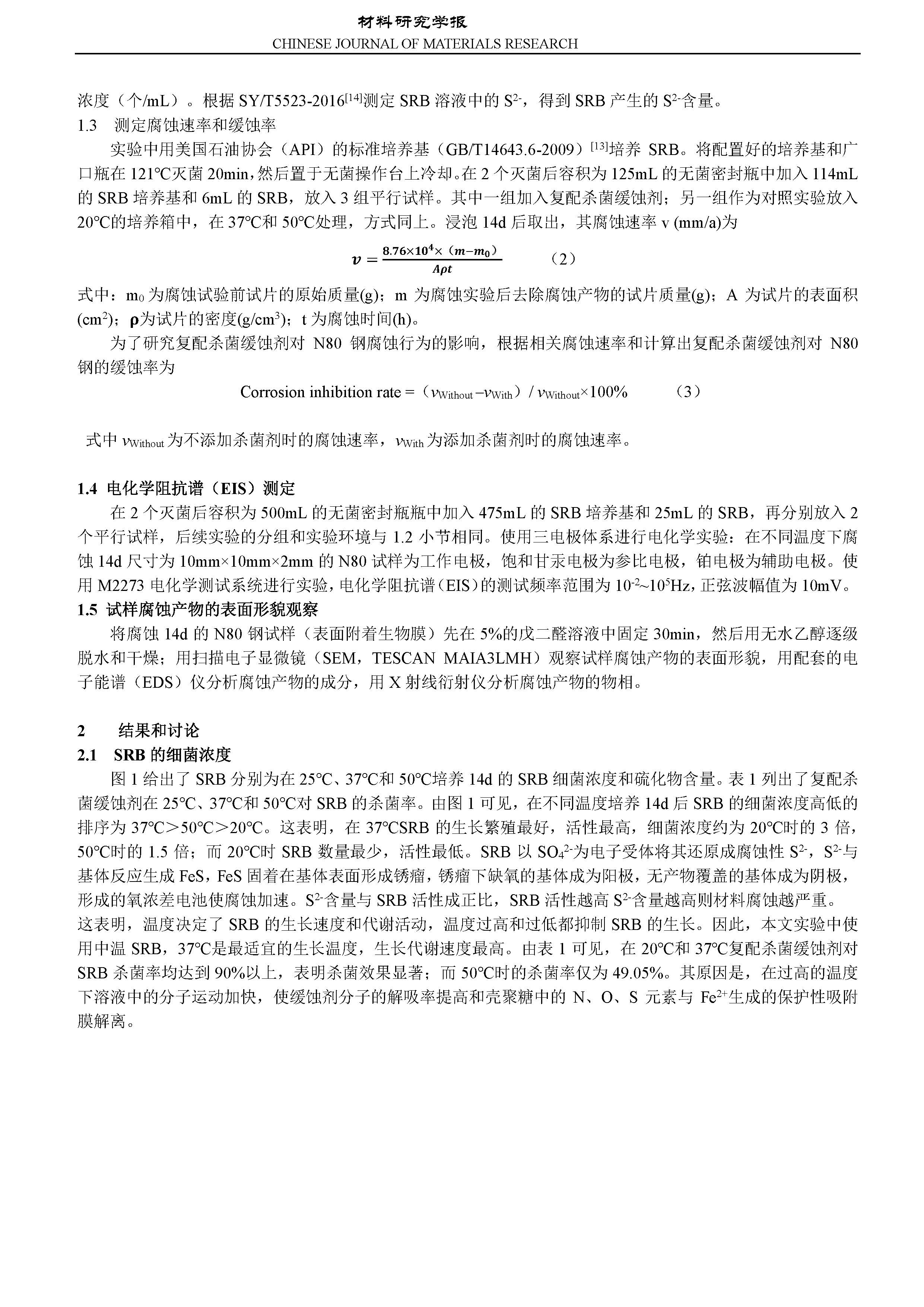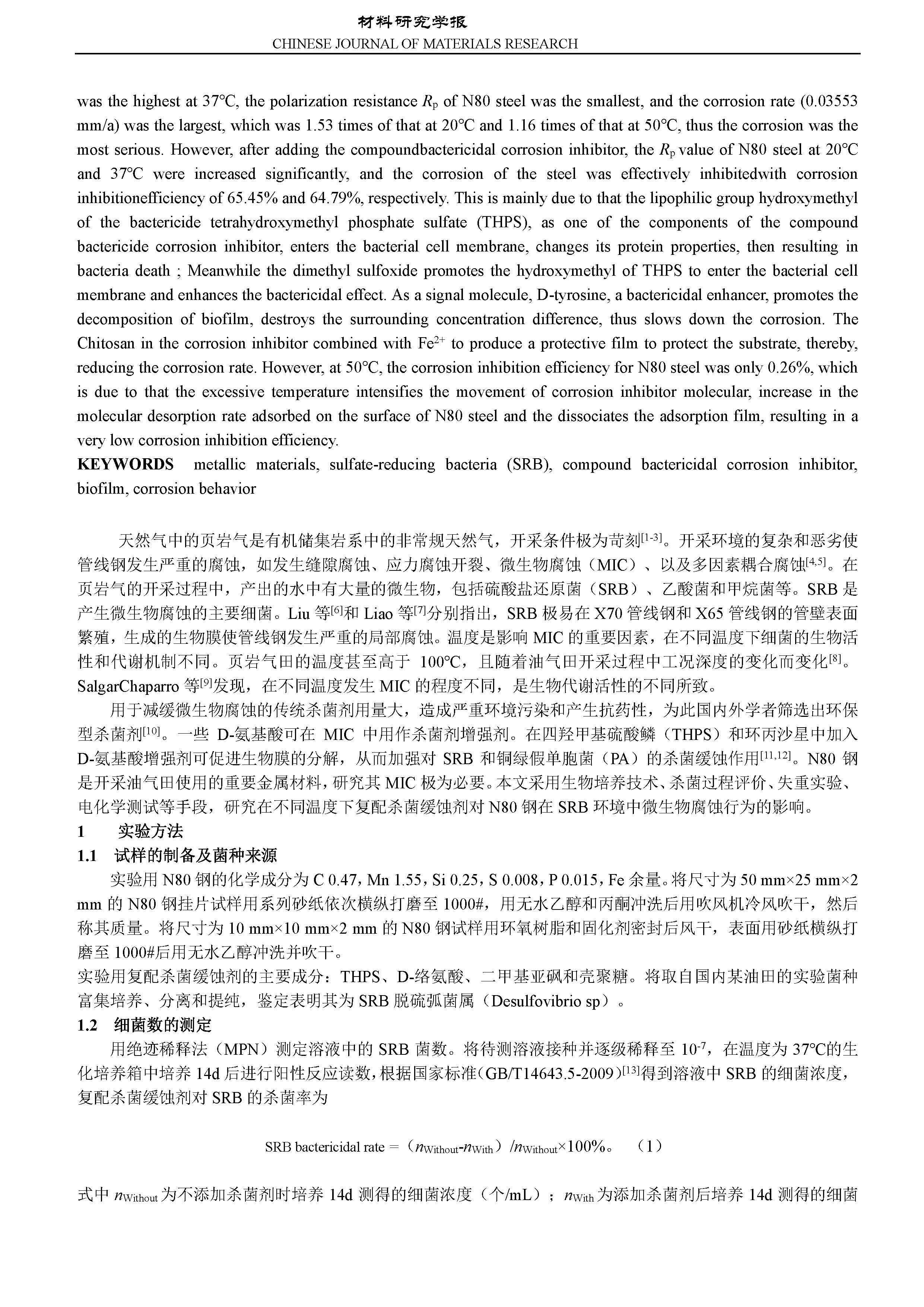 复配杀菌缓蚀剂对 N80 钢在 SRB 环境中微生物腐蚀行为的影响