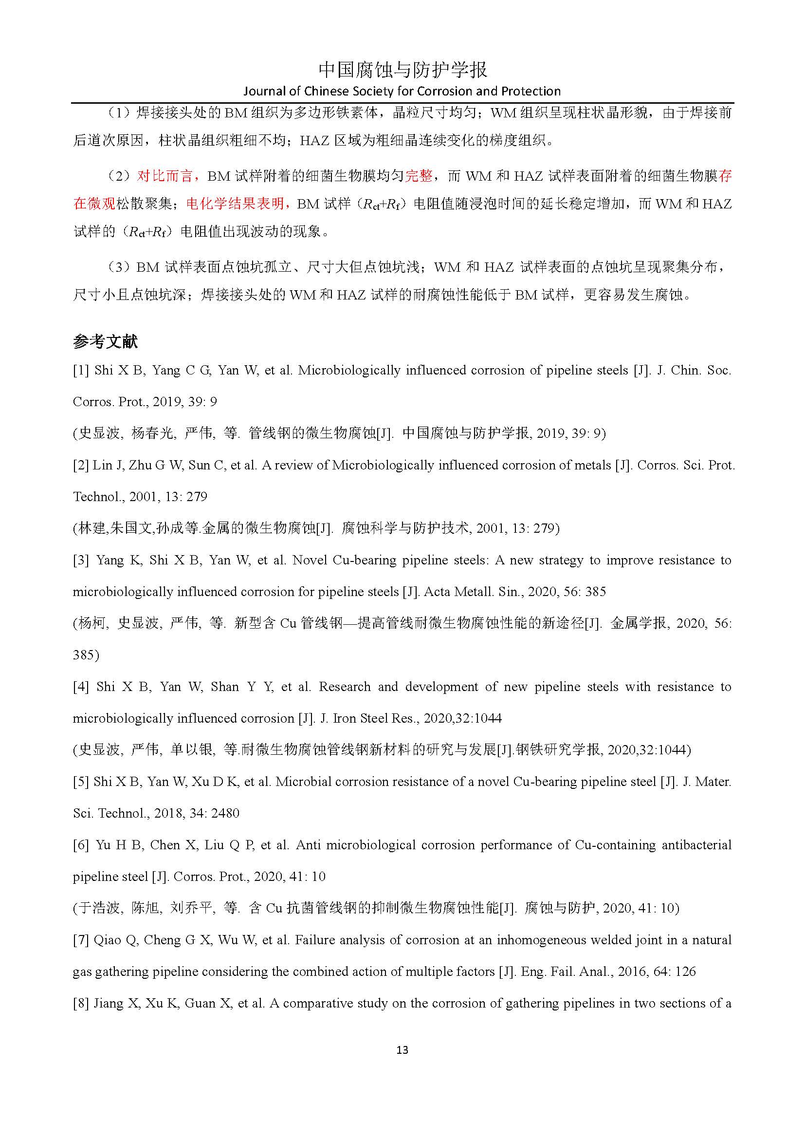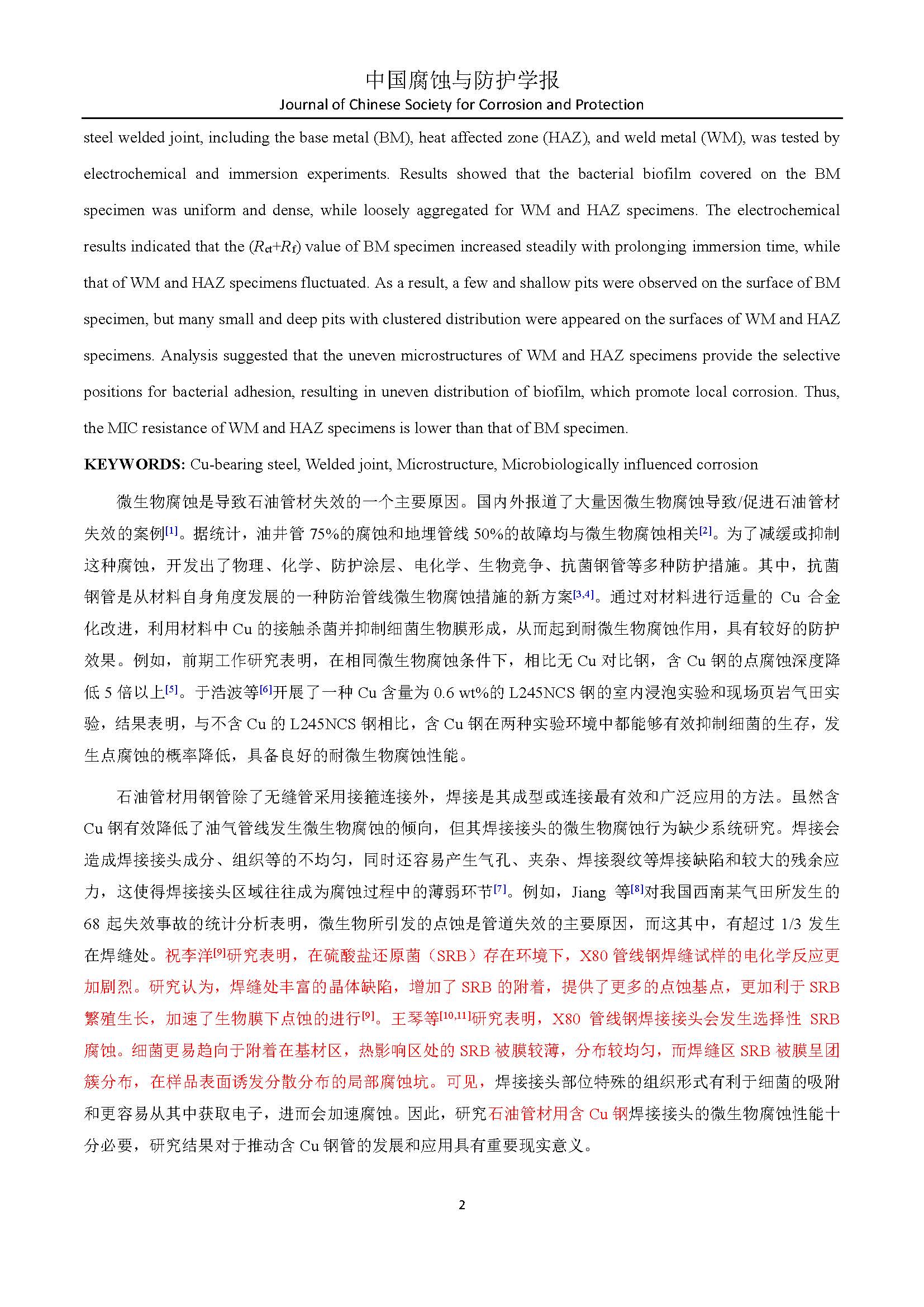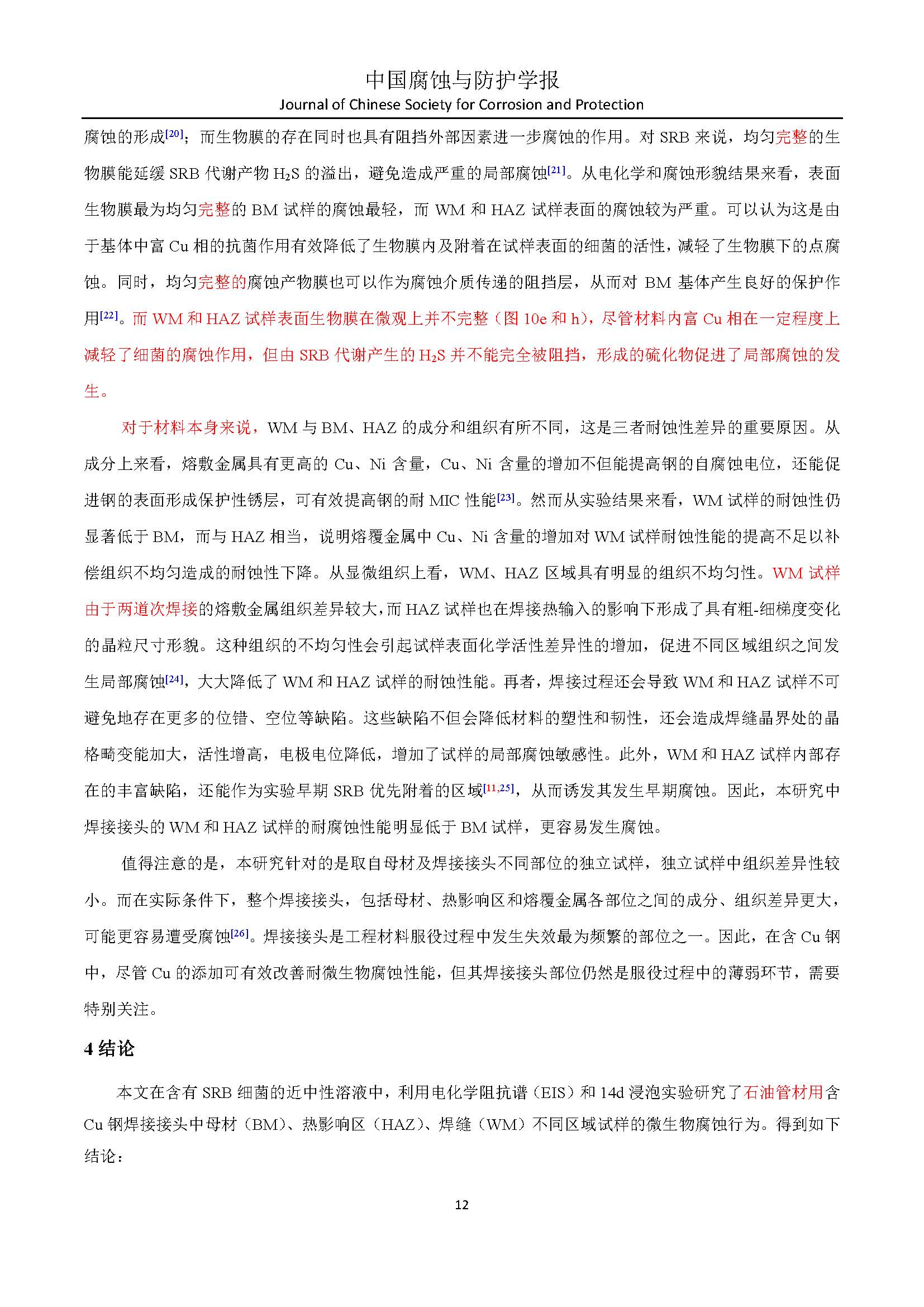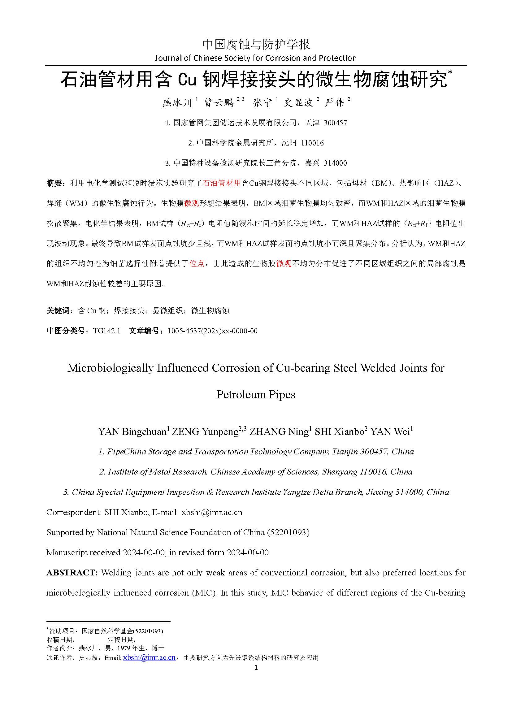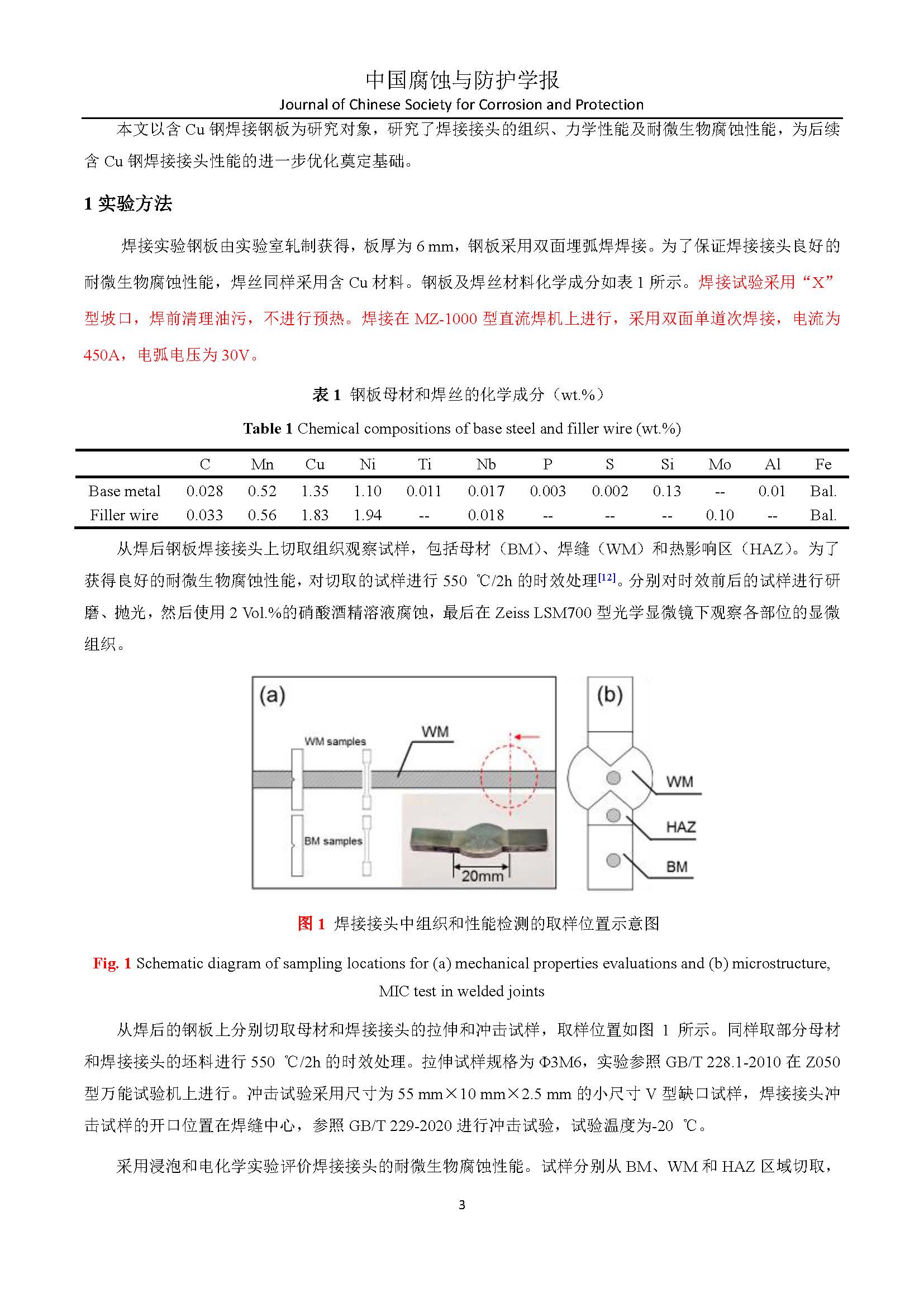 石油管材用含Cu钢焊接接头的微生物腐蚀研究