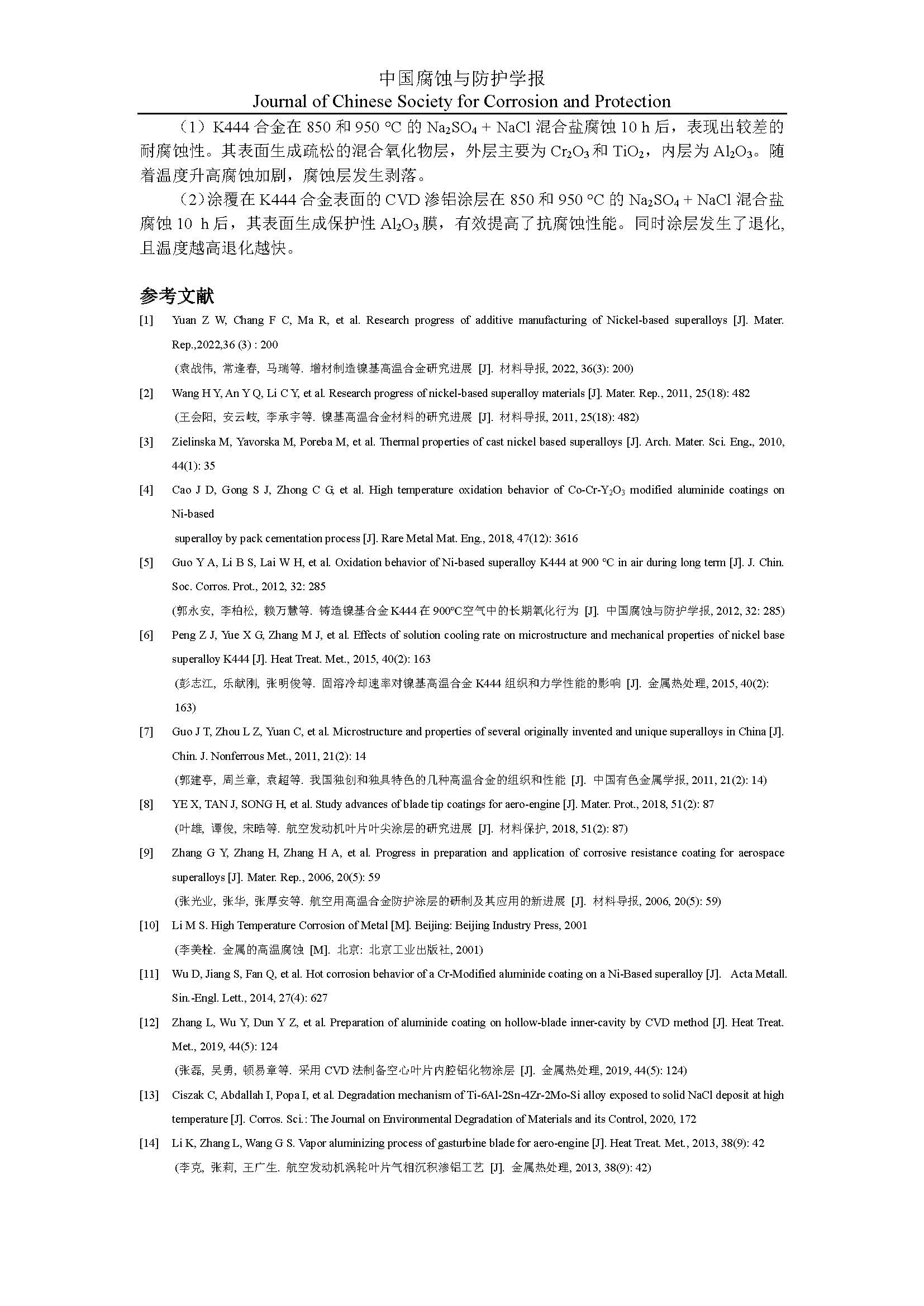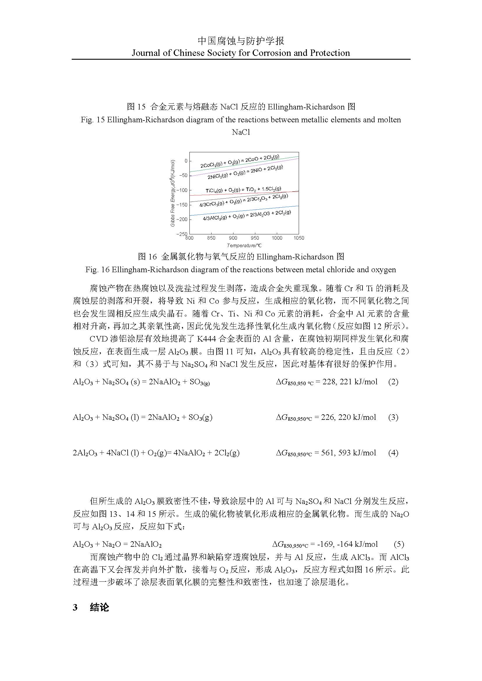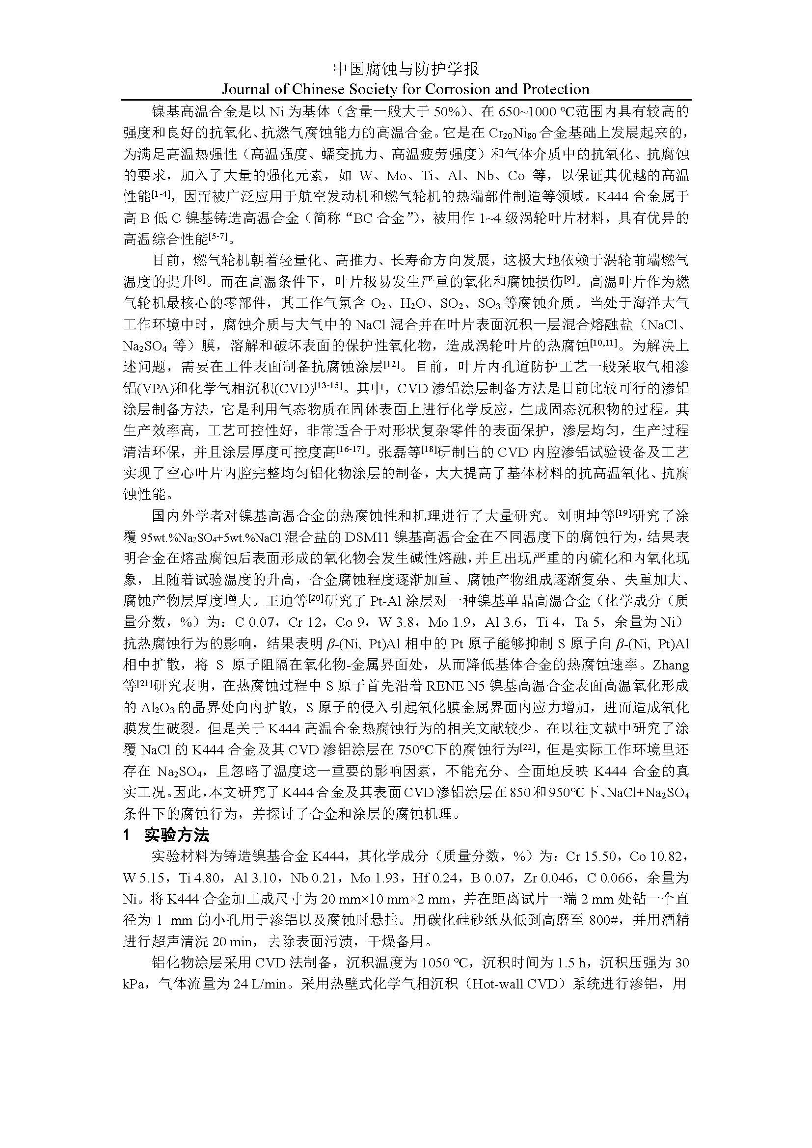 K444合金表面CVD渗铝涂层高温耐95 wt.%Na2SO4+5 wt.%NaCl腐蚀行为研究