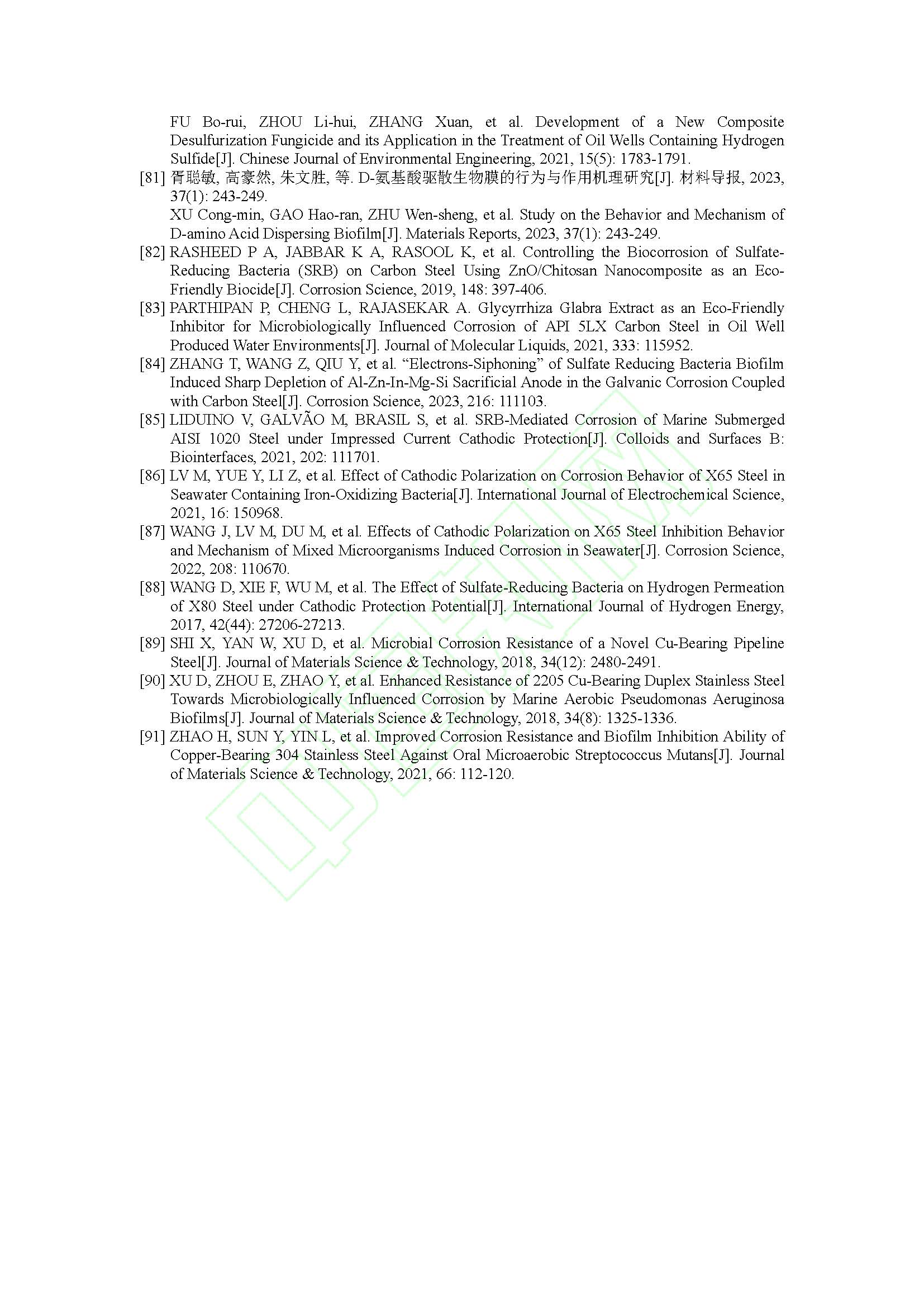 复配杀菌缓蚀剂对 N80 钢在 SRB 环境中微生物腐蚀行为