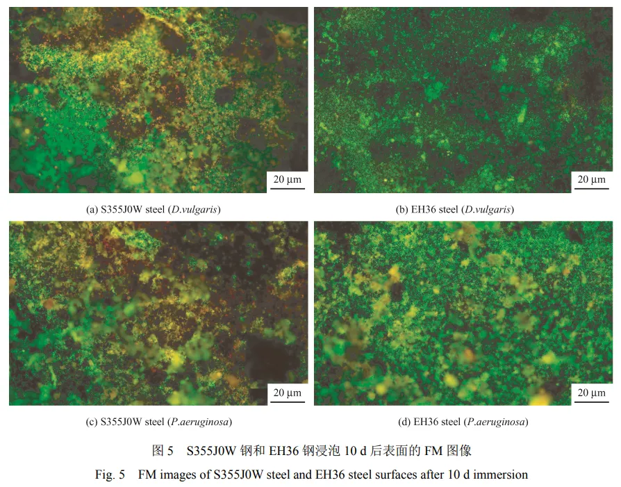 02 相较于 EH36 钢,S355J0W 钢含有 Cr、Ni、 Nb 元素和更多的 Cu 元素。合金元素的共同作用促使 S355J0W 钢表面形成了更具有保护性的产物膜。