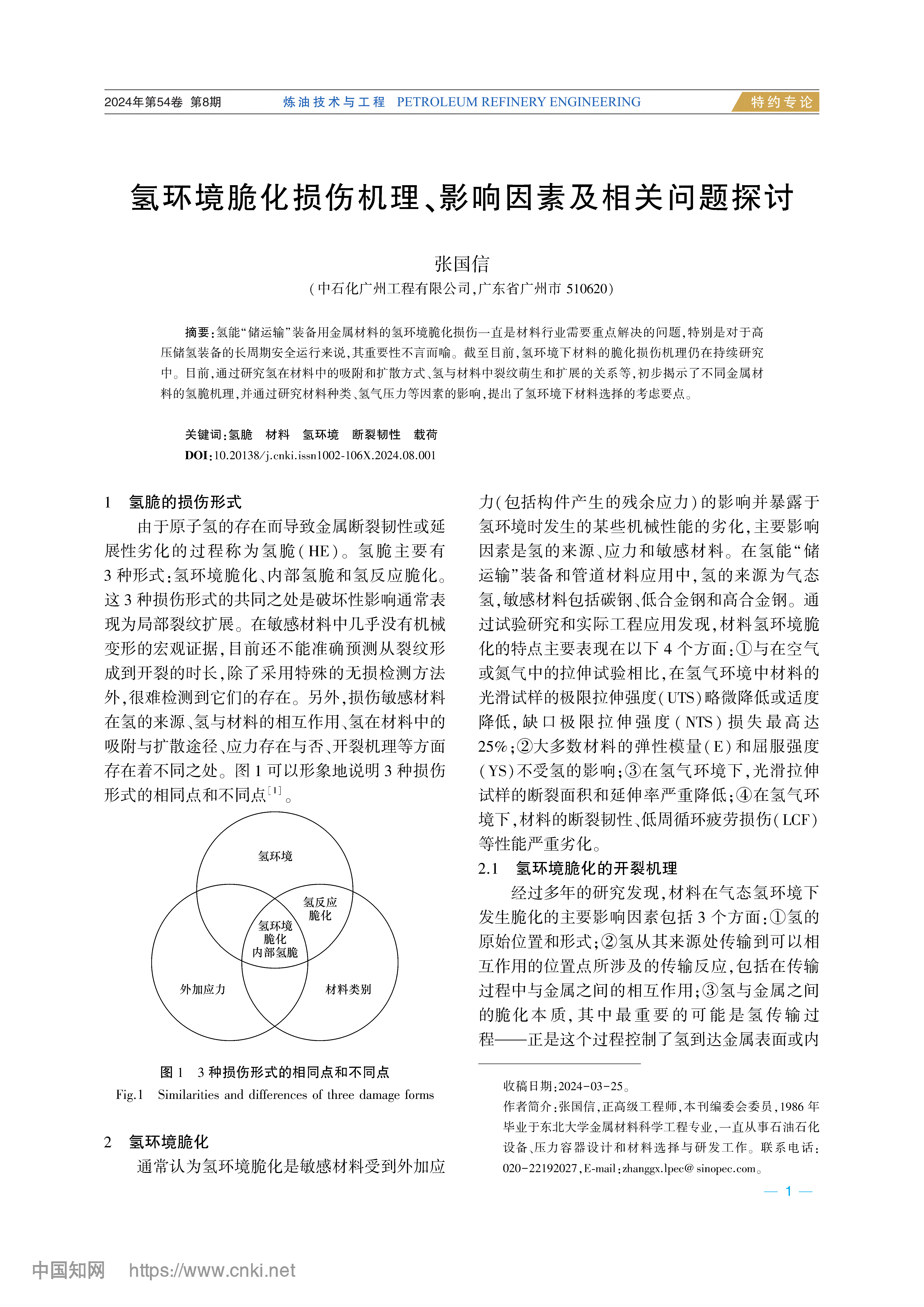 氢环境脆化损伤机理、影响因素及相关问题探讨