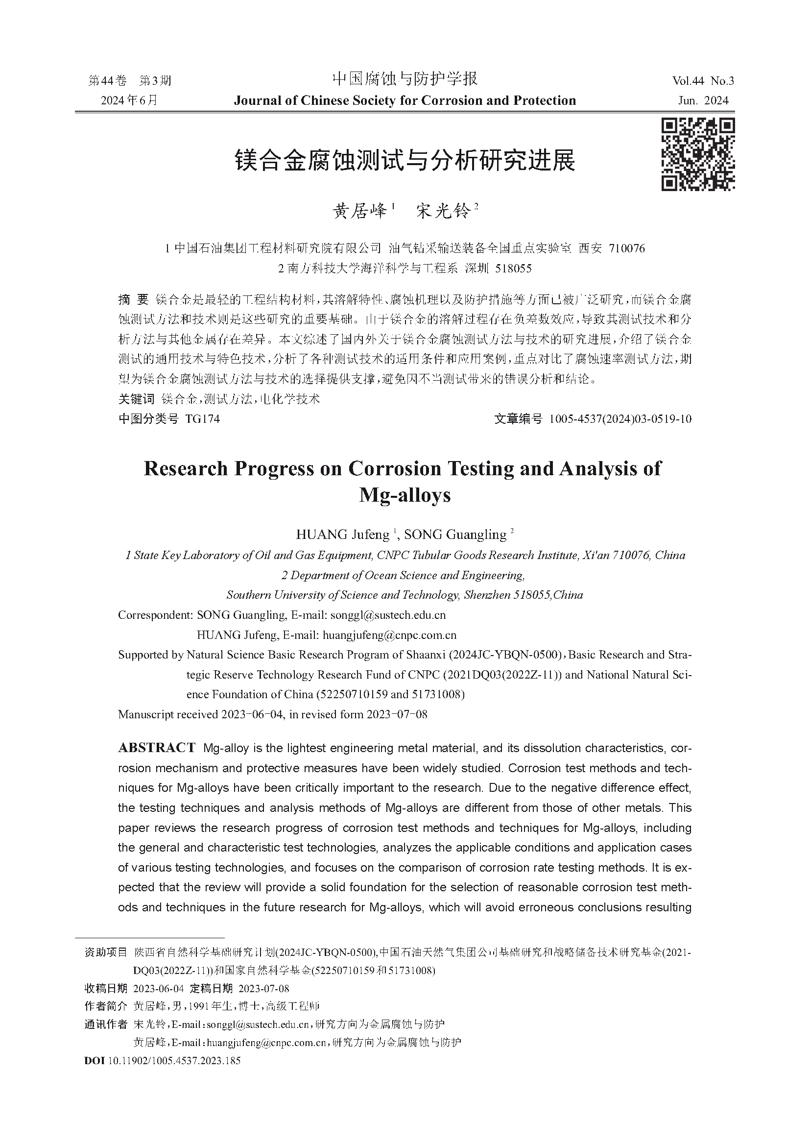 来源:中国腐蚀与防护学报