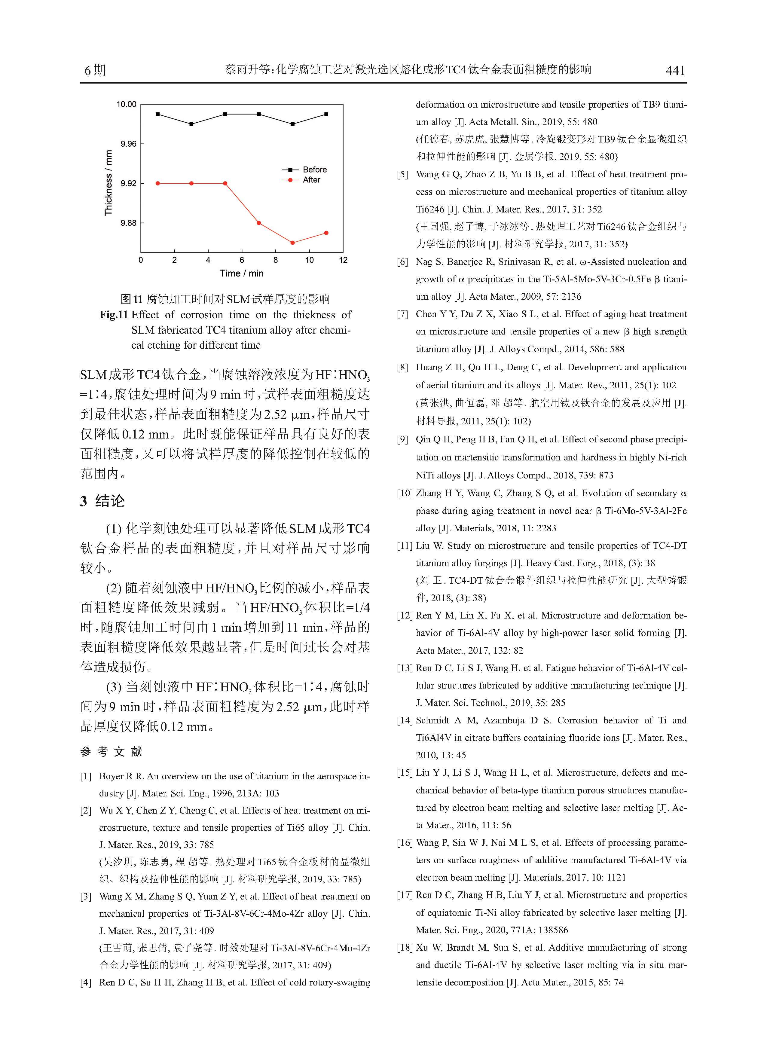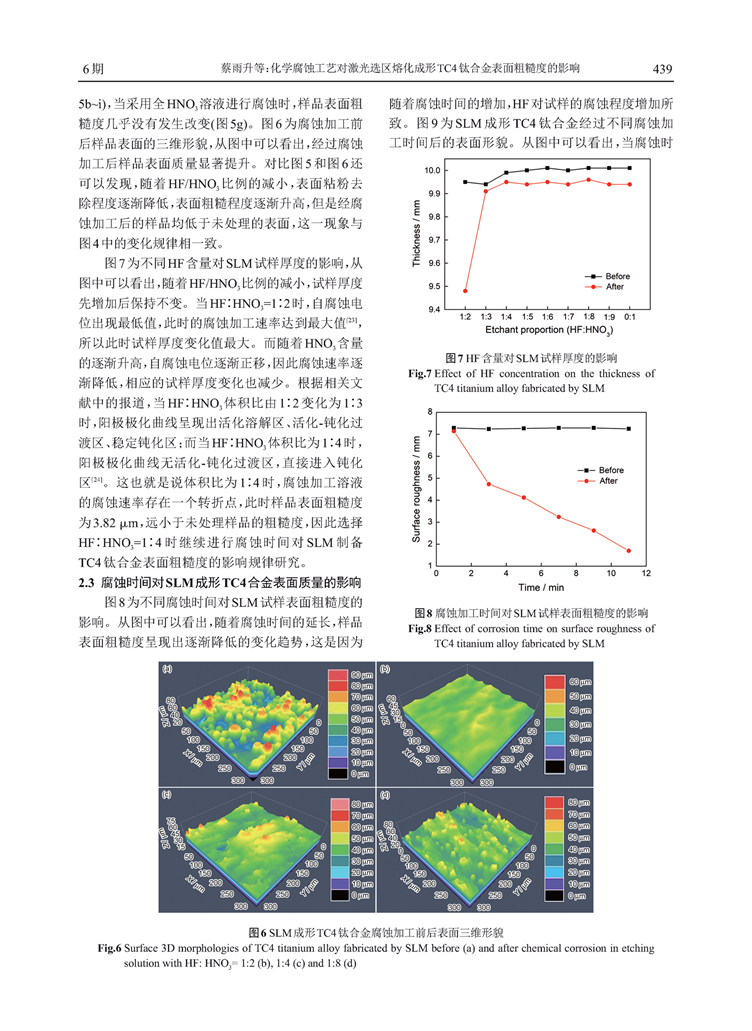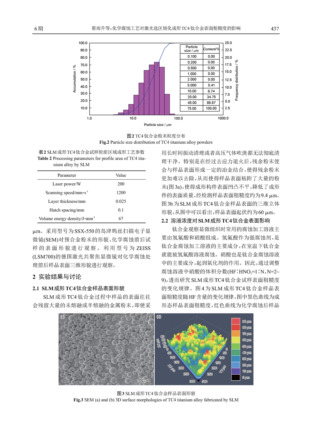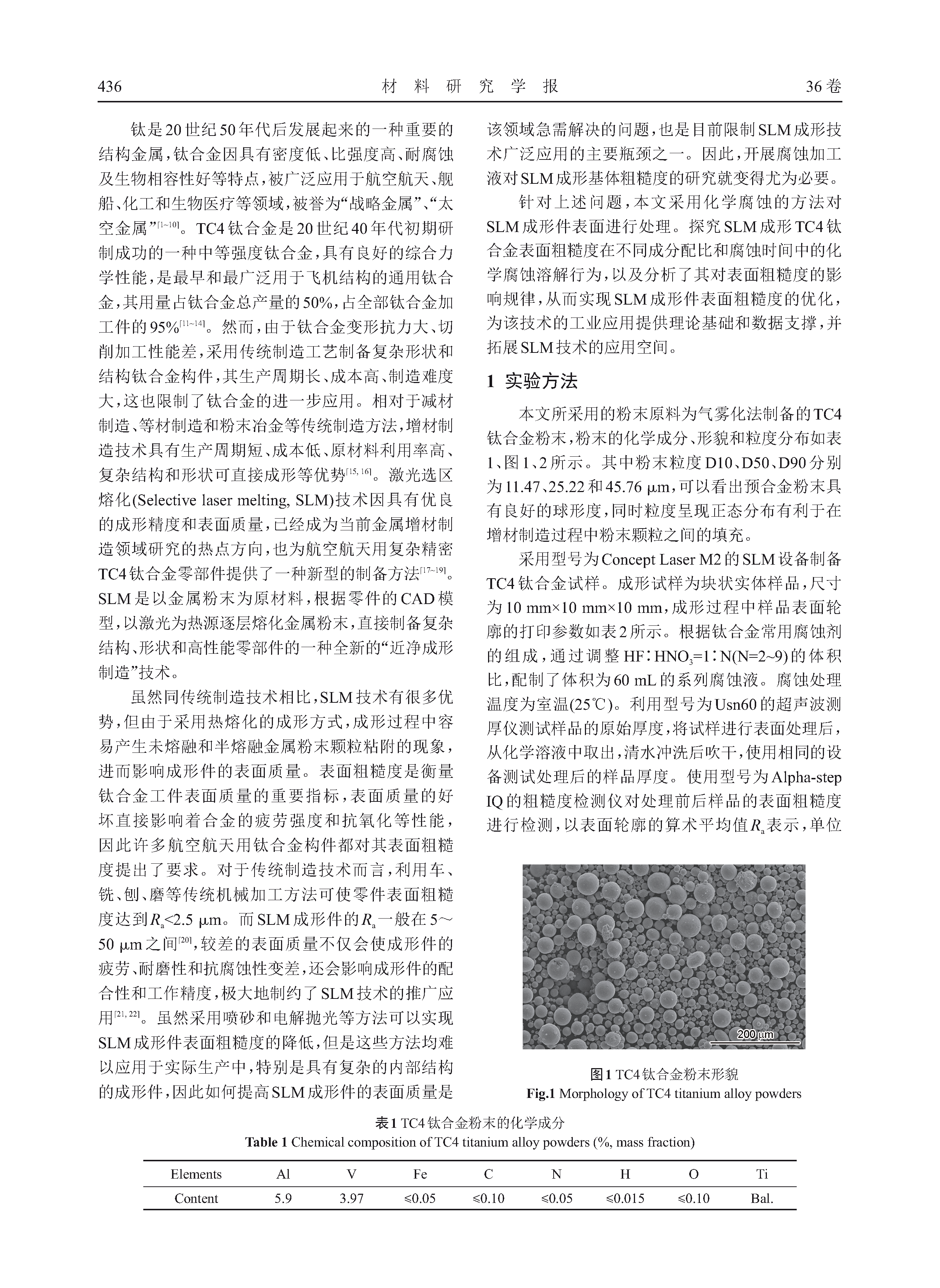 化学腐蚀工艺对激光选区熔化成形TC4钛合金表面粗糙度的影响