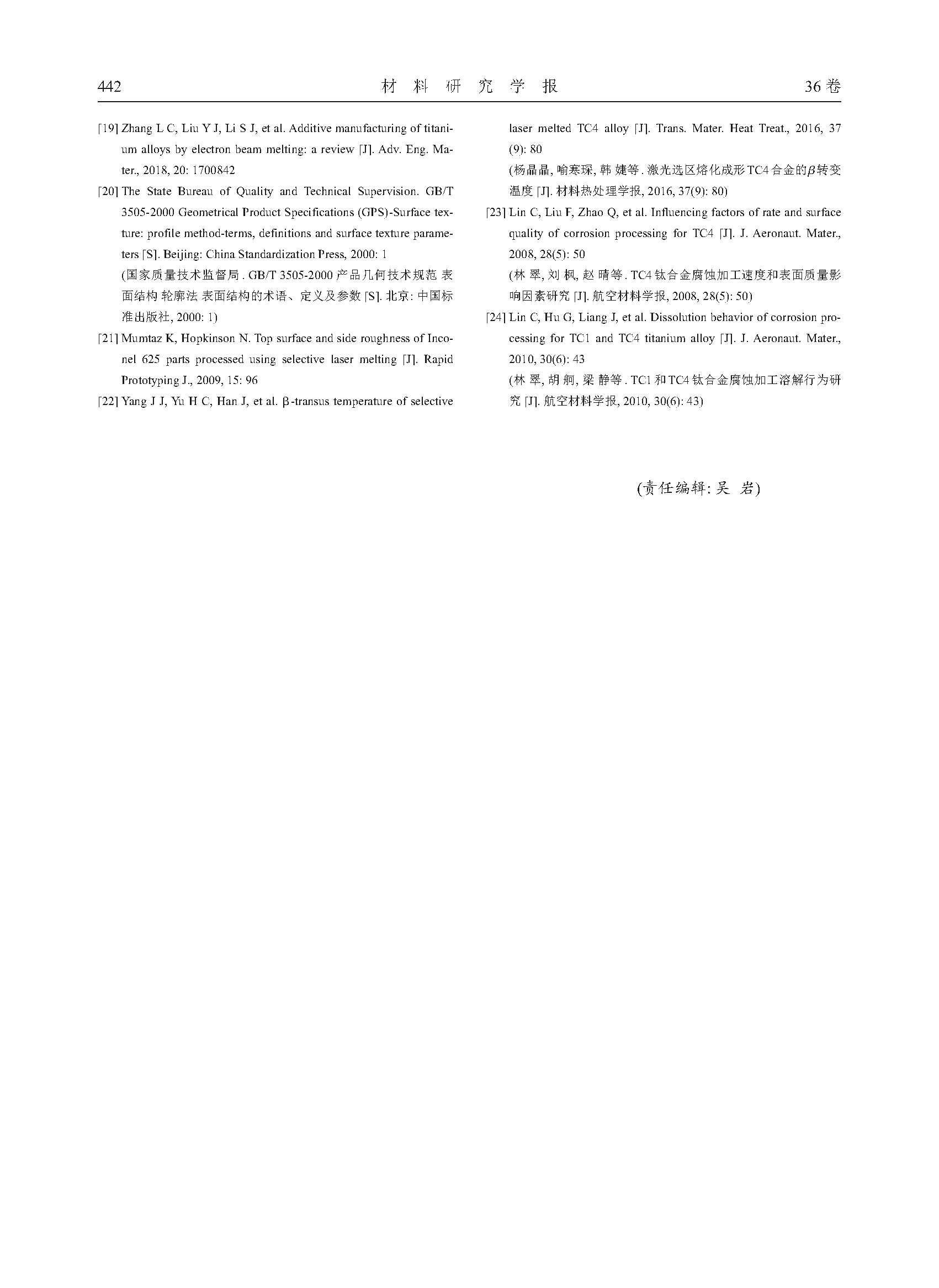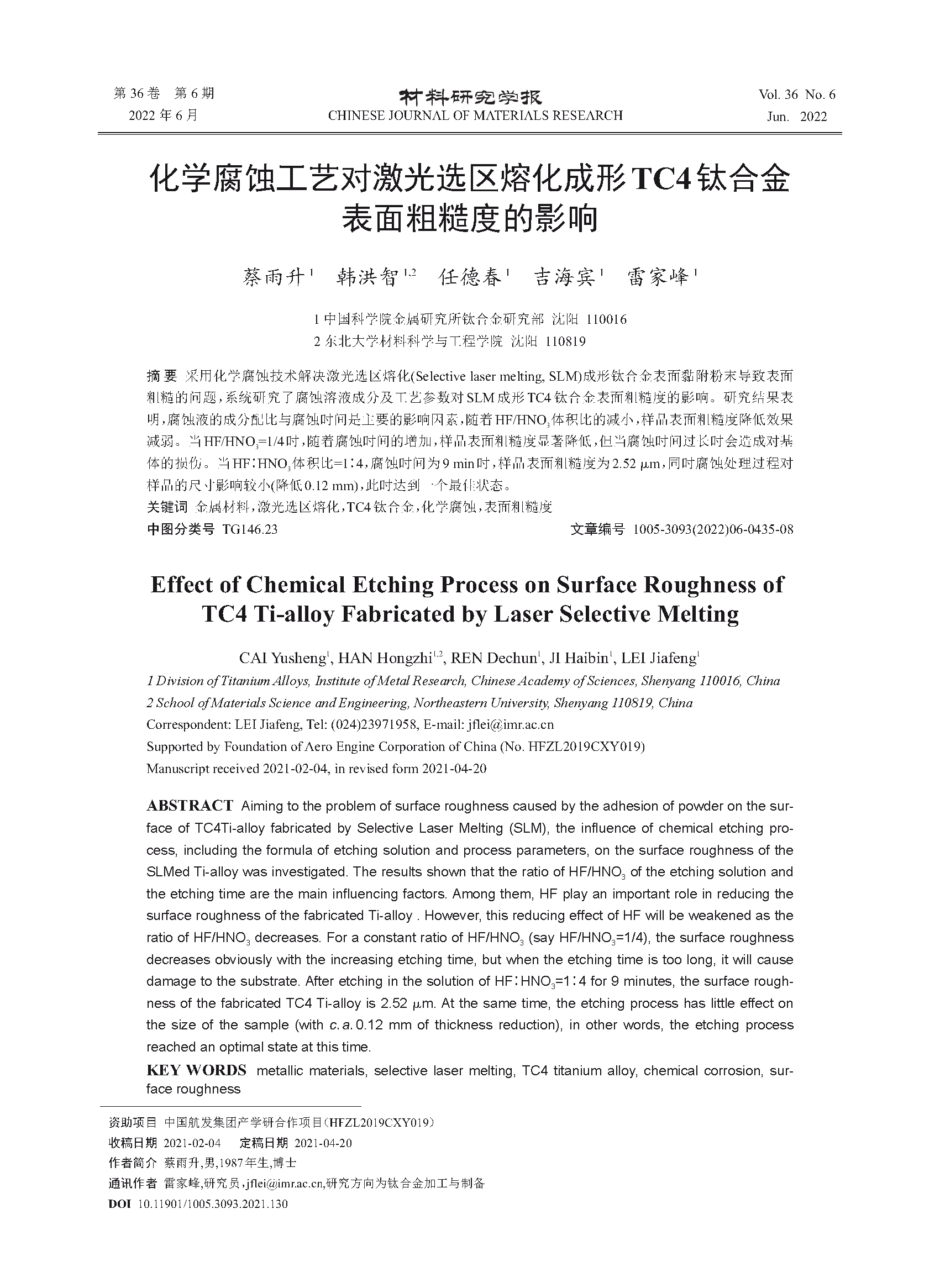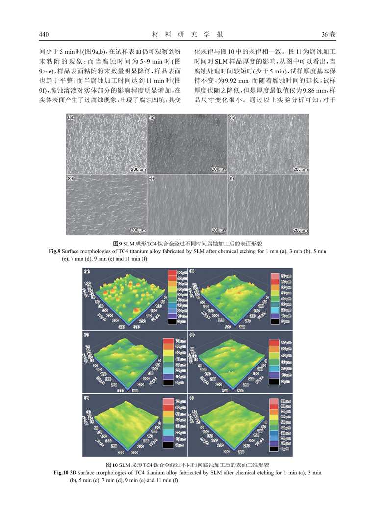 化学腐蚀工艺对激光选区熔化成形TC4钛合金表面粗糙度的影响