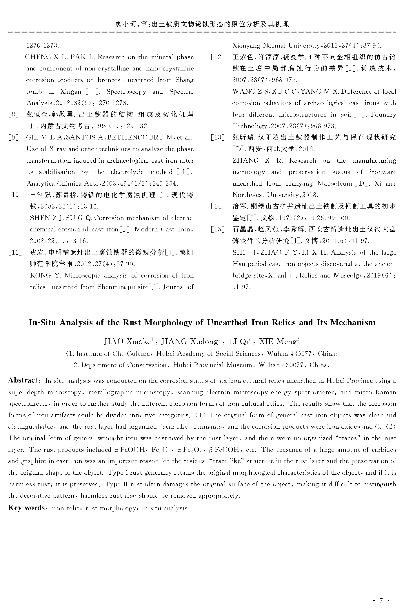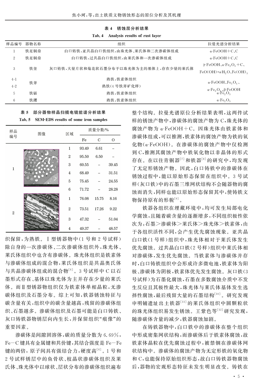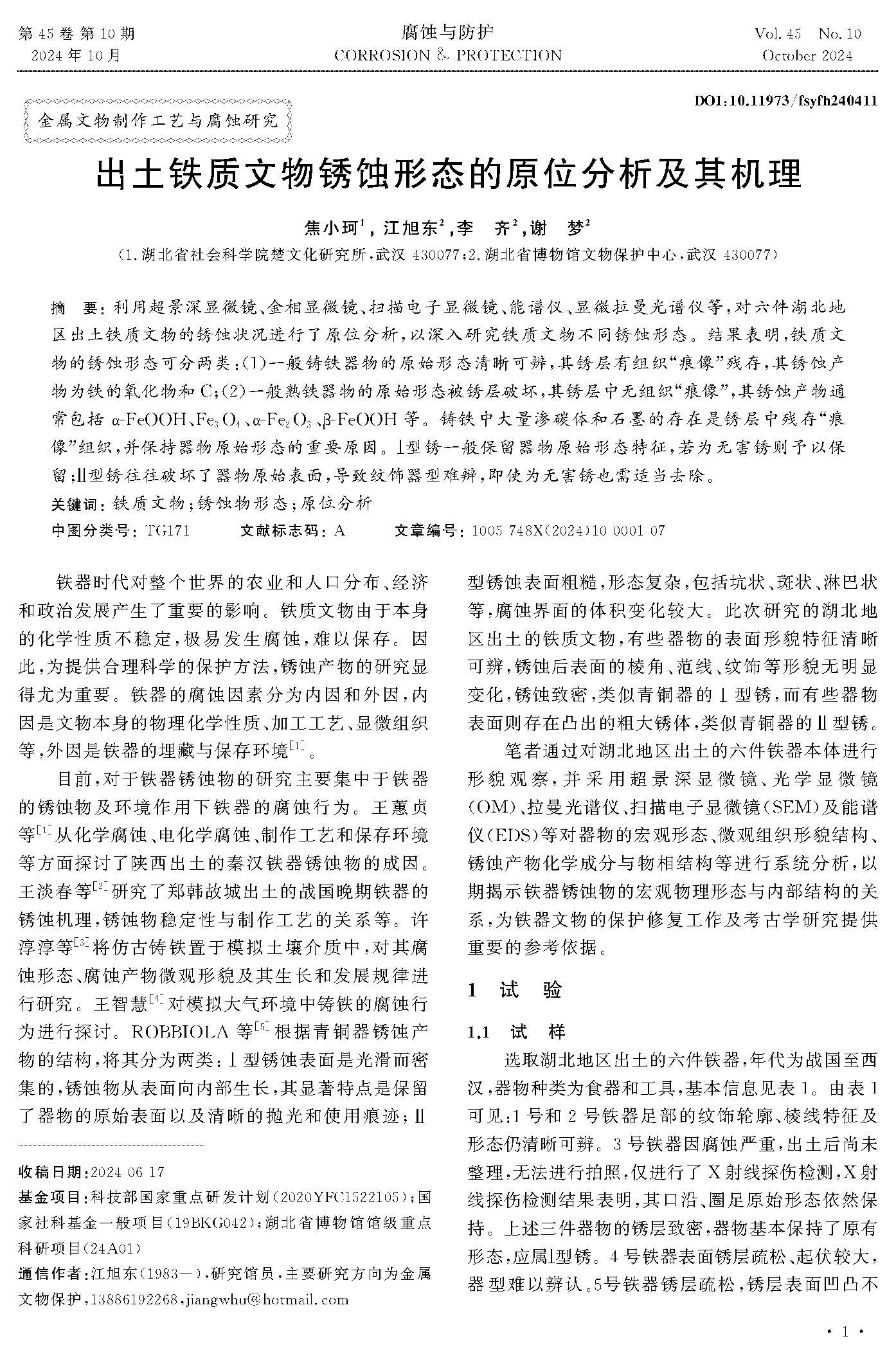 出土铁质文物锈蚀形态的原位分析及其机理