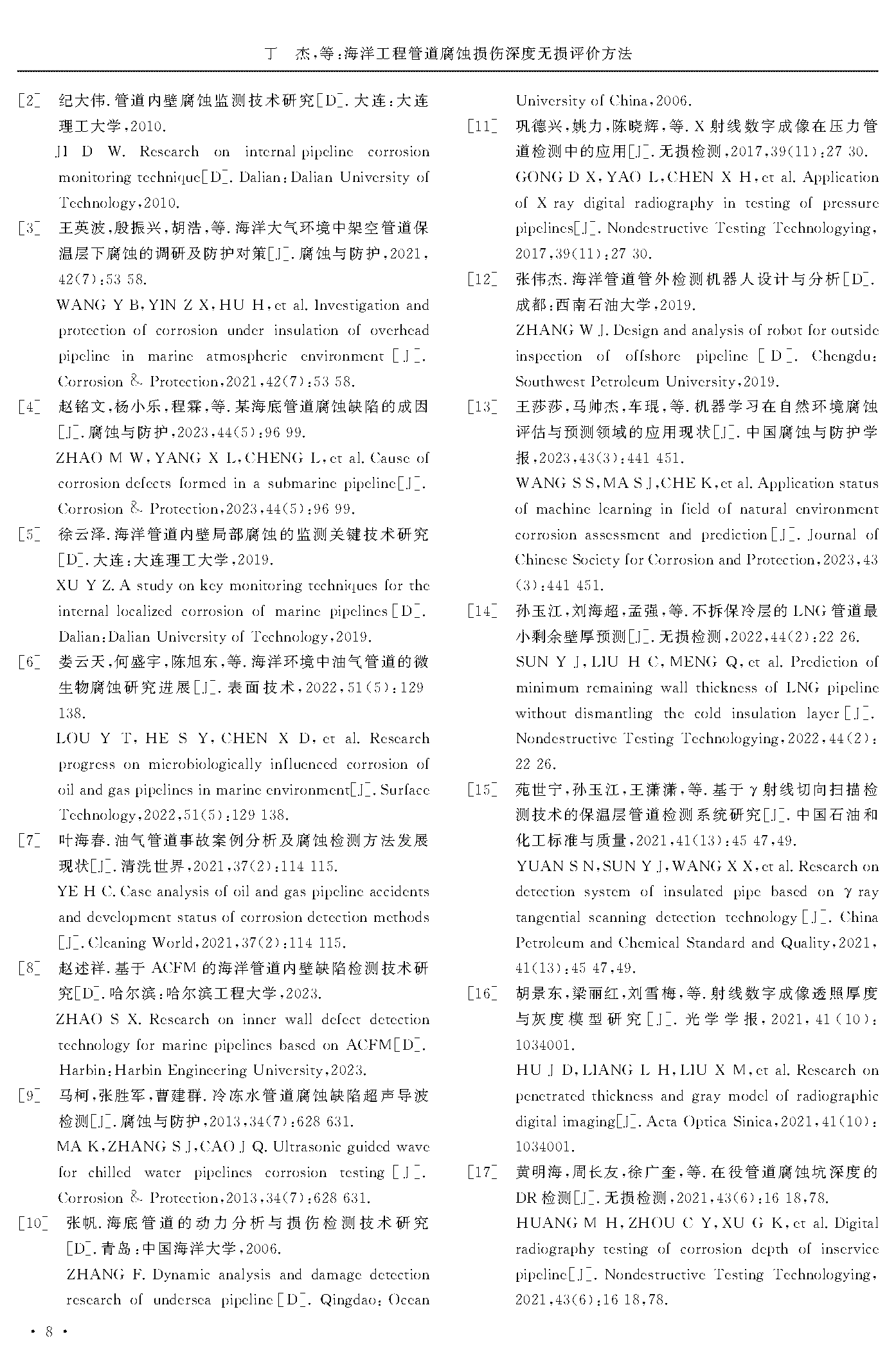 海洋工程管道腐蚀损伤深度无损评价方法