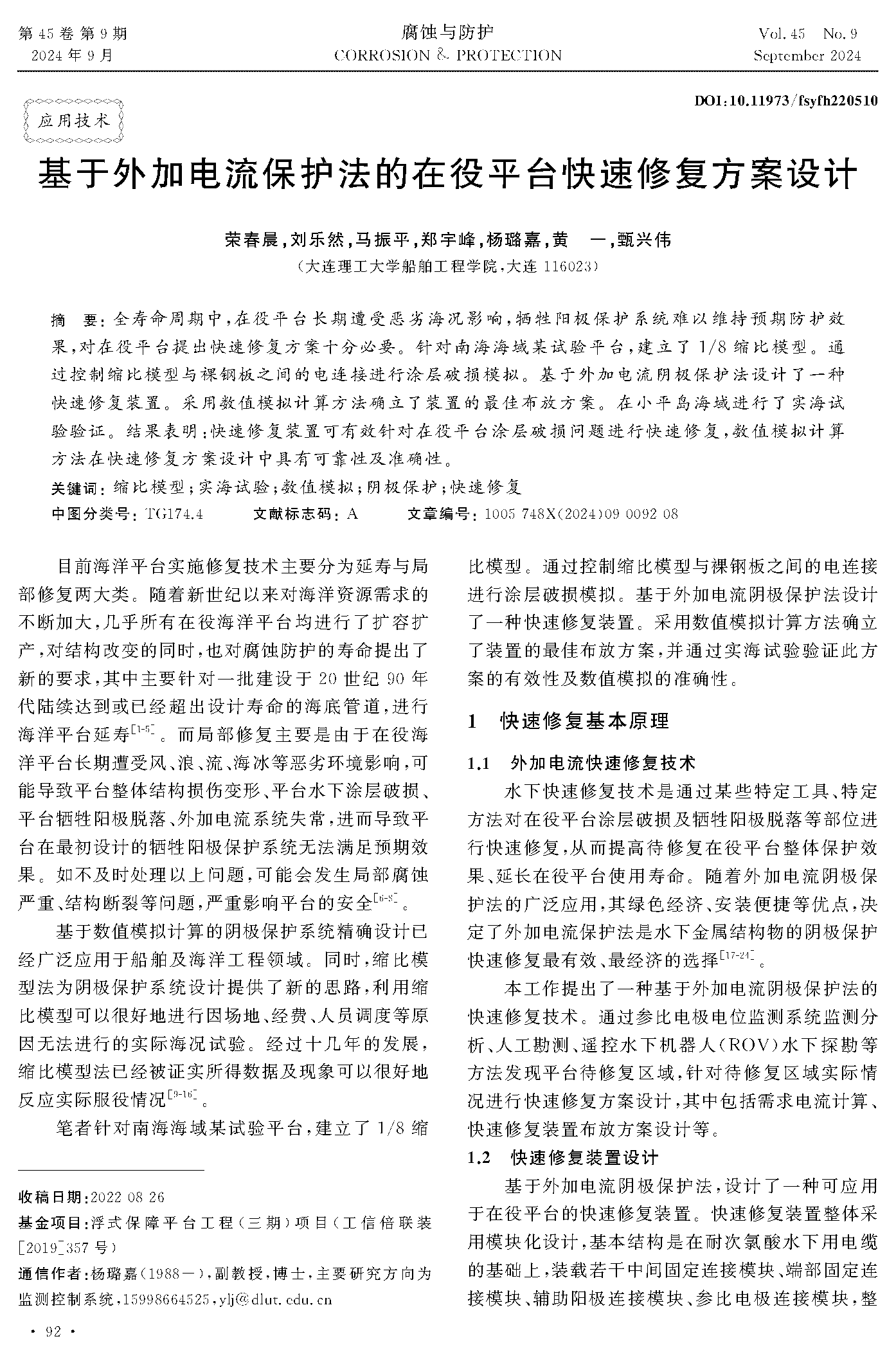 基于外加电流保护法的在役平台快速修复方案设计