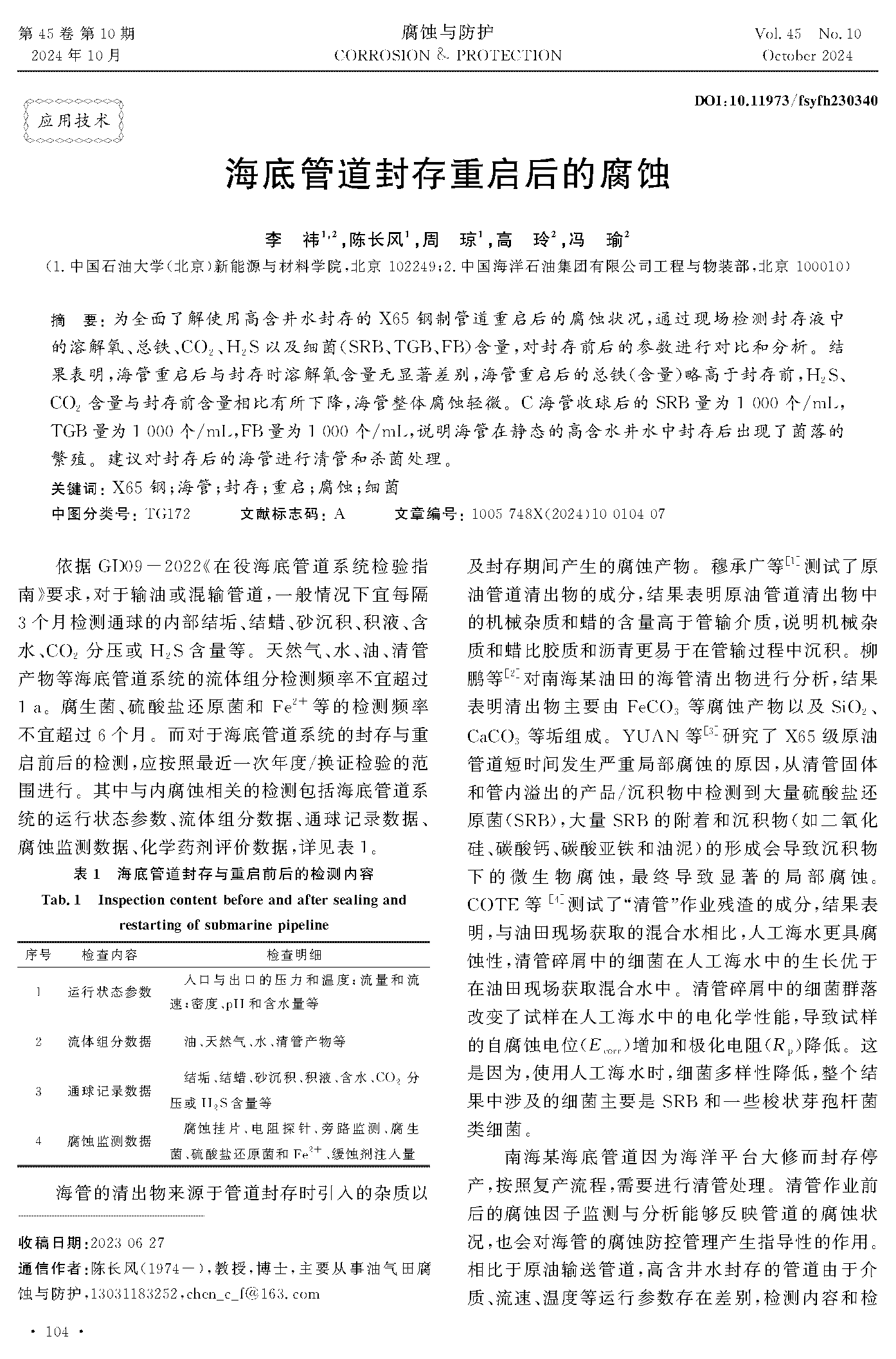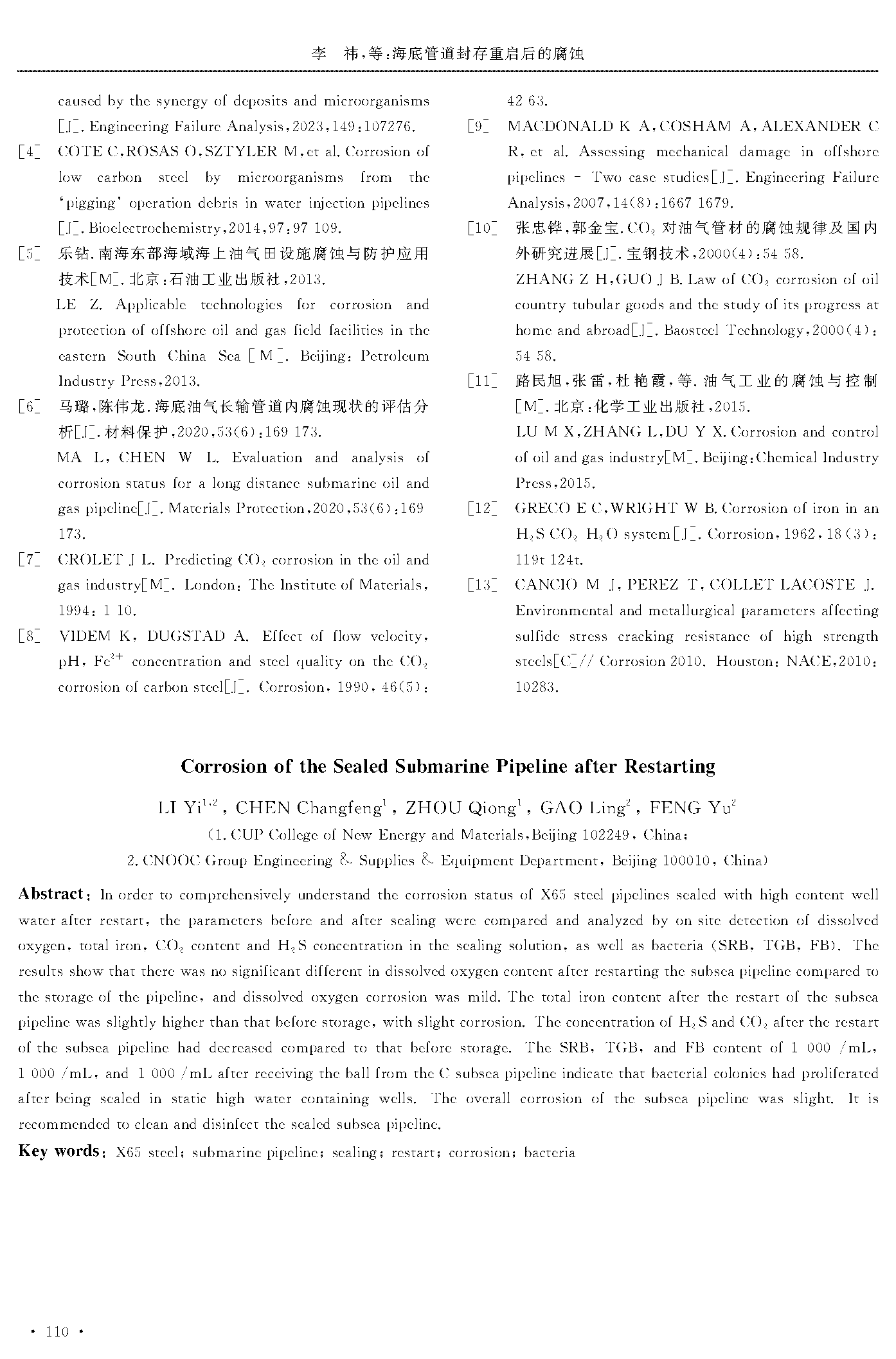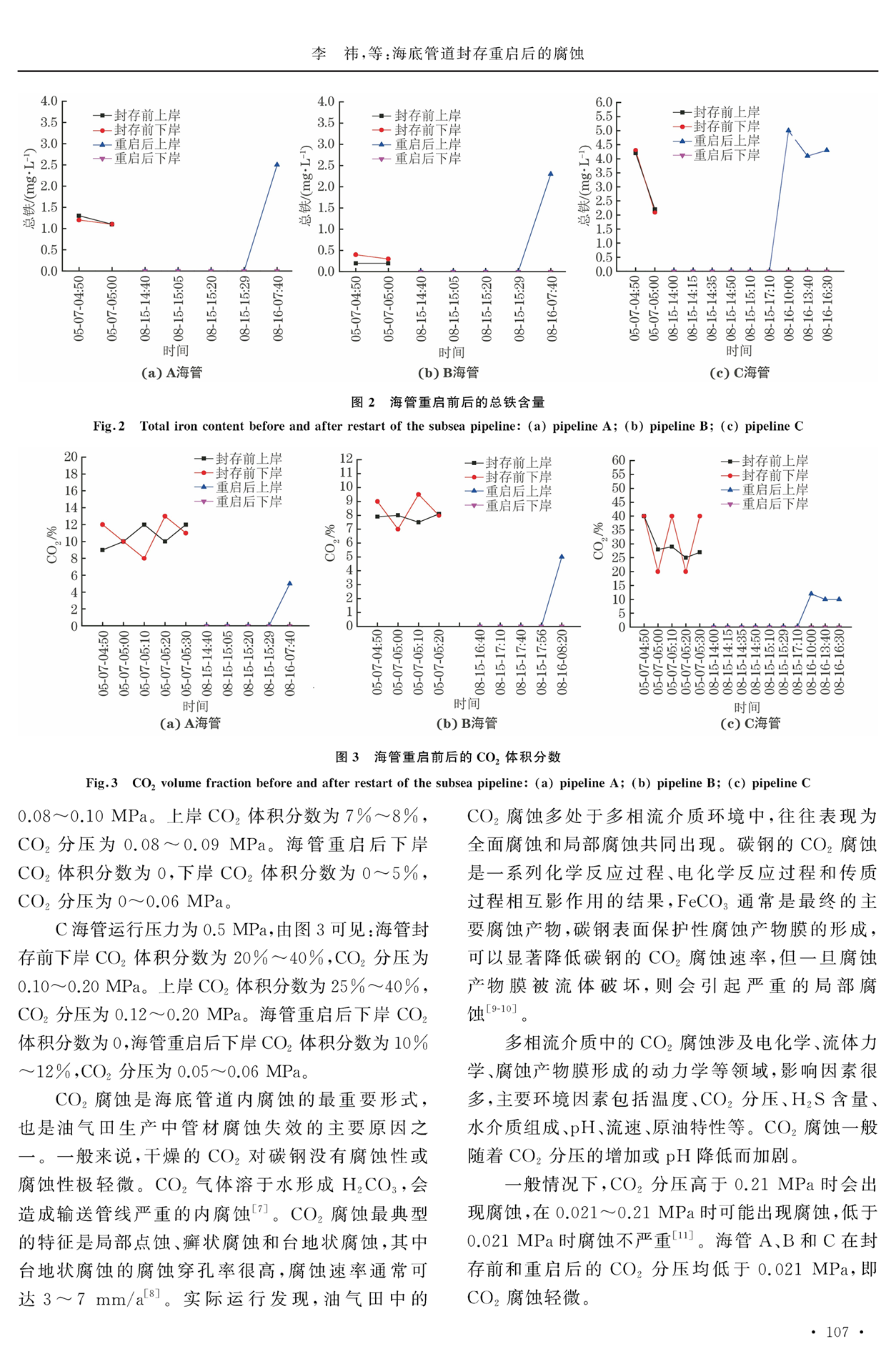 海底管道封存重启后的腐蚀