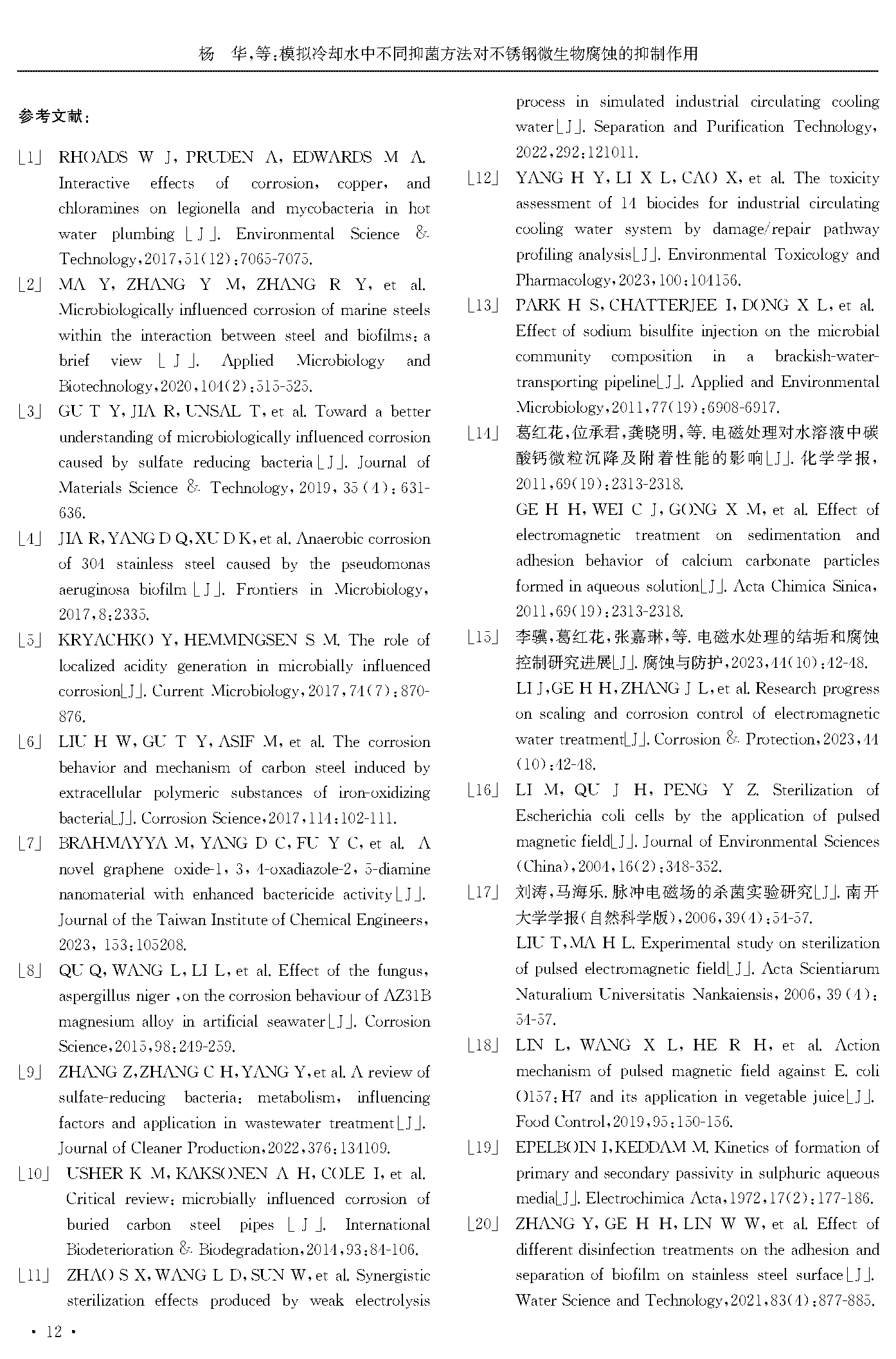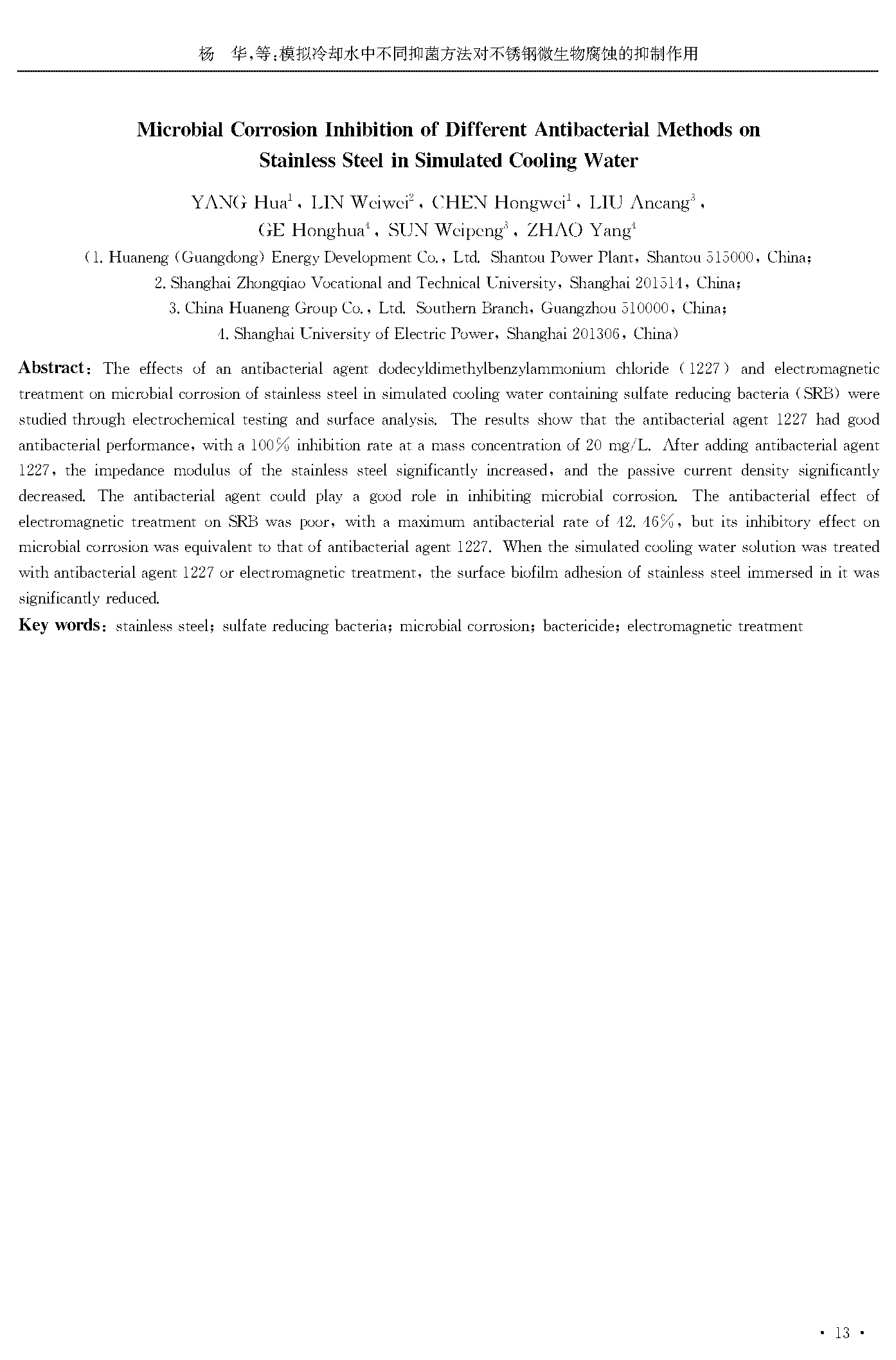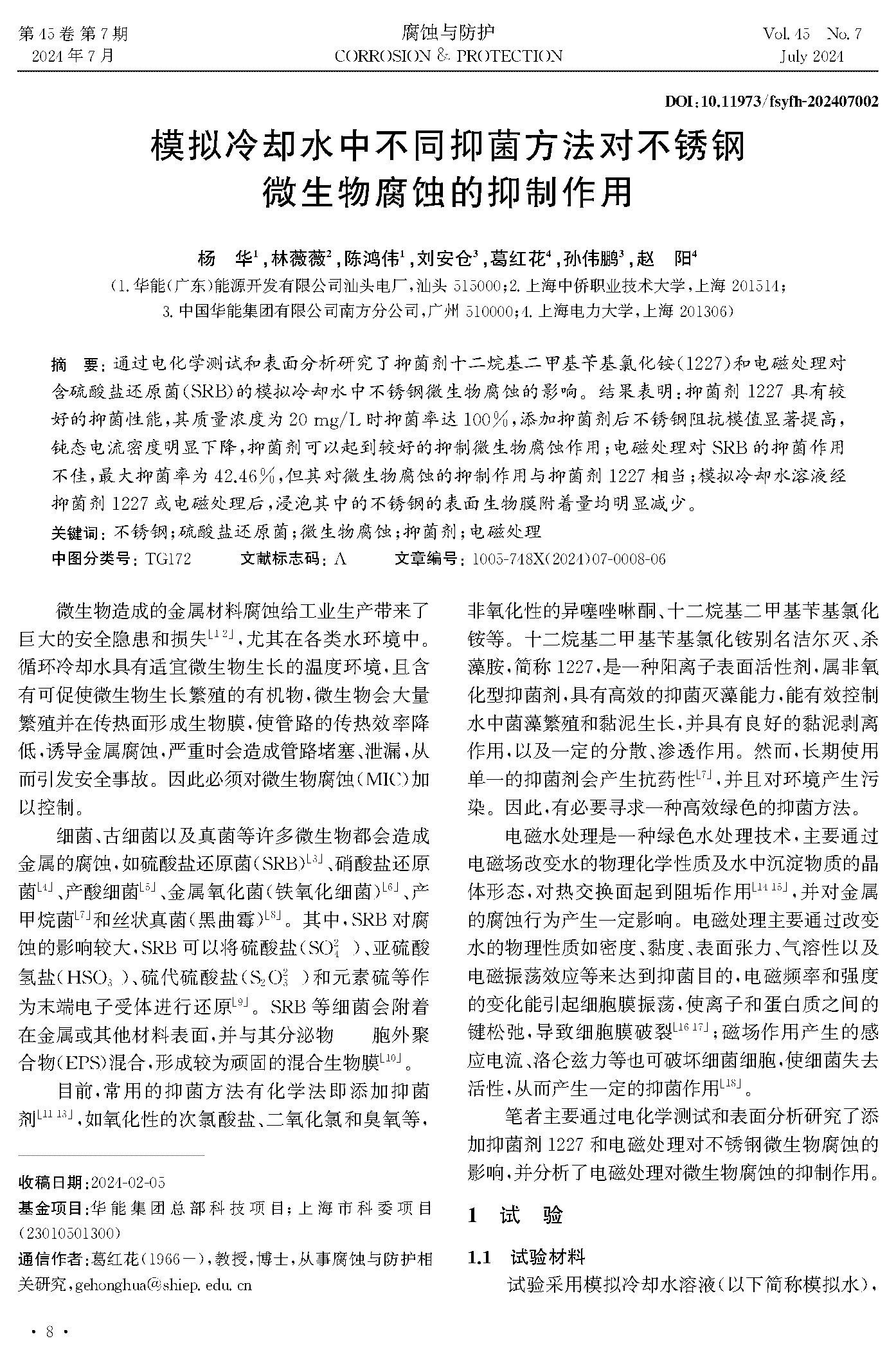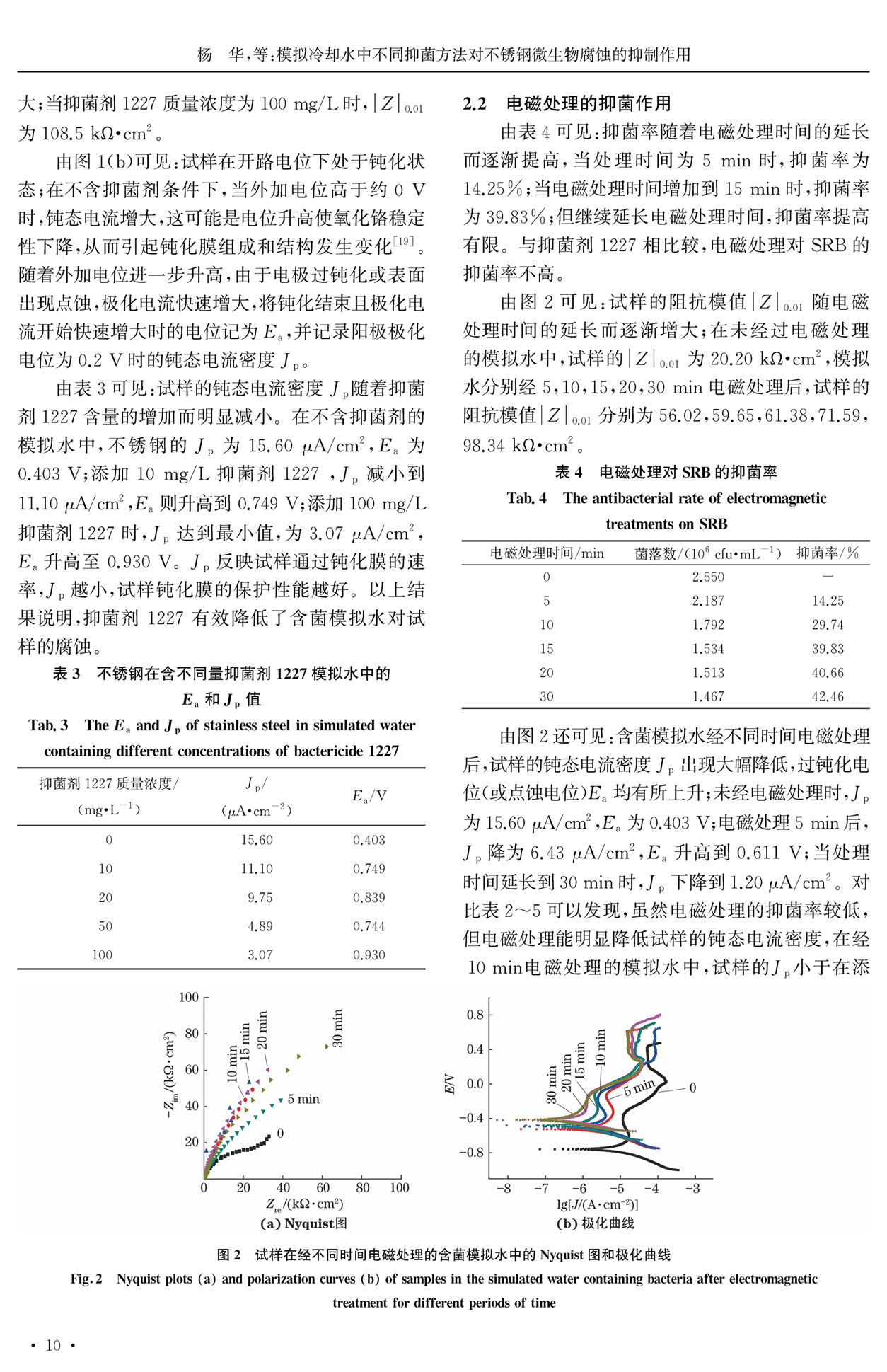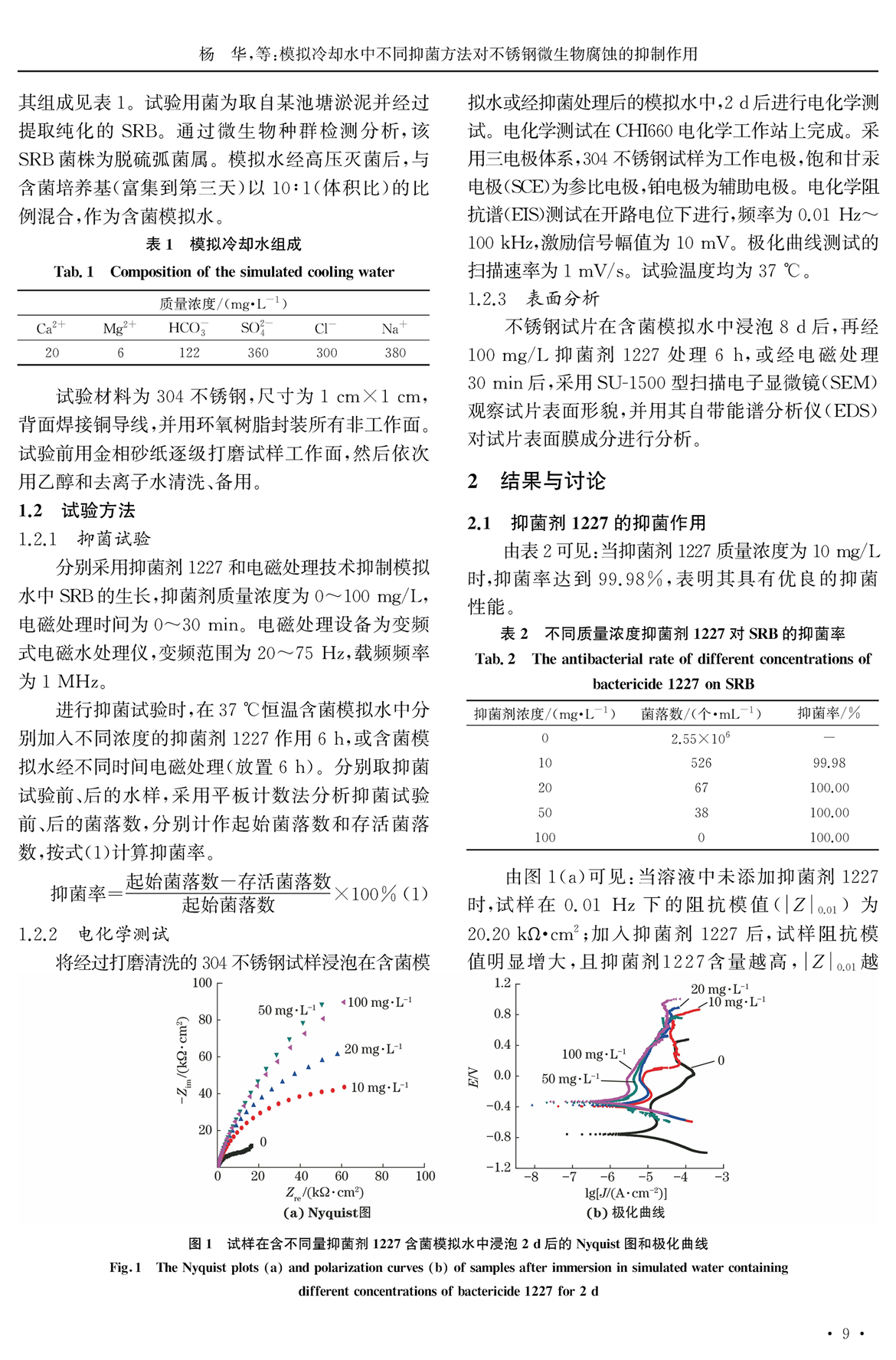 模拟冷却水中不同抑菌方法对不锈钢微生物腐蚀的抑制作用