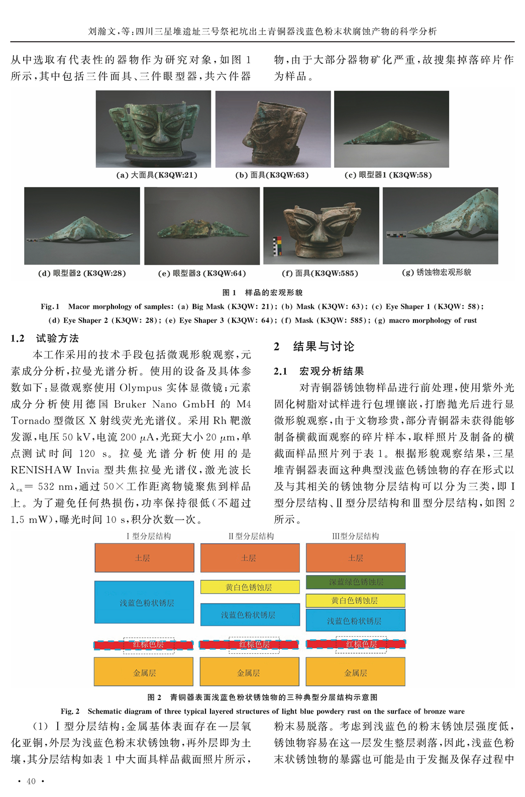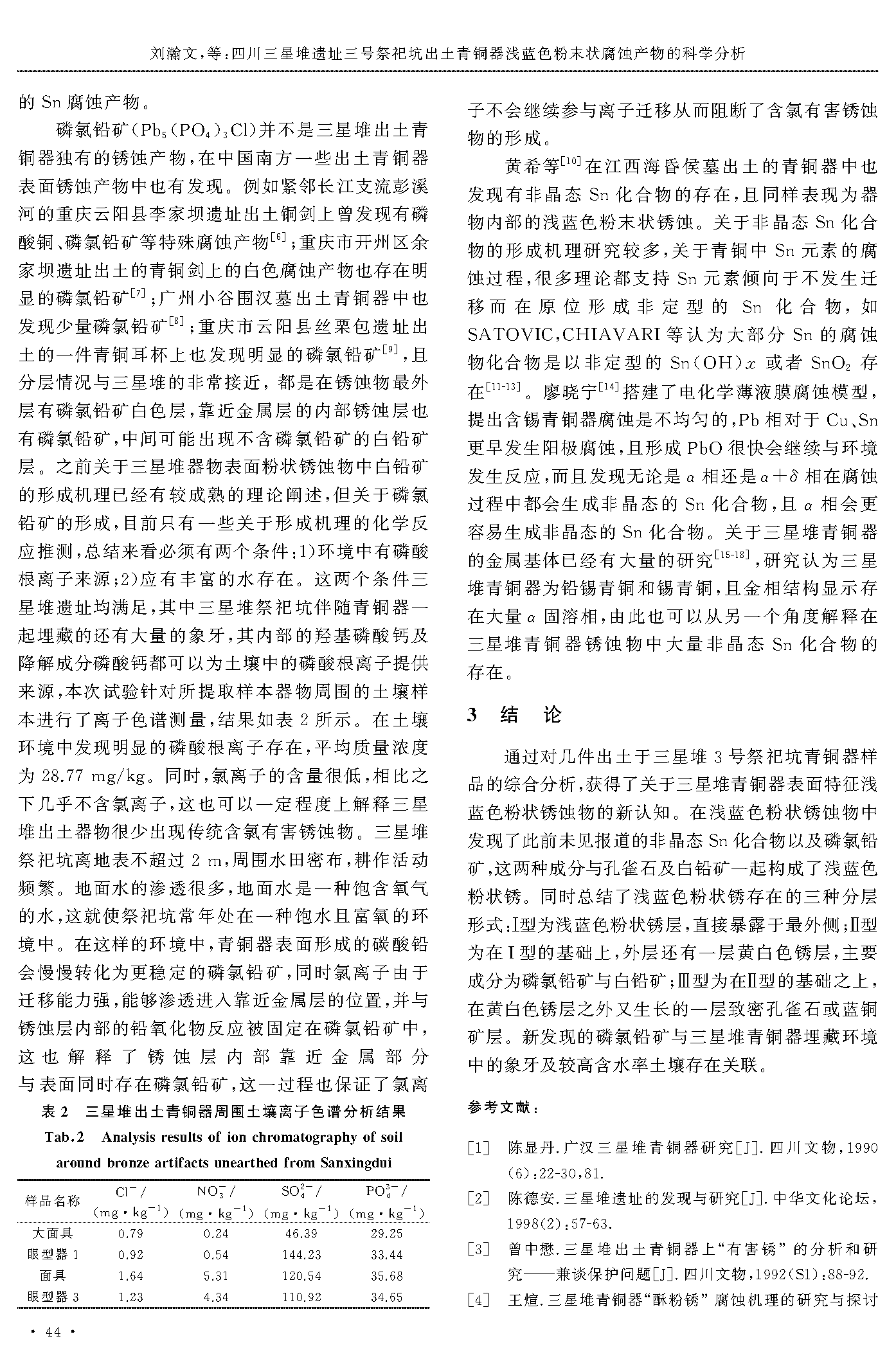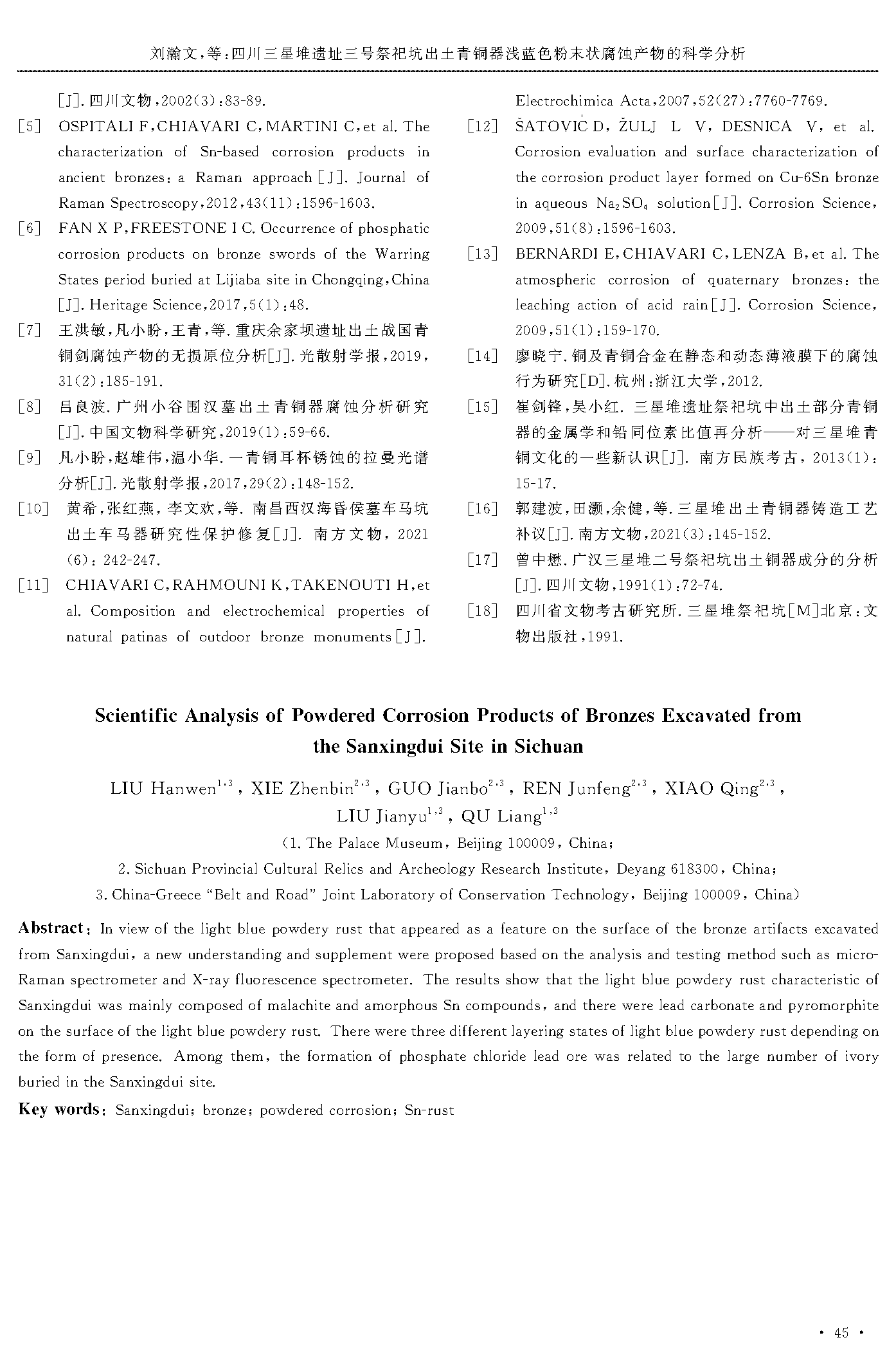 四川三星堆遗址三号祭祀坑出土青铜器浅蓝色粉末状腐蚀产物的科学分析