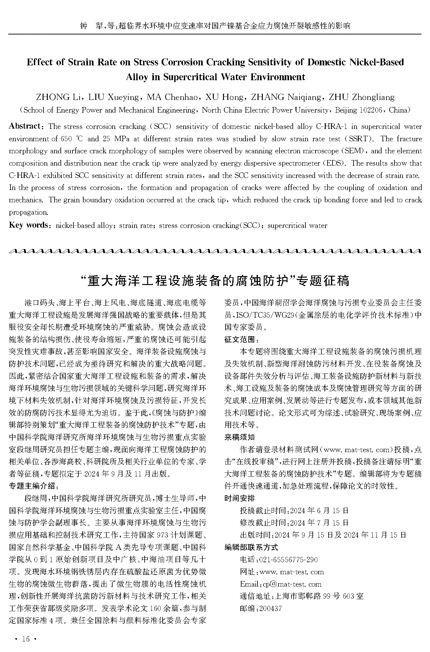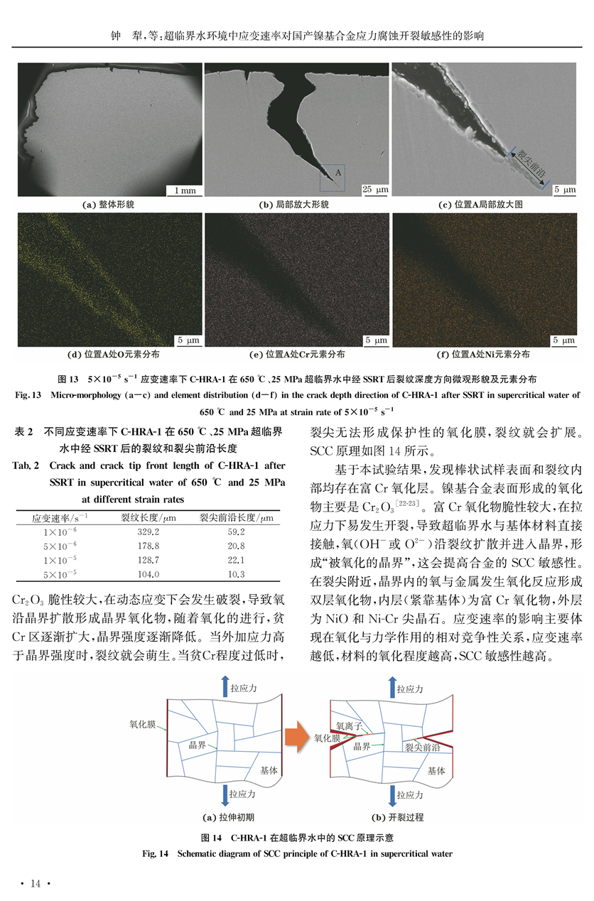 超临界水环境中应变速率对国产镍基合金应力腐蚀开裂敏感性的影响