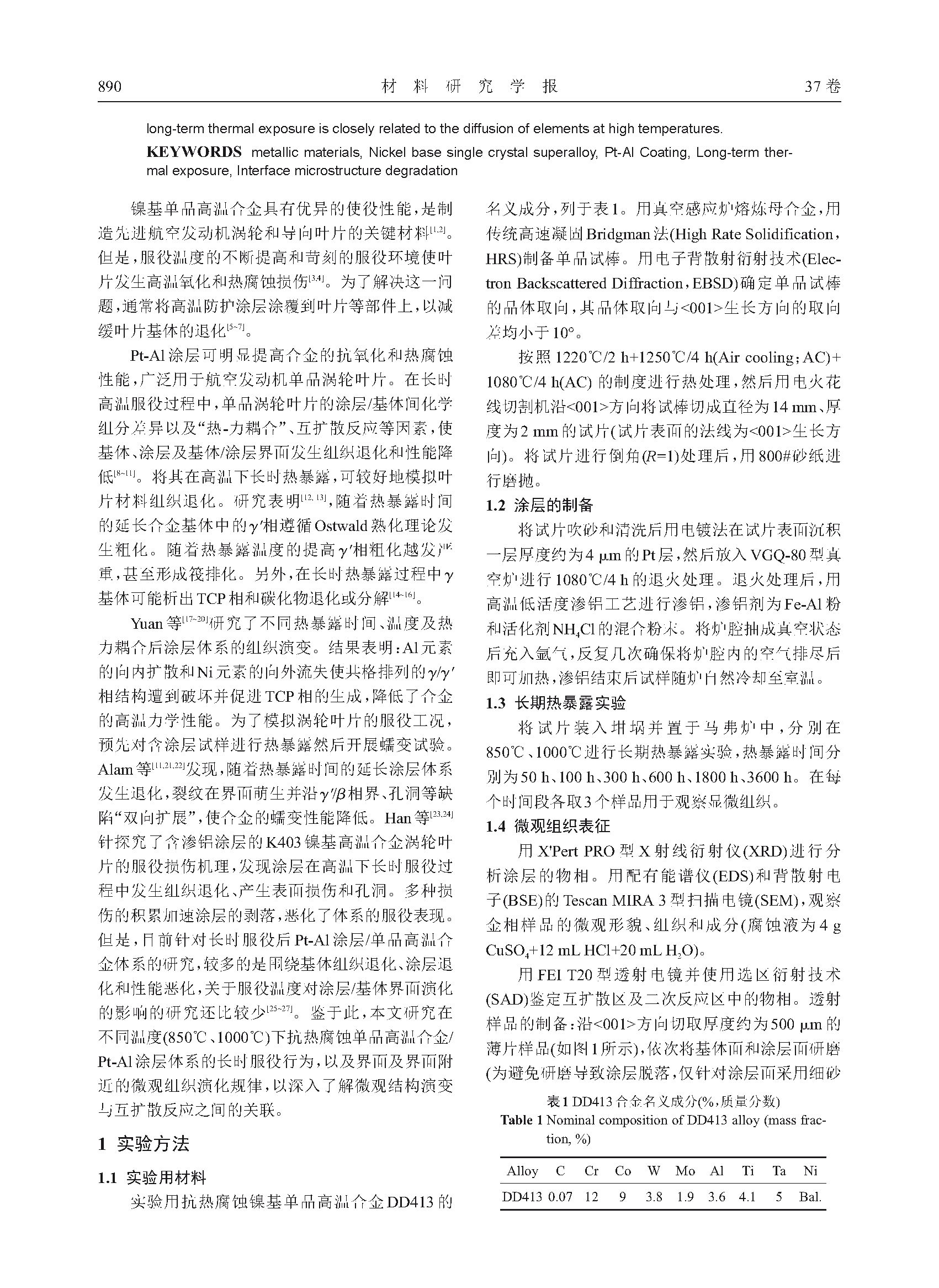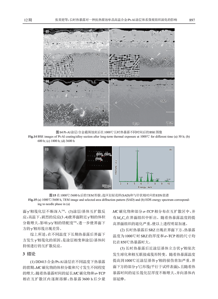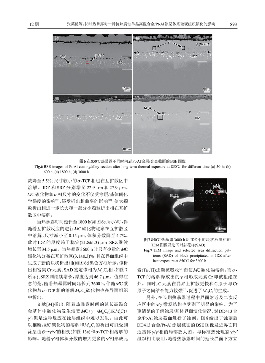 长时热暴露对一种抗热腐蚀单晶高温合金/Pt-Al涂层体系微观组织演化的影响