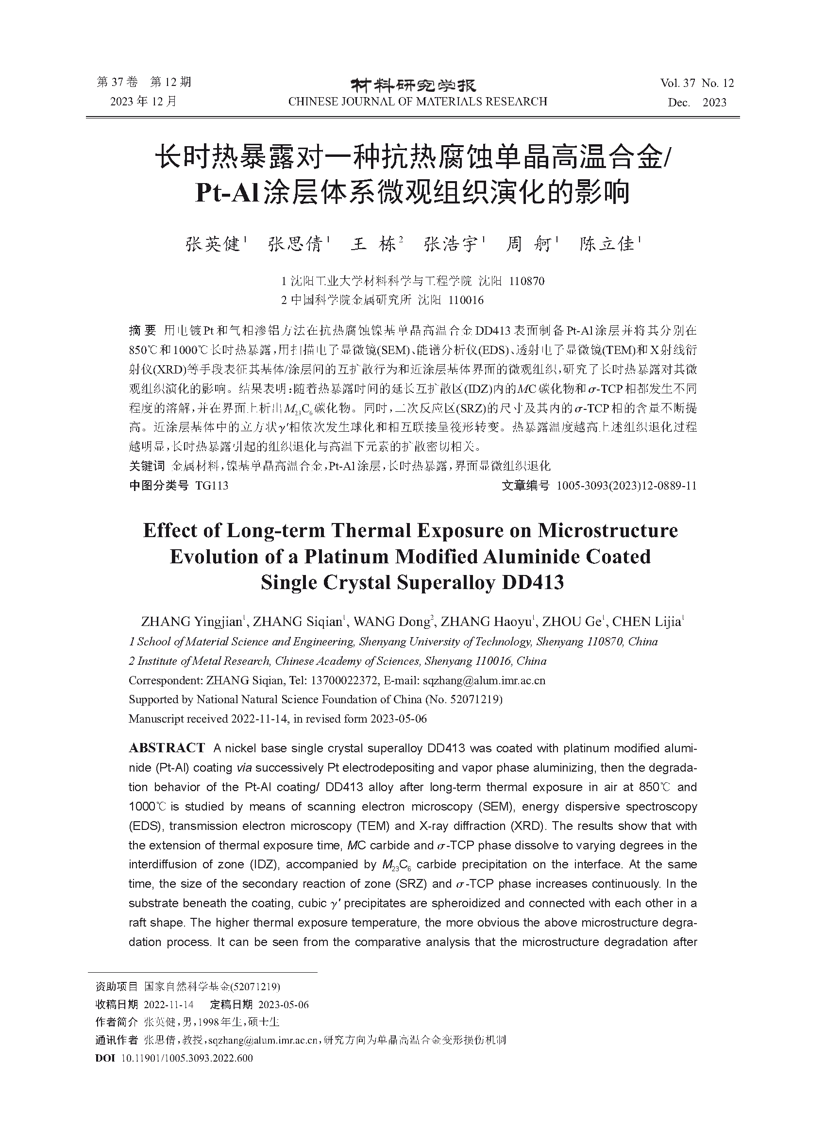 作者:材料研究学报