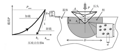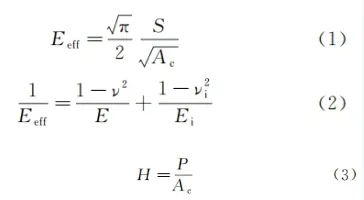 式中:S为材料接触刚度,在P-h曲线上表现为卸载过程曲线顶部斜率;Ac为压痕投影面积;E、ν分别为测试材料的弹性模量与泊松比,钢筋锈蚀产物泊松比取值为0.25;Ei与νi分别为金刚石压头的弹性模量与泊松比,测试过程分别取值1141GPa与0.07。