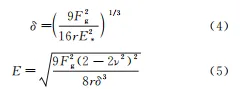由图6可见:在固结试验中,荷载是逐级增大的,但在每个持载阶段荷载保持恒定不变,在持载阶段钢筋锈蚀产物可以近似看作恒载作用下的线弹性体,可以近似采用“瞬时弹性模量”进行描述。此时,可以利用Hertz弹性接触理论进行锈蚀产物瞬时弹性模量分析,按照公式(4)~(5)进行计算,具体推导计算过程见文献。