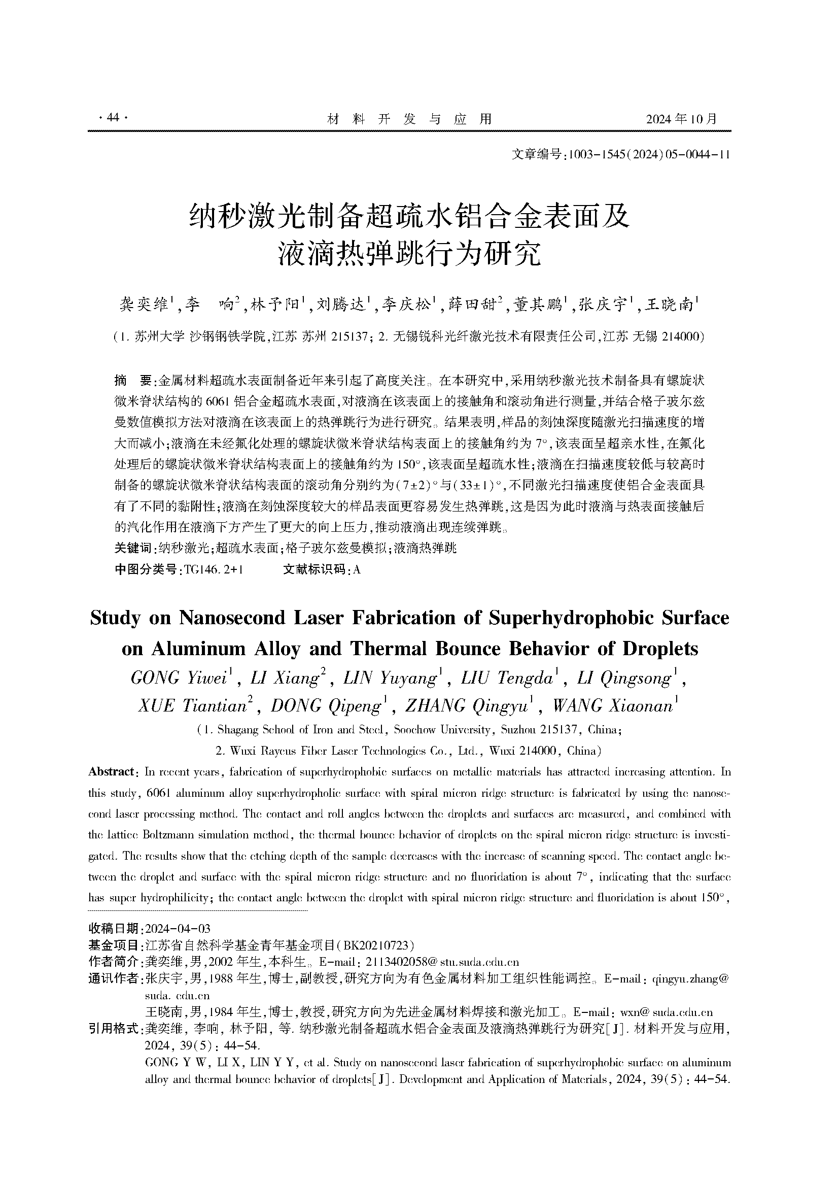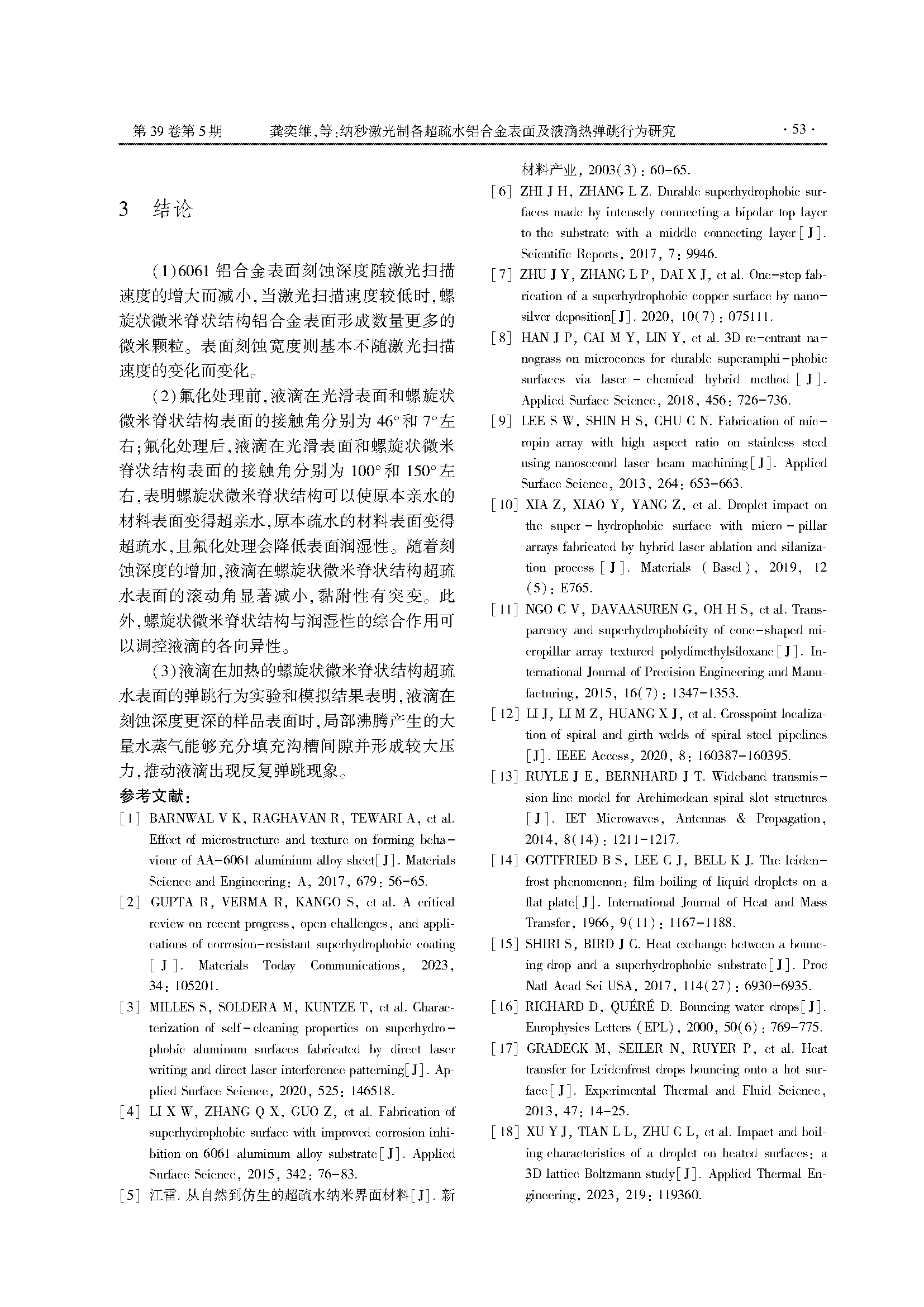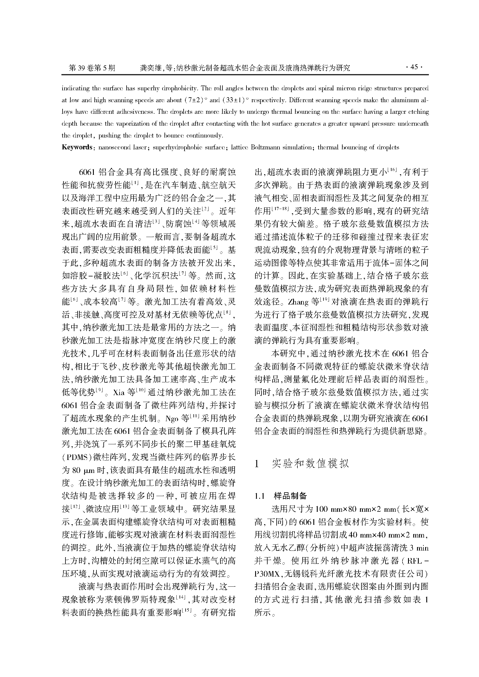 纳秒激光制备超疏水铝合金表面及液滴热弹跳行为研究