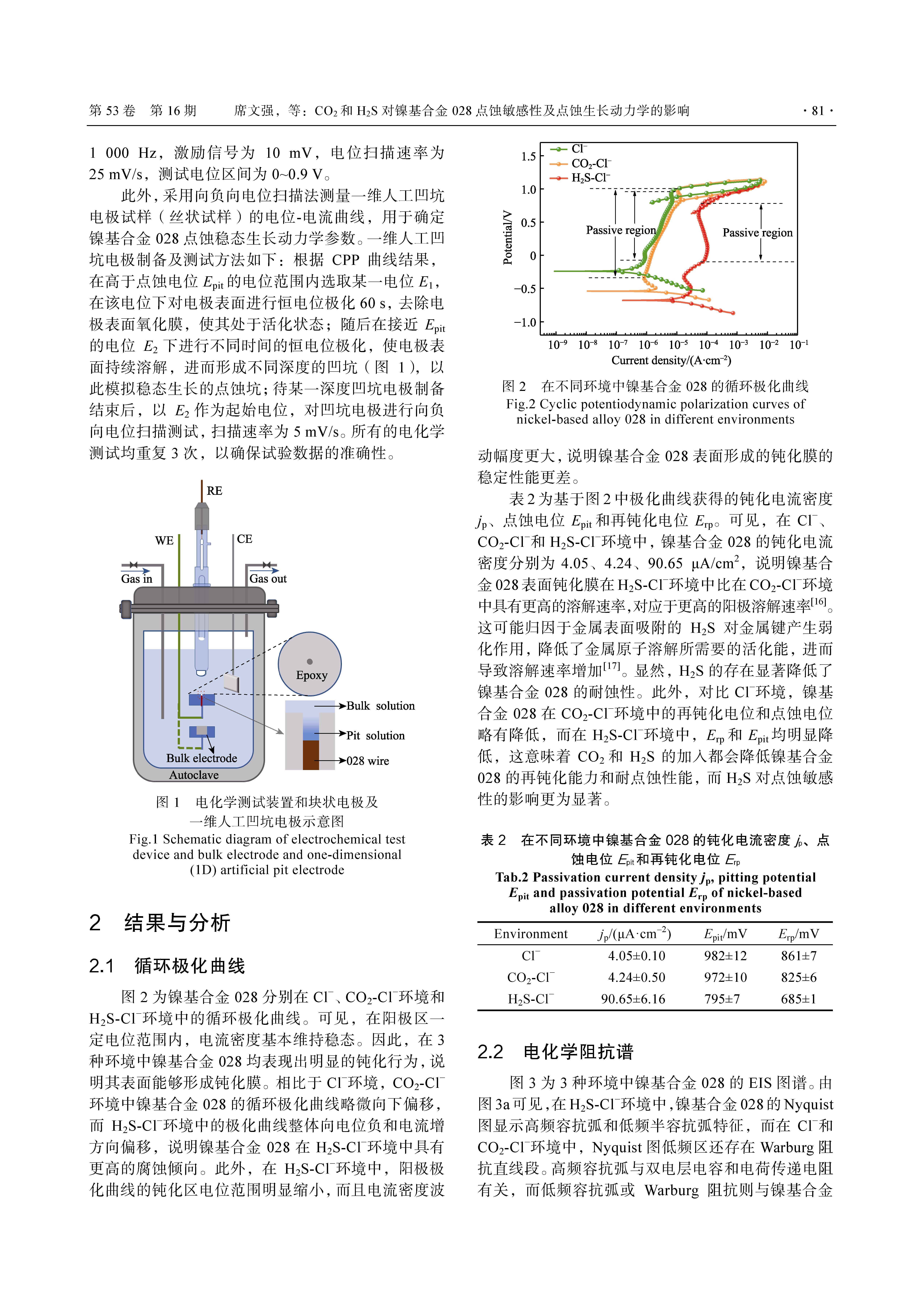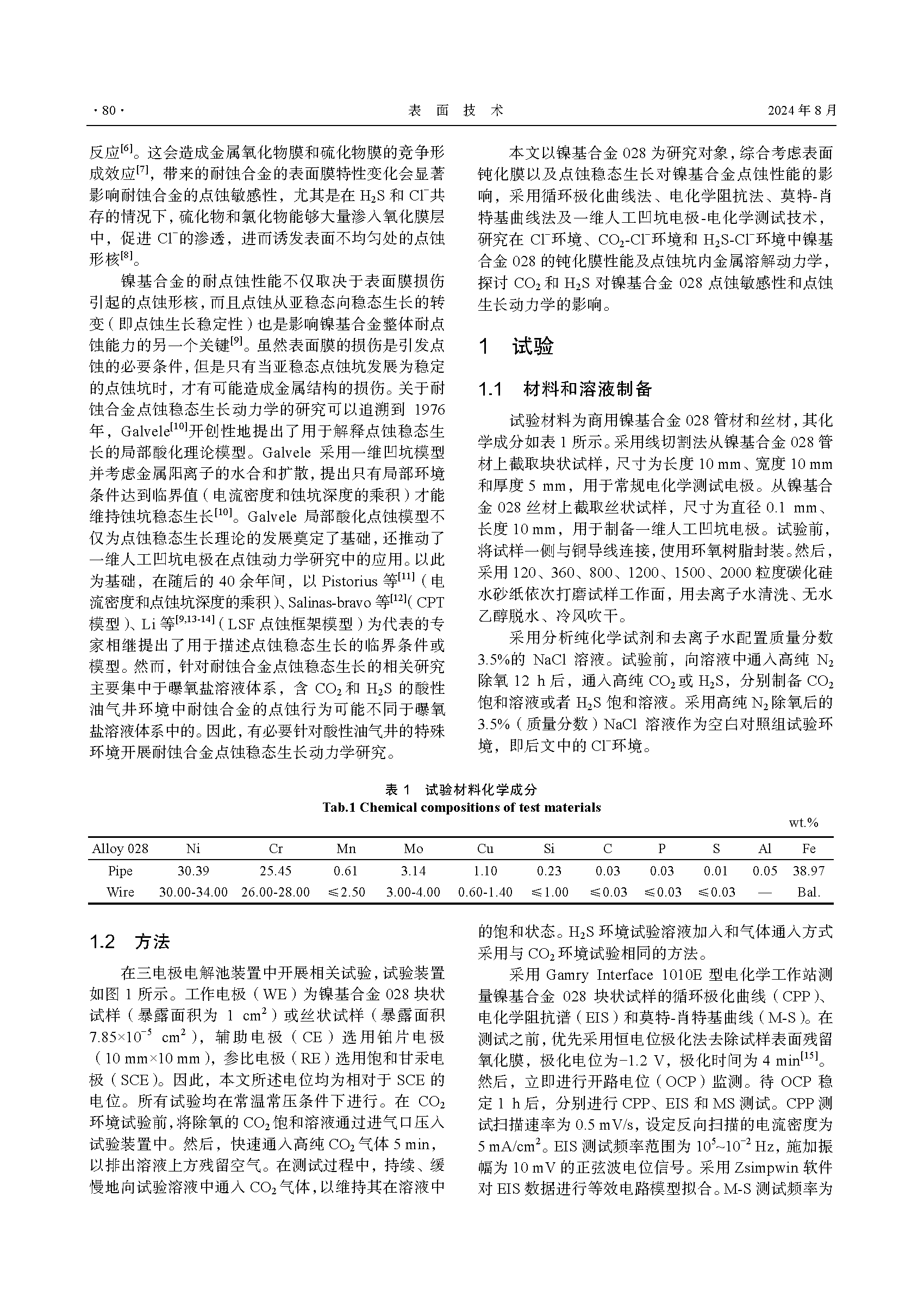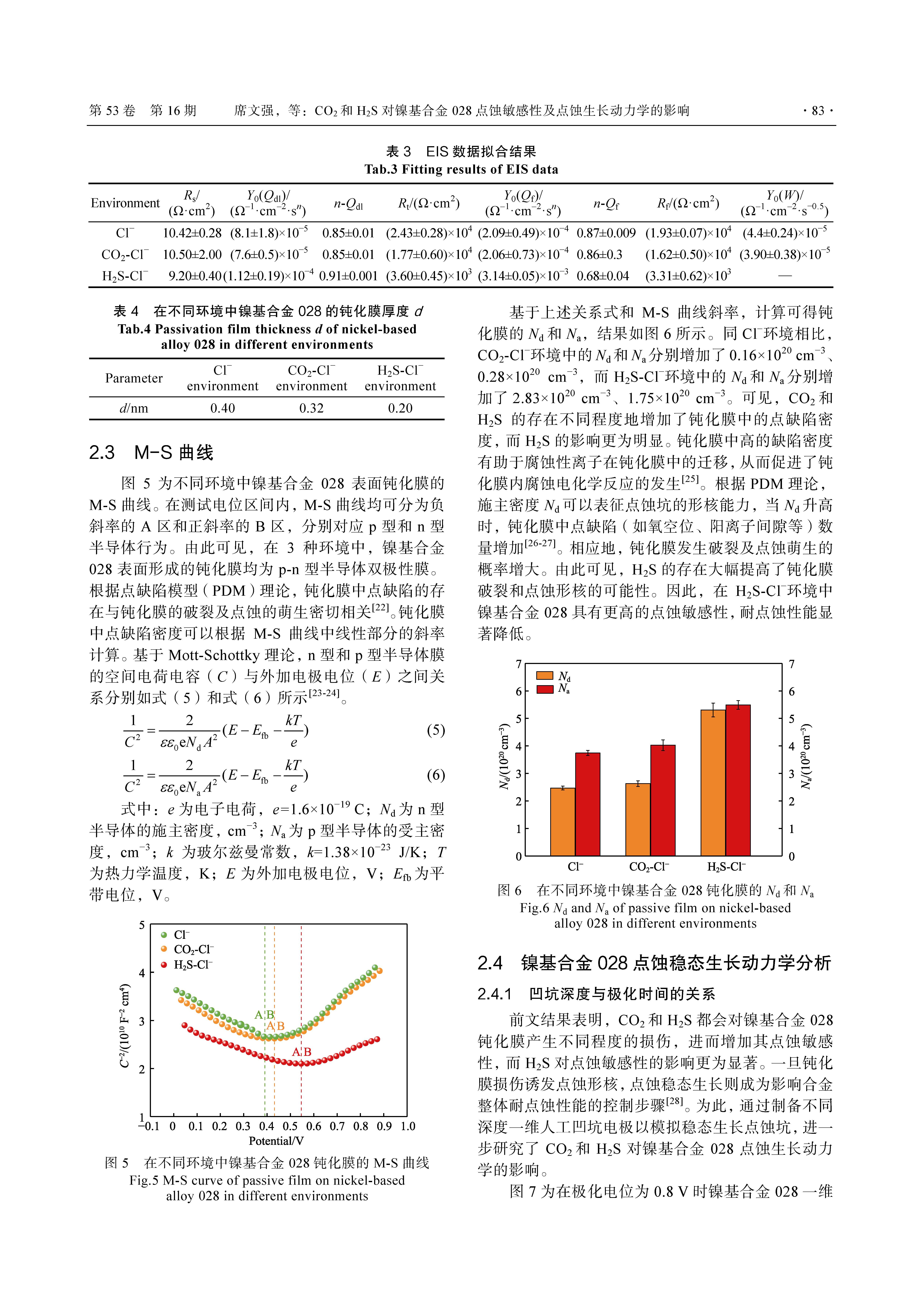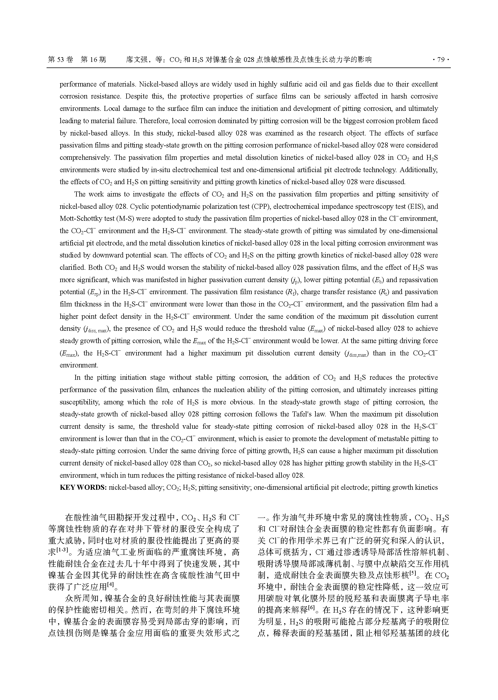 CO2和H2S对镍基合金028点蚀敏感性及点蚀生长动力学的影响