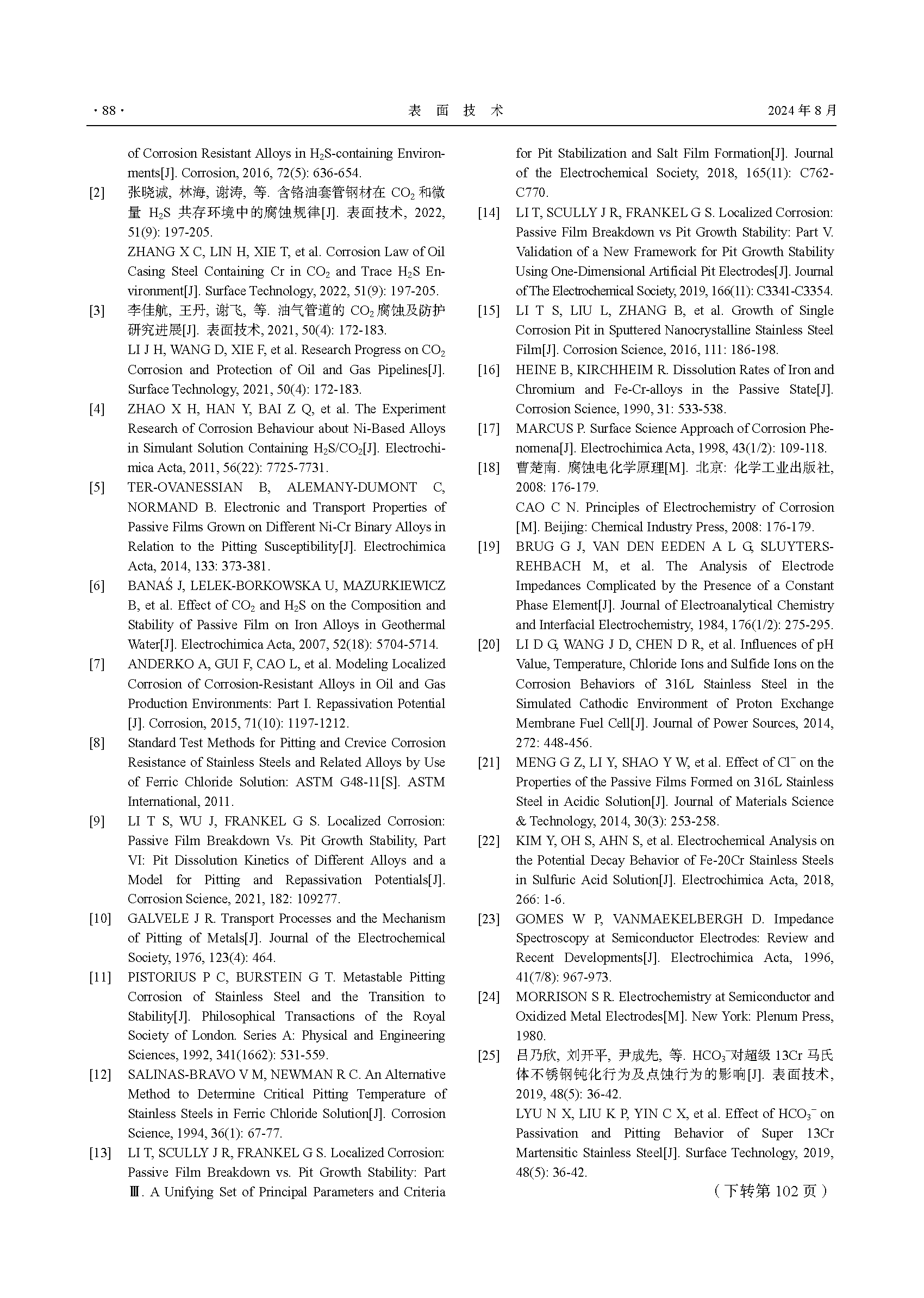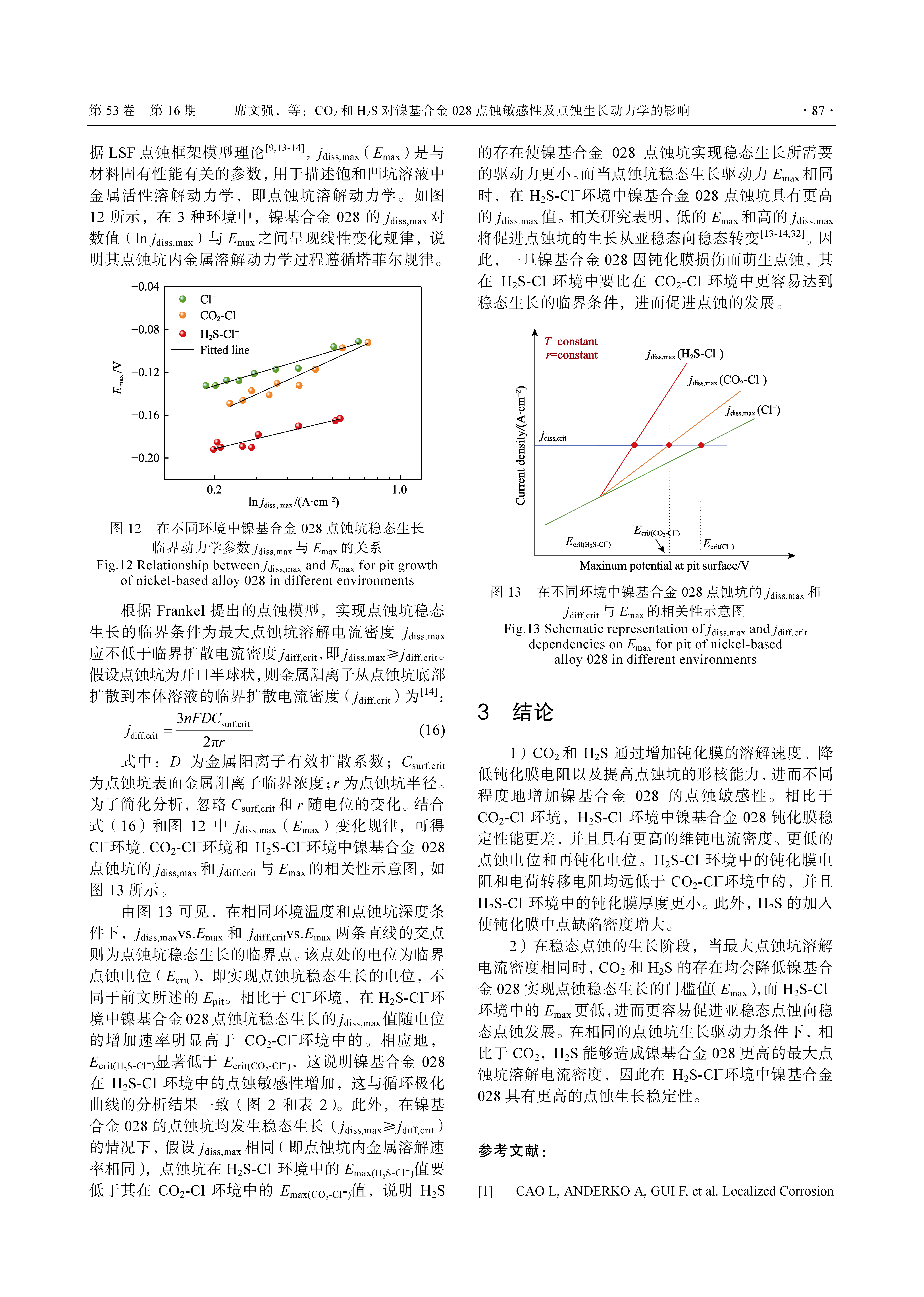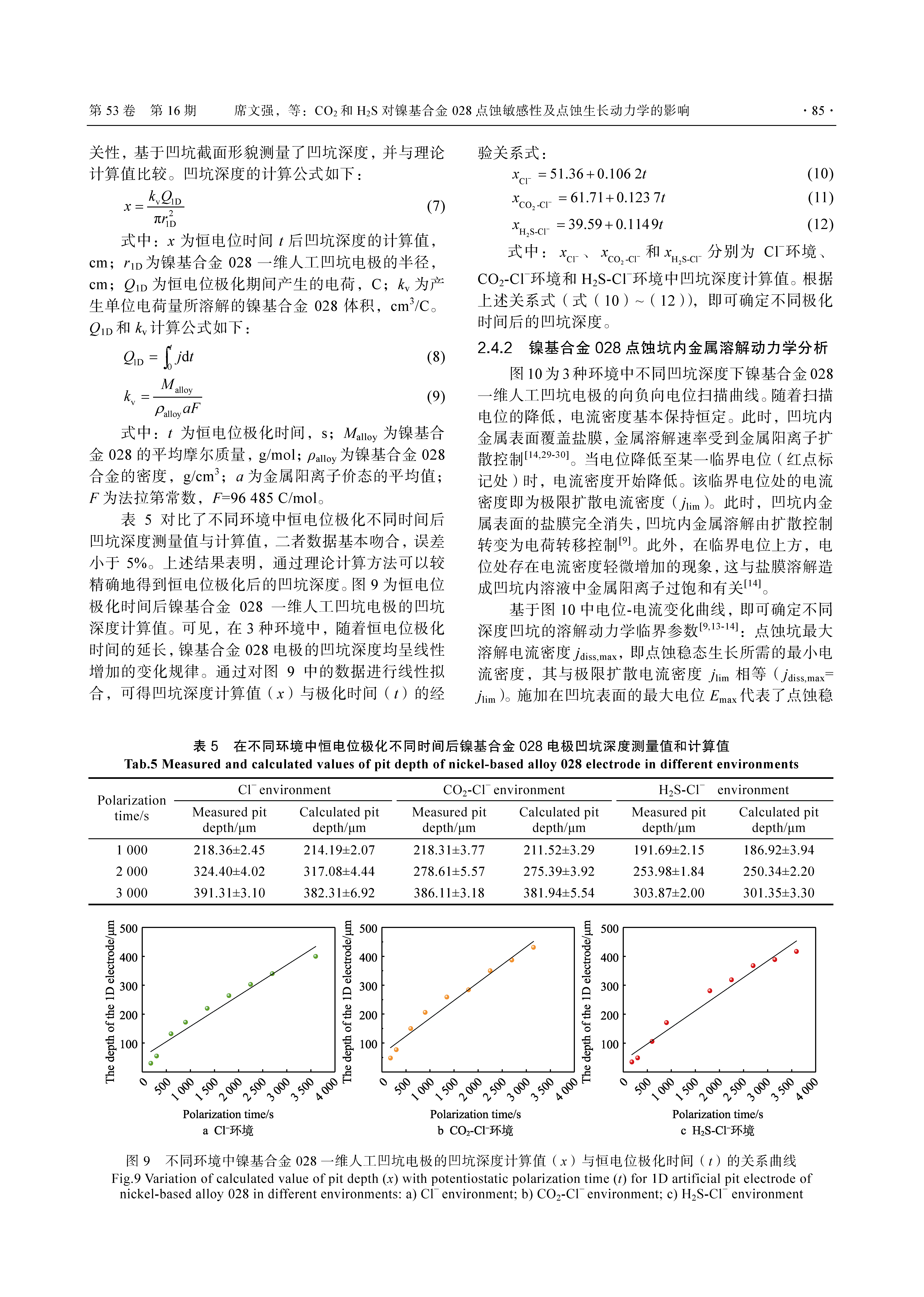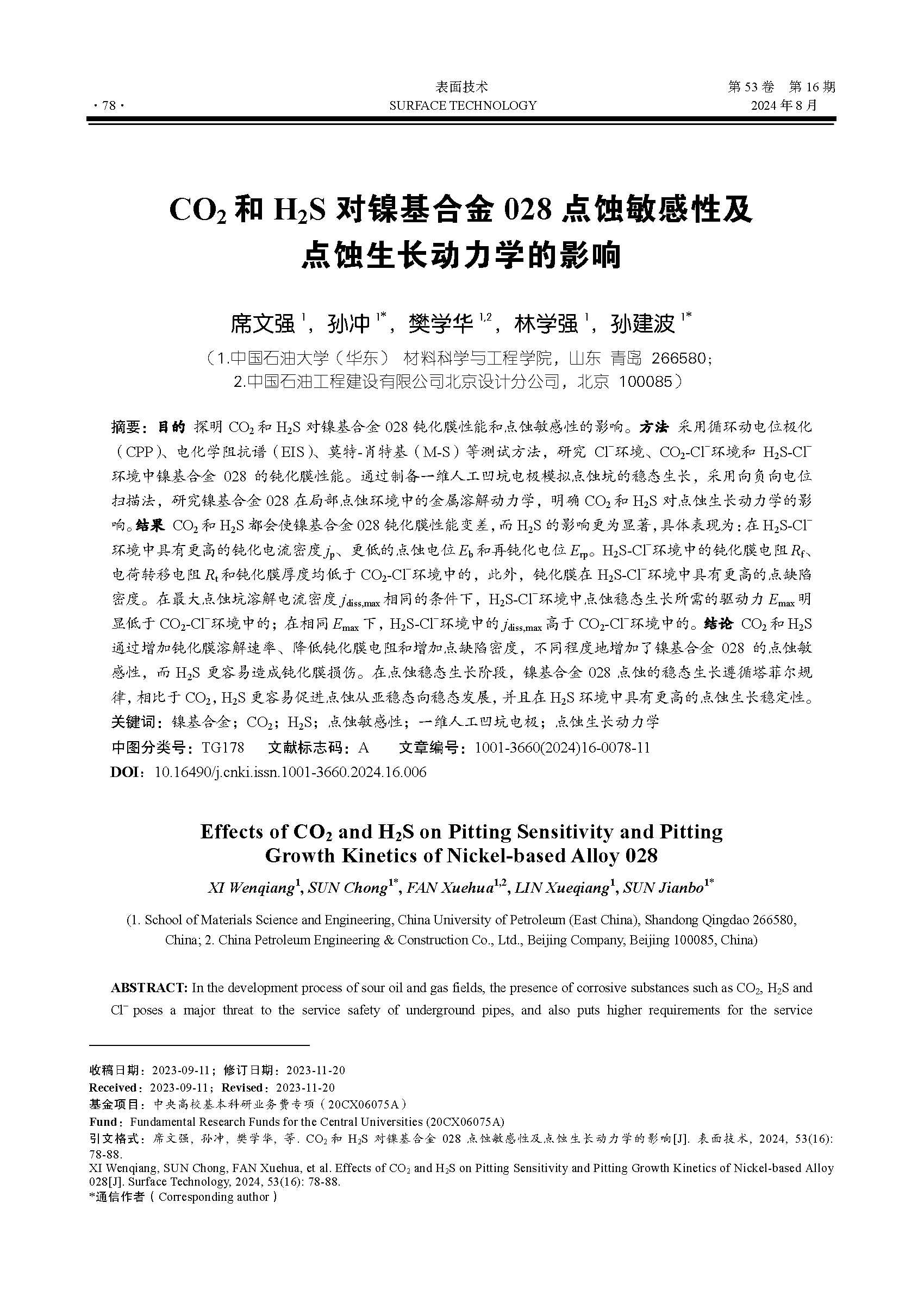 CO2和H2S对镍基合金028点蚀敏感性及点蚀生长动力学的影响