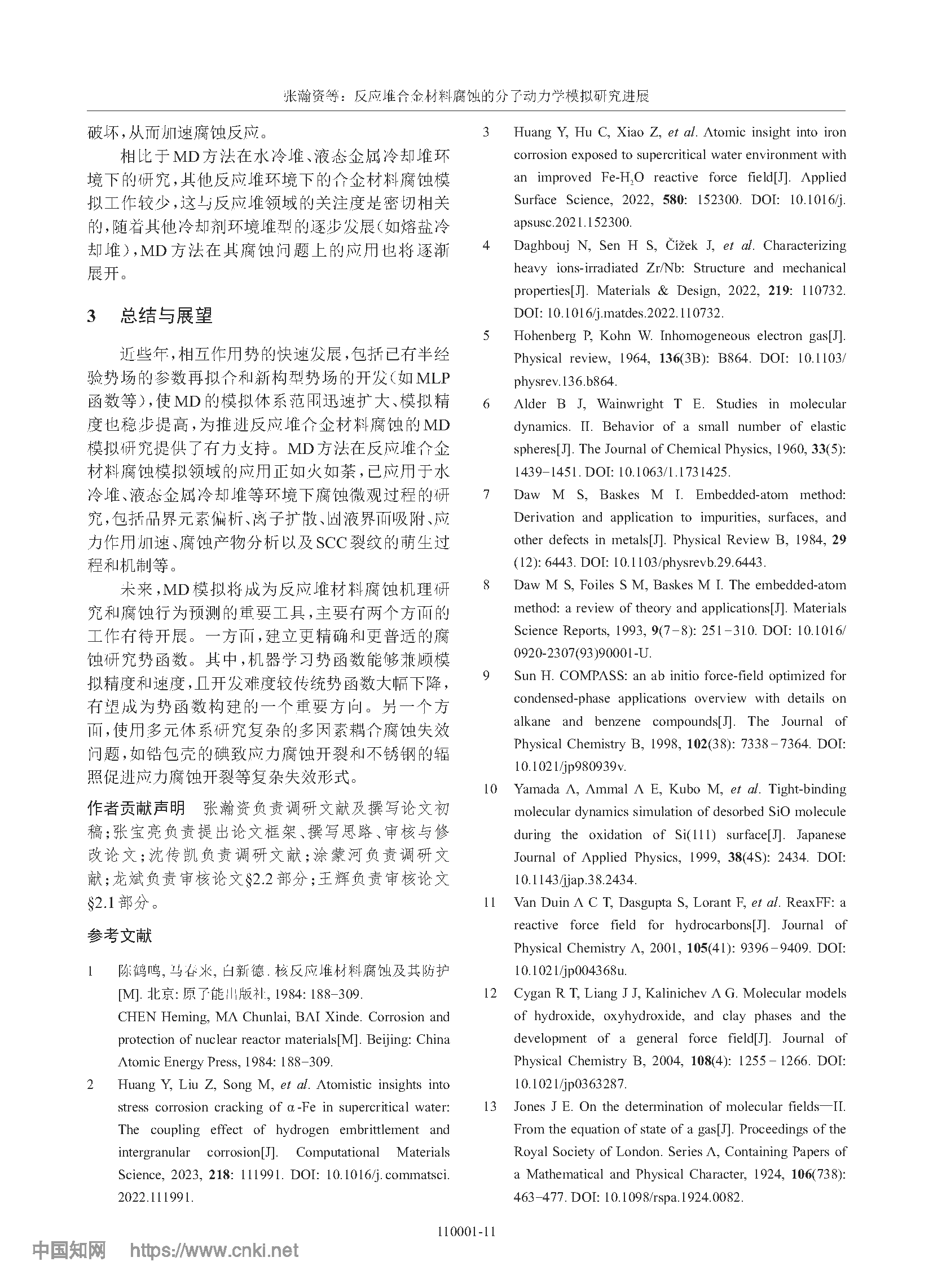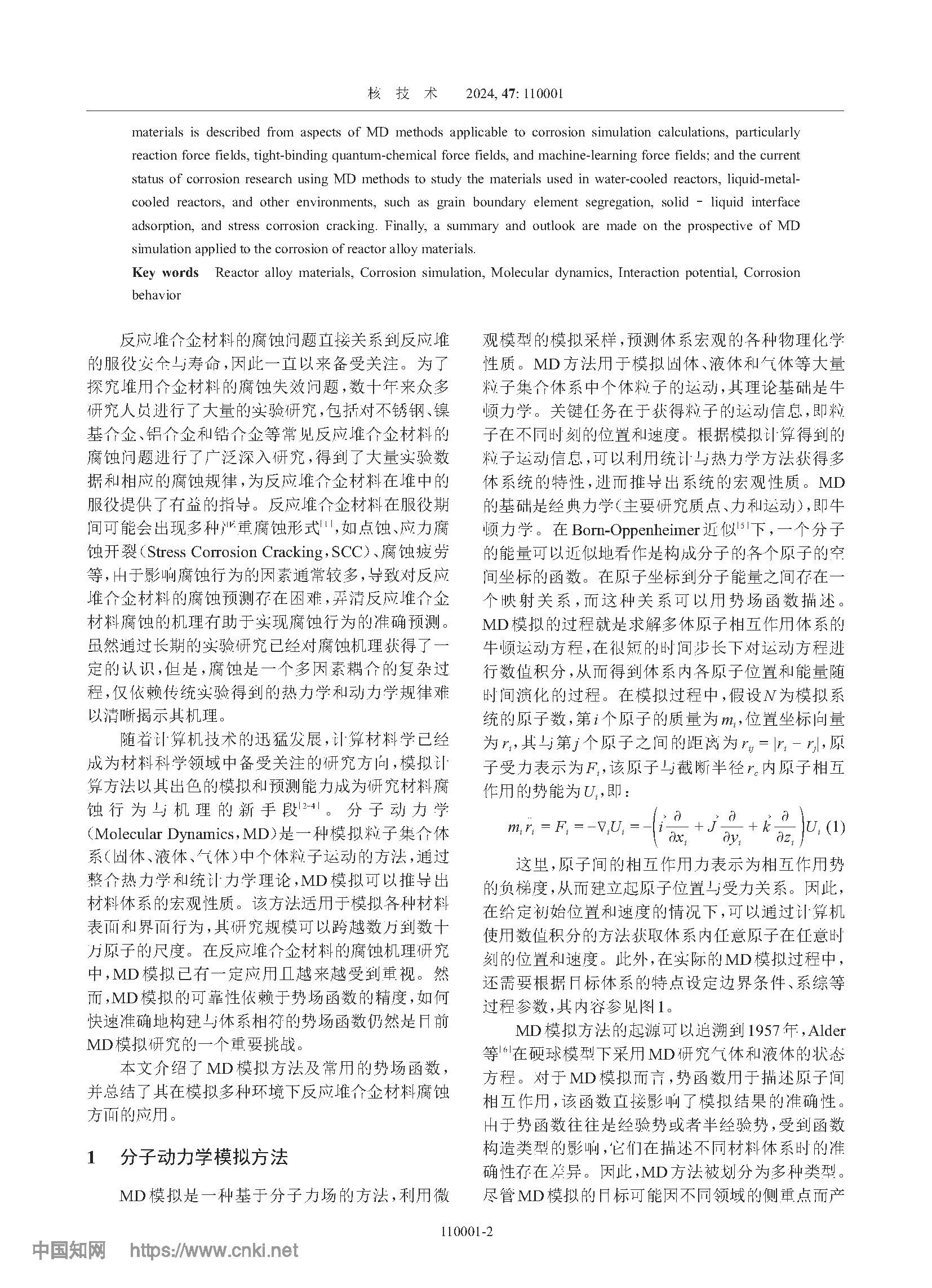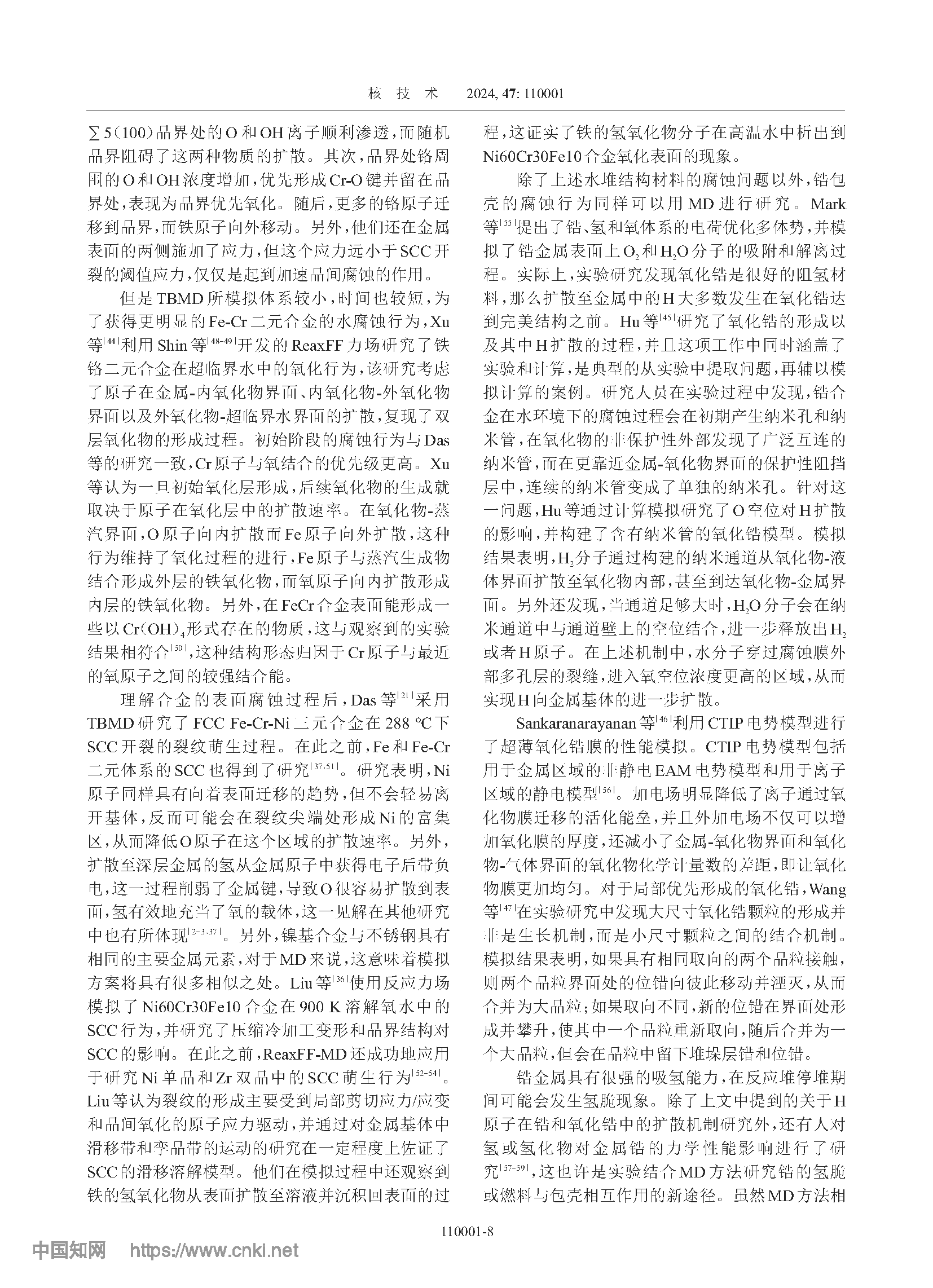 反应堆合金材料腐蚀的分子动力学 模拟研究进展