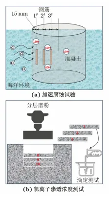 (1) 钢筋表面CaAl-LDH通过与氯离子发生交换,不仅降低钢筋周围氯离子含量,而且增强了钢筋钝化状态,显著提升钢筋抗氯盐侵蚀性能。 (2) 混凝土结构中CaAl-LDH能够降低侵入的游离氯离子含量,从而降低氯离子在混凝土中的扩散系数及表面氯离子含量,并提升钢筋锈蚀的临界氯离子浓度,显著延长海洋环境中钢筋混凝土结构的服役寿命。