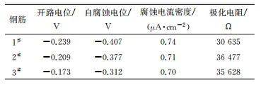 2. 1 CaAl-LDH的性能表征 从图2(a)中可以看出,在2θ为11°、22°附近存在强衍射峰,说明CaAl-LDH具有良好的结晶度,通过与标准卡片(JCPDS12-0008) 对比(003) 峰位置所对应的度数为11.5°,进一步结合Bragg方程计算可得CaAl-LDH的层间距约为0.75nm。由图2(b)可见,试验制备的CaAl-LDH为典型二维结构,片层厚度约为50nm,横向尺寸达到微米级。对比水热方法制备的LDH可以看出,采用共沉淀和离子交换法制备的CaAl-LDH不仅结晶度高,而且具有完整的二维结构。 图2 CaAl-LDH的XRD谱及SEM图 2.2 抗氯盐侵蚀性能 LDH的层状结构可通过离子交换作用降低混泥土孔隙液中侵蚀性离子的含量,从而抑制钢筋的腐蚀。图3为钢筋在空白和添加CaAl-LDH的模拟混凝土孔隙液中的开路电位和极化曲线。结果表明,钢筋在添加CaAl-LDH的模拟混凝土孔隙液中的开路电位显著高于在空白模拟混凝土孔隙液中的。钢筋在空白模拟混凝土孔隙液中的开路电位基本维持在-0.7~-0.6V,说明在氯盐作用下钢筋表面基本无法实现钝化,并且电位值呈现先降后升的趋势,说明钢筋在初期发生氯盐腐蚀之后锈蚀产物附着在钢筋表面,随着锈蚀层厚度增加,电位向正向偏移。在添加CaAl-LDH的模拟混凝土孔隙液中,钢筋的开路电位先升后降,最后趋于稳定。在浸泡初期CaAl-LDH与钢筋附近的Cl-发生离子交换,置换出的NO2(-)与OH-共同提升钢筋表面的钝化作用,因此开路电位上升;之后,在浓差扩散作用下,远处Cl-向钢筋附近扩散,并与NO2(-)发生相互作用,最终实现动态平衡,因此开路电位趋于稳定。从极化曲线可以看出,在空白模拟混凝土孔隙液中,钢筋的自腐蚀电位较低,表面锈层无法阻止内部钢筋的持续腐蚀,而在添加CaAl-LDH的模拟混凝土孔隙液中,钢筋仍保持良好的钝化状态,自腐蚀电位及在阳极区的破钝电位显著增大。综合电化学测试结果可知,CaAl-LDH在模拟混凝土孔隙液中对钢筋耐蚀性具有较大的提升作用。 图3 钢筋在空白和添加CaAl-LDH的模拟混凝土液中的开路 电位及浸泡60d后的极化曲线 表1 在165g/LNaCl溶液中浸泡3个月后添加CaAl-LDH混凝土中不同深度处钢筋的电化学腐蚀数据 2.3 耐久性评估结果 在溶液体系中,无论是CaAl-LDH还是腐蚀介质均具有较高的迁移和交换效率,因此CaAl-LDH对抑制钢筋腐蚀具有较为直观的效果,而在混凝土体系中,混凝土材料发生水化后结构变得致密,这显著阻碍了离子扩散与交换。图4、图5及表1为距离保护层不同深度的钢筋在高含量氯盐溶液中浸泡3个月后的电化学腐蚀数据。结果表明:与溶液体系(图3)相比,混凝土中所有钢筋的开路电位均显著正向偏移,这主要得益于混凝土水泥水化产物对钢筋表面的钝化作用。随着混凝土层厚度增加,钢筋的开路电位进一步正向偏移,其原因是外部环境中溶液扩散导致外层混凝土湿度高而内层则仍保持干燥状态。动电位极化曲线及电化学阻抗谱也显示,不同深度钢筋具有相似的腐蚀行为,阳极区保持较宽范围的钝化,腐蚀控制步骤为离子扩散过程。从腐蚀电流密度来看,不同深度钢筋均处于钝化状态,外部Cl- 等侵蚀性介质尚未对钢筋产生不利影响。 图4 在165g/LNaCl溶液中浸泡3个月后添加CaAl-LDH混凝土中不同深度处钢筋的开路电位和极化曲线 图5 在165g/LNaCl溶液中浸泡3个月后添加CaAl-LDH混凝土中不同深度处钢筋的电化学阻抗谱 从电化学测试结果不能确定,混凝土中的CaAl-LDH是否与外部侵蚀性介质发生了交换作用。因此,对空白及添加CaAl-LDH混凝土进行分层磨粉,测试不同深度处混凝土中的游离氯离子含量,结果如图6所示。在高含量氯盐溶液中浸泡3个月后,空白混凝土在距表层20mm的深度范围内已存在一定量的氯离子,而在添加CaAl-LDH混凝土中氯离子含量则显著低于空白混凝土。氯离子测试结果说明,混凝土中的CaAl-LDH已经与部分侵入的氯离子发生了离子交换,氯离子含量降低 了60%以上。 图6 空白和添加CaAl-LDH混凝土中氯离子含量分布 此外,由离子交换所释放的阻锈基团也有助于提升钢筋的临界氯离子含量。从图7可见,当空白模拟混凝土孔隙液中氯离子浓度为0.15mol/L时,钢筋发生腐蚀;在添加CaAl-LDH的模拟混凝土孔隙液中,当氯离子浓度达到0.30mol/L时,钢筋才发生腐蚀,钢筋锈蚀的临界氯离子浓度提高了1倍。CaAl-LDH对氯离子含量的降低体现在降低氯离子在混凝土中的扩散系数和表面氯离子含量,耐蚀性提高则体现在钢筋锈蚀的临界氯离子浓度提高。这三个影响钢筋混凝土寿命的关键指标存在式(1)所示关系。 式中:ti为钢筋混凝土的寿命,a;h为混凝土层厚度,mm;Dt为氯离子扩散系数,mm2/a;wct为钢筋锈蚀的临界氯离子质量分数,%;wi为初始氯离子质量分数,%;ws为钢筋表面氯离子质量分数,%。 图7 在空白和添加CaAl-LDH的模拟混凝土孔隙液中氯离子含量对开路电位的影响 为进一步明确CaAl-LDH对混凝土寿命提升作用,对图6中数据进行拟合得到氯离子扩散系数和表面氯离子质量分数,结果如图8所示。从图8中可以看出,氯离子扩散系数从空白混凝土中的7.97mm2/a 下降至添加 CaAl-LDHs混凝土中的2.9 mm2/a,表面 氯离子质量分数由空白混凝土中的0.4014%降低至添加CaAl-LDH混凝土中的0.1793%,降低幅度分别达到63.6%和55.3%。将上述指标代入公式 (1) ,以浪溅区混凝土(混凝土厚度20mm) 为例进行计算。结果表明,CaAl-LDH能够使混凝土寿命提升15倍以上。考虑到CaAl-LDH与侵蚀性离子发生离子交换后其含量降低,预期寿命也能提升10倍以上
