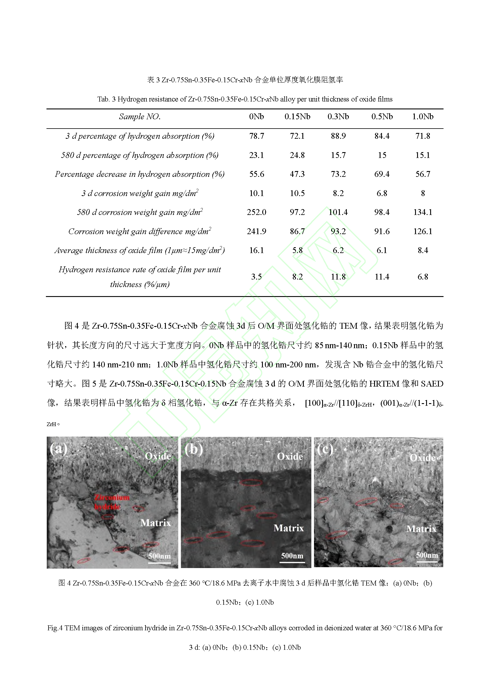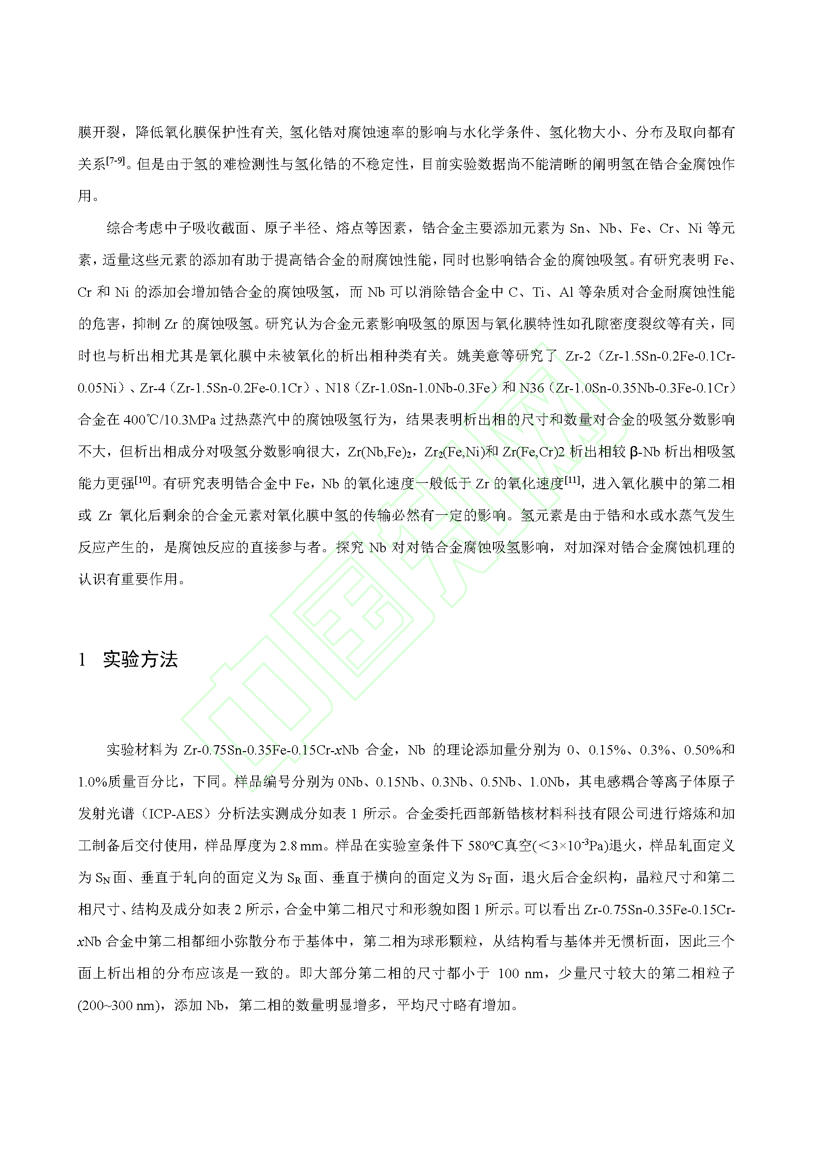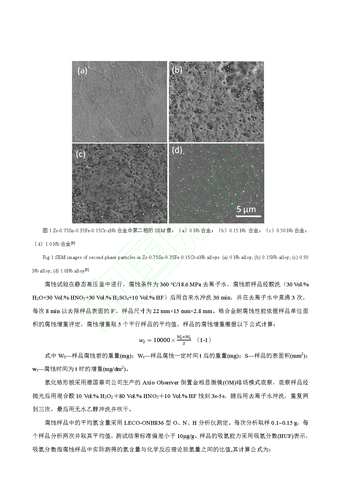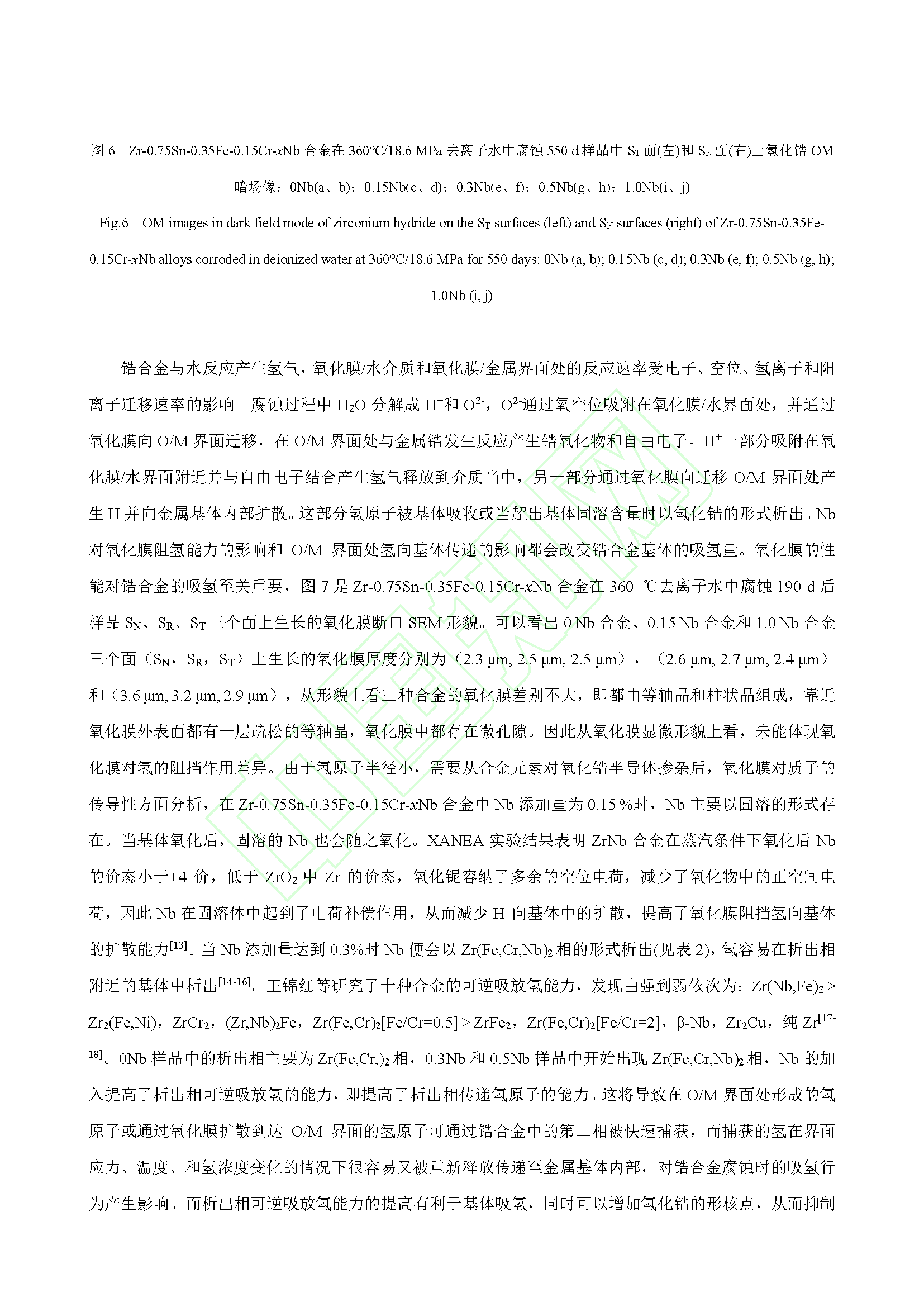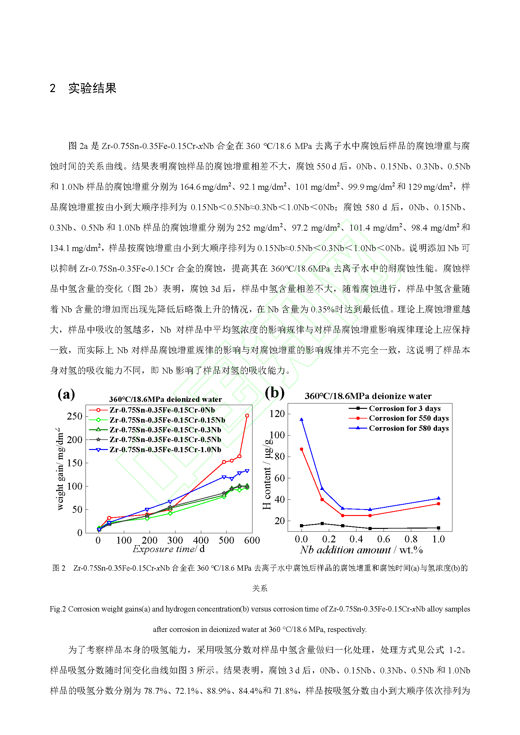 Nb 对锆合金腐蚀吸氢的影响