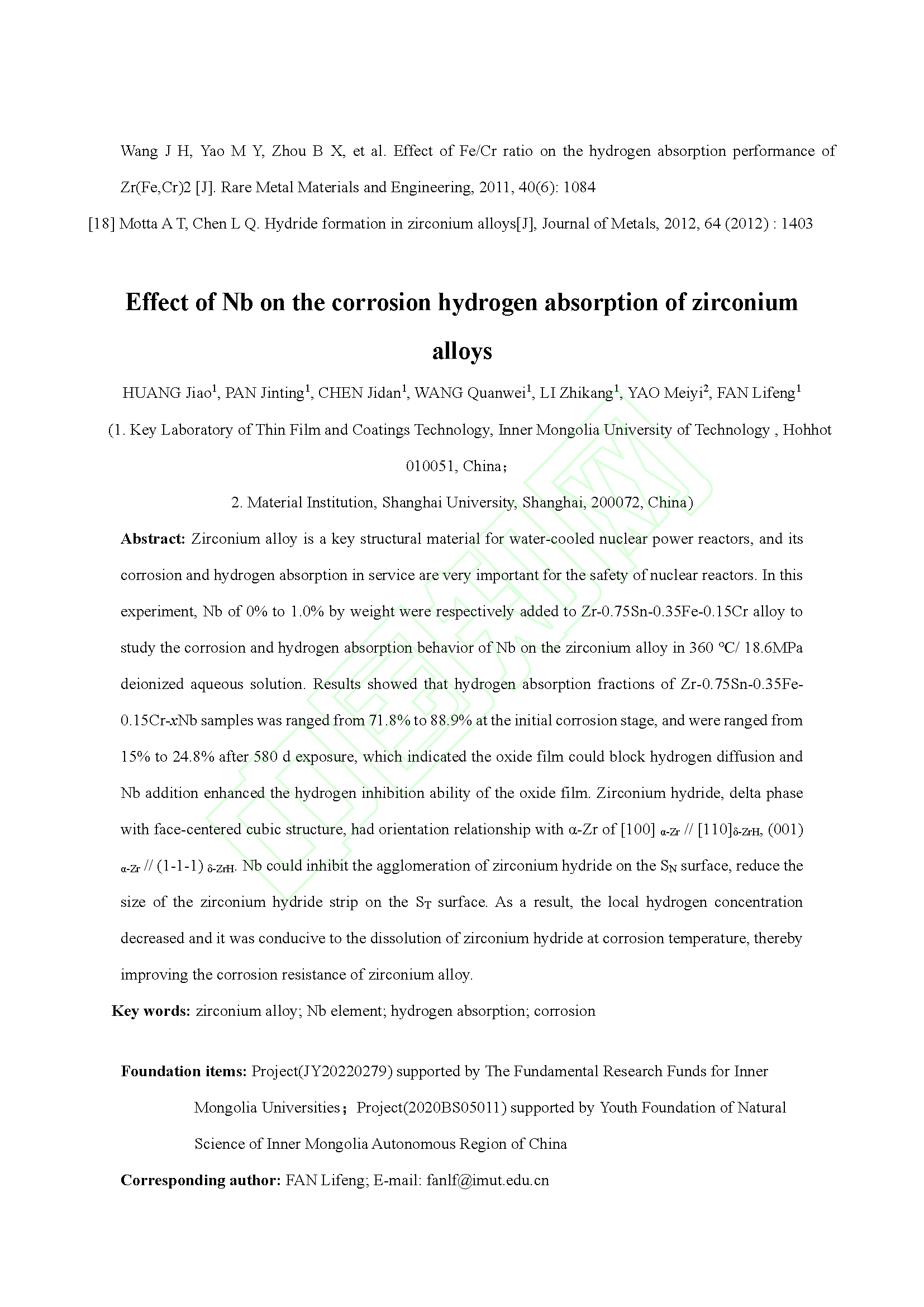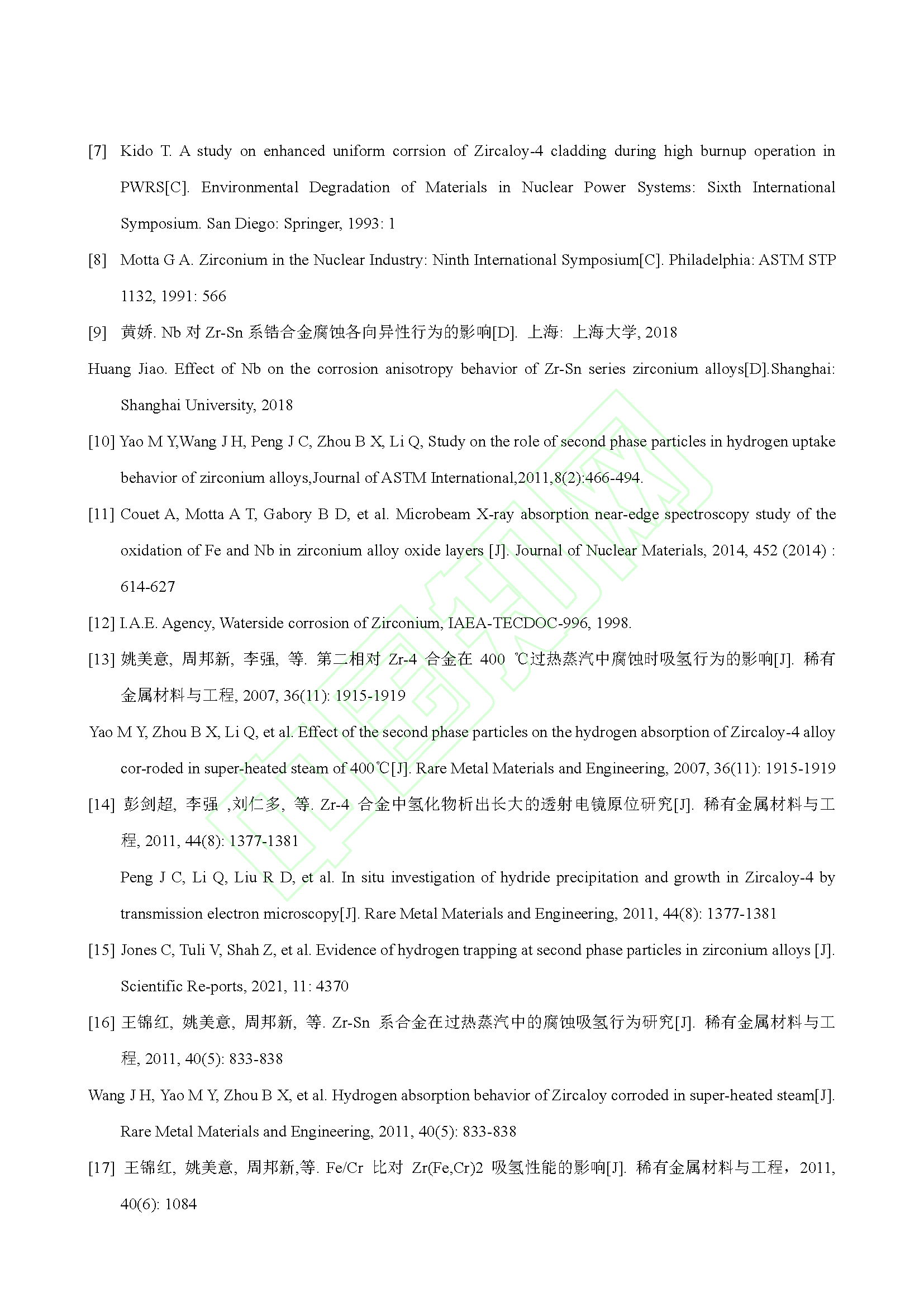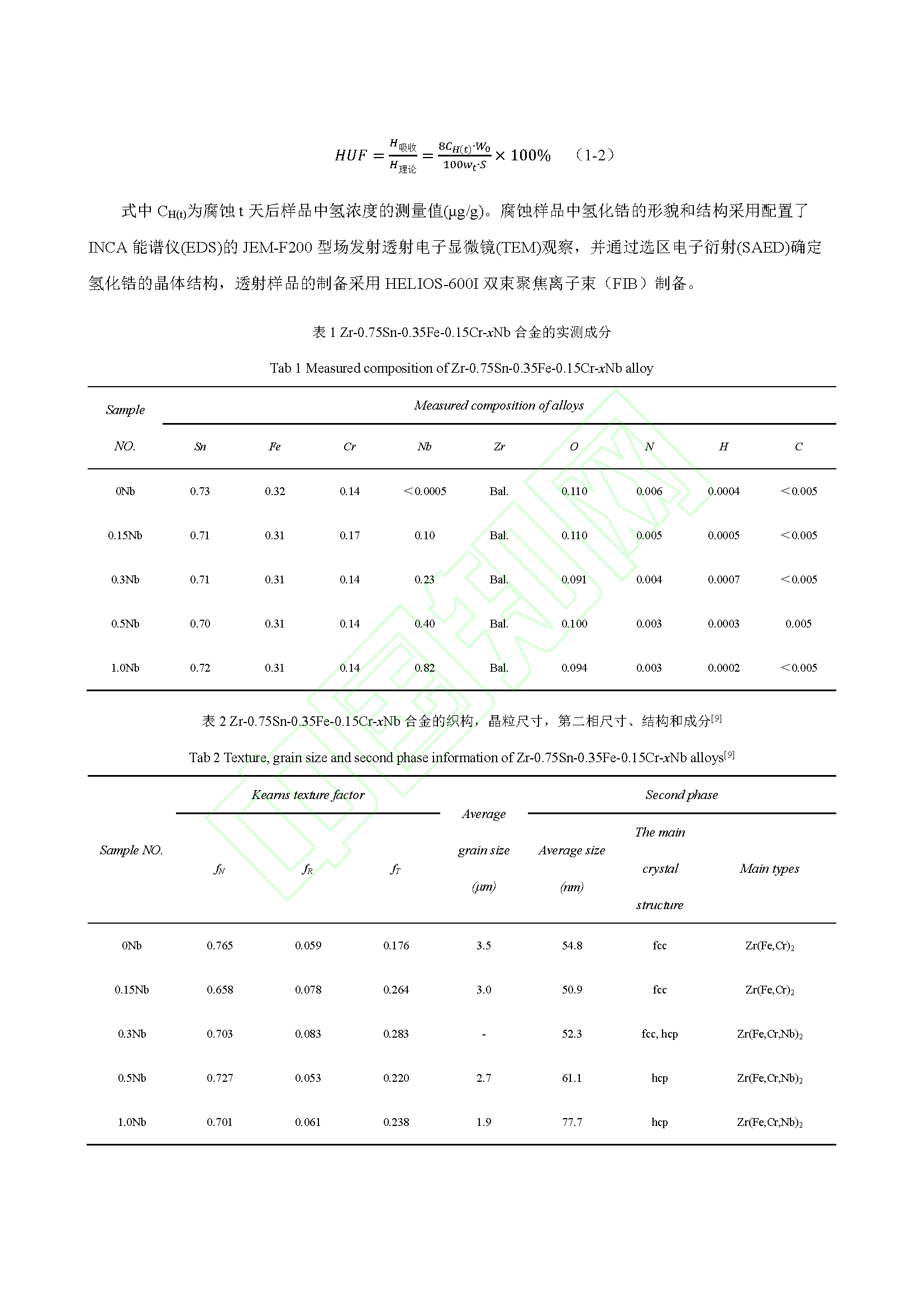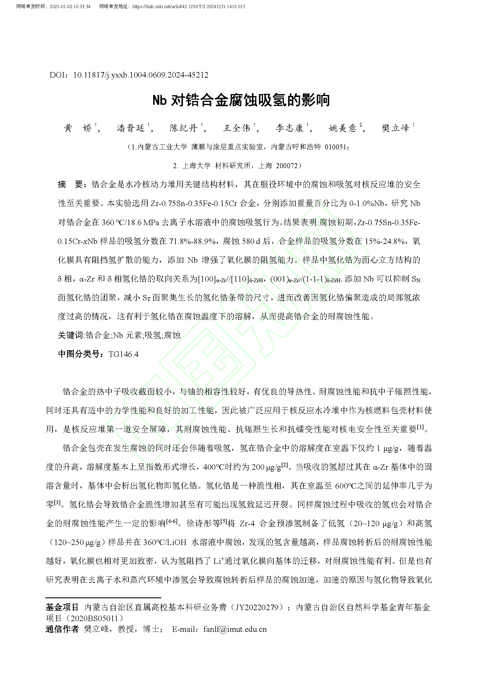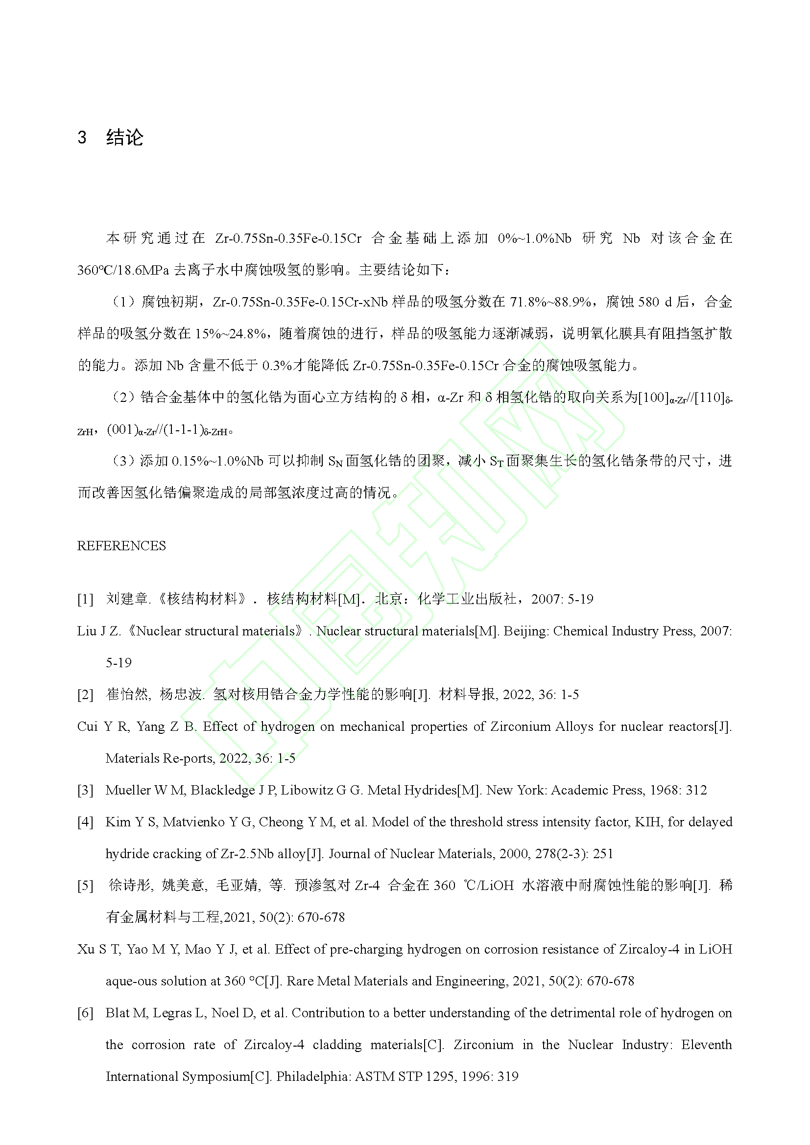 Nb 对锆合金腐蚀吸氢的影响