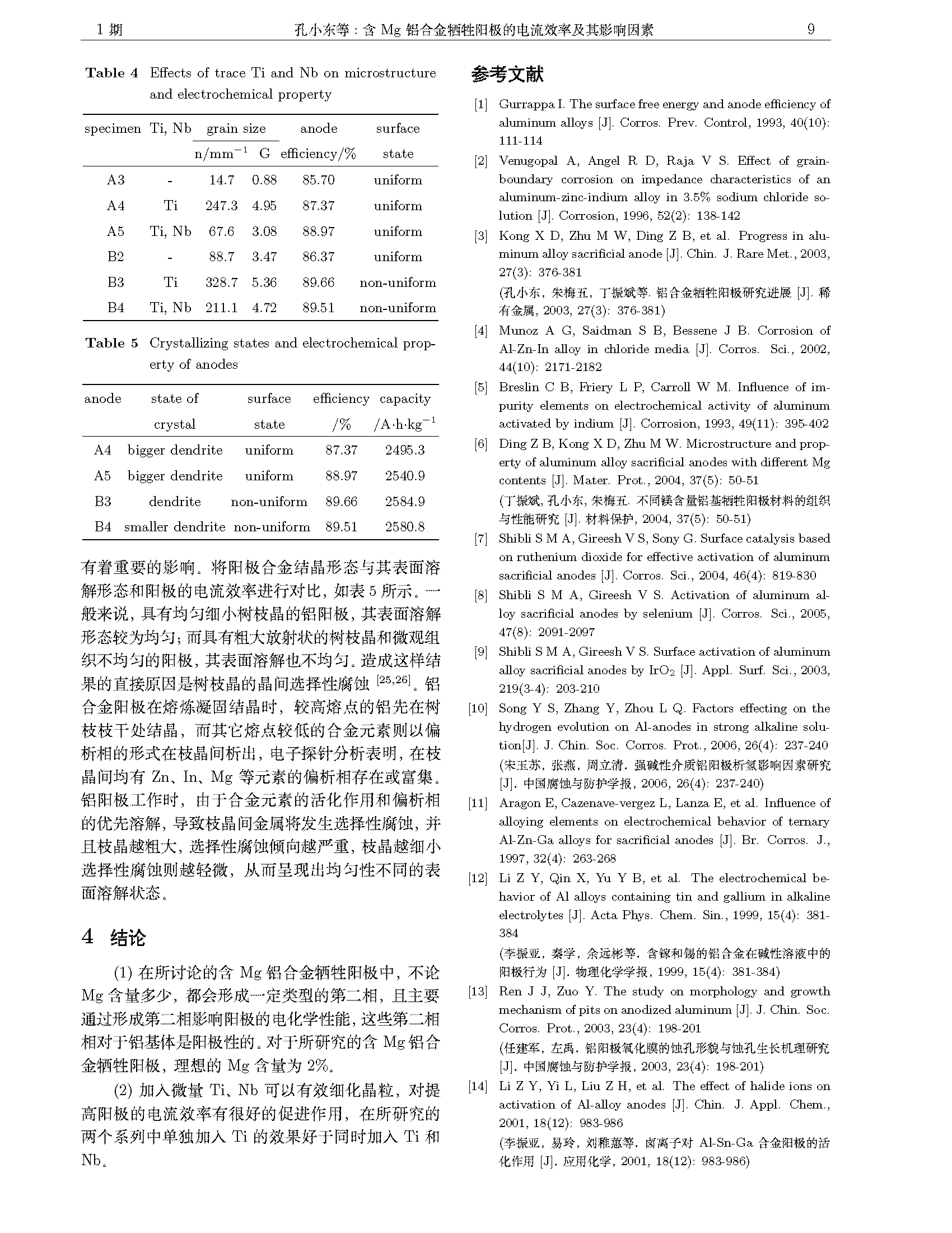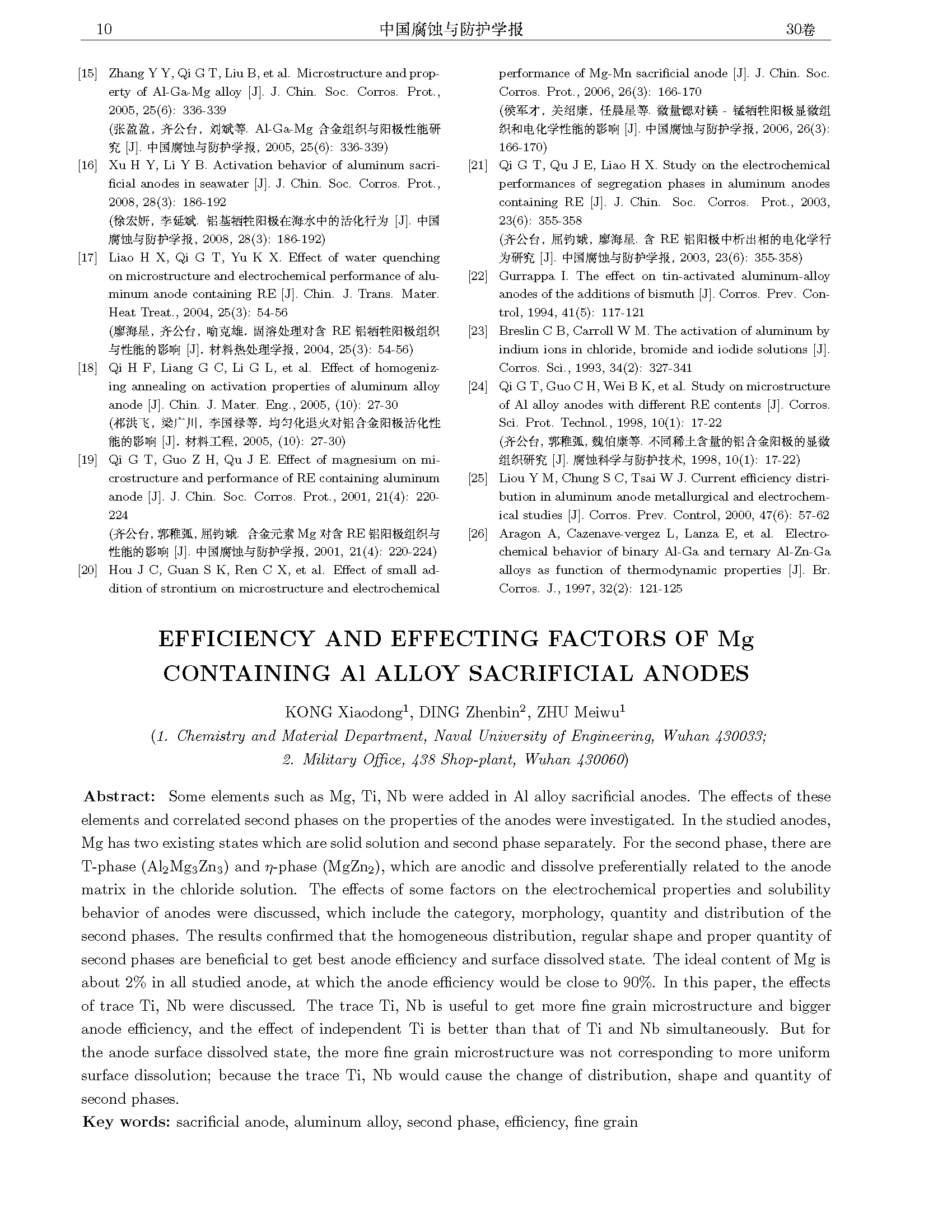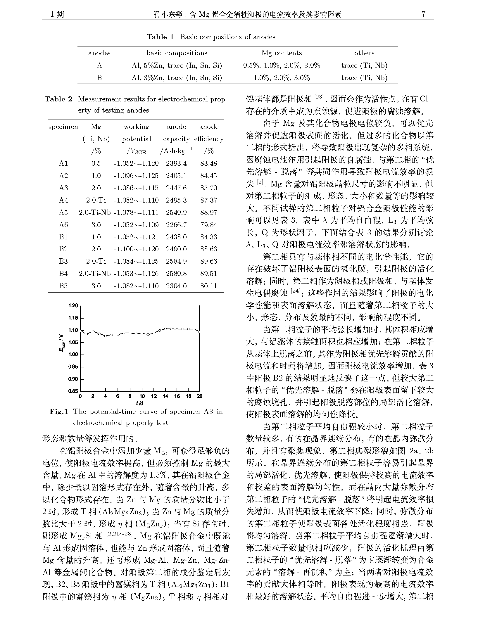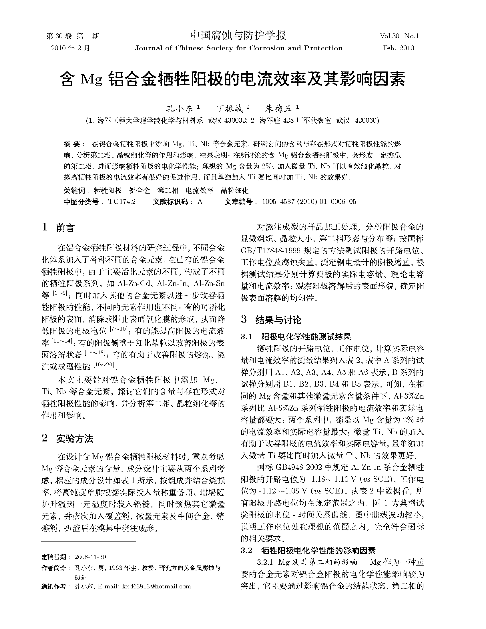 含Mg铝合金牺牲阳极的电流效率及其影响因素