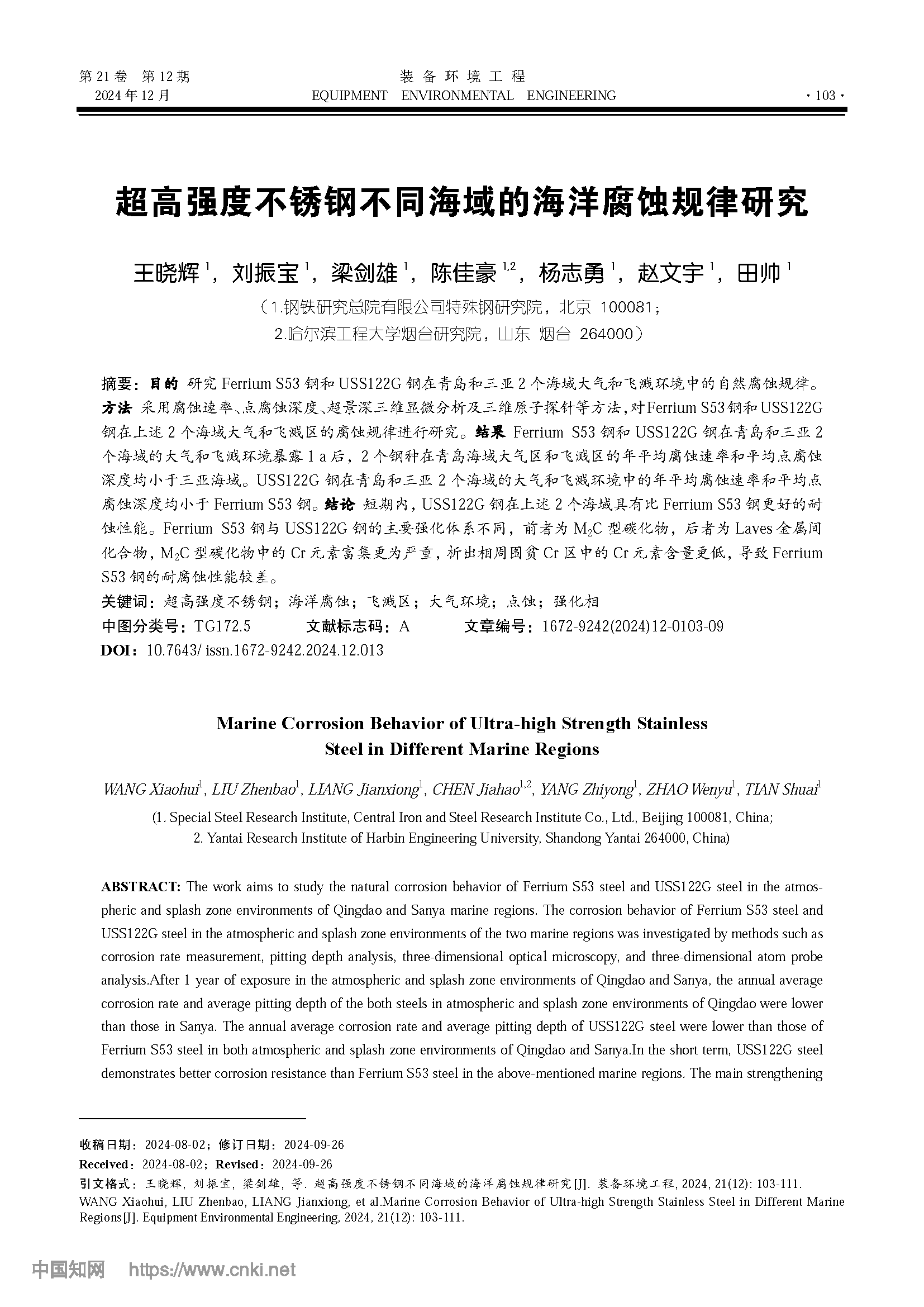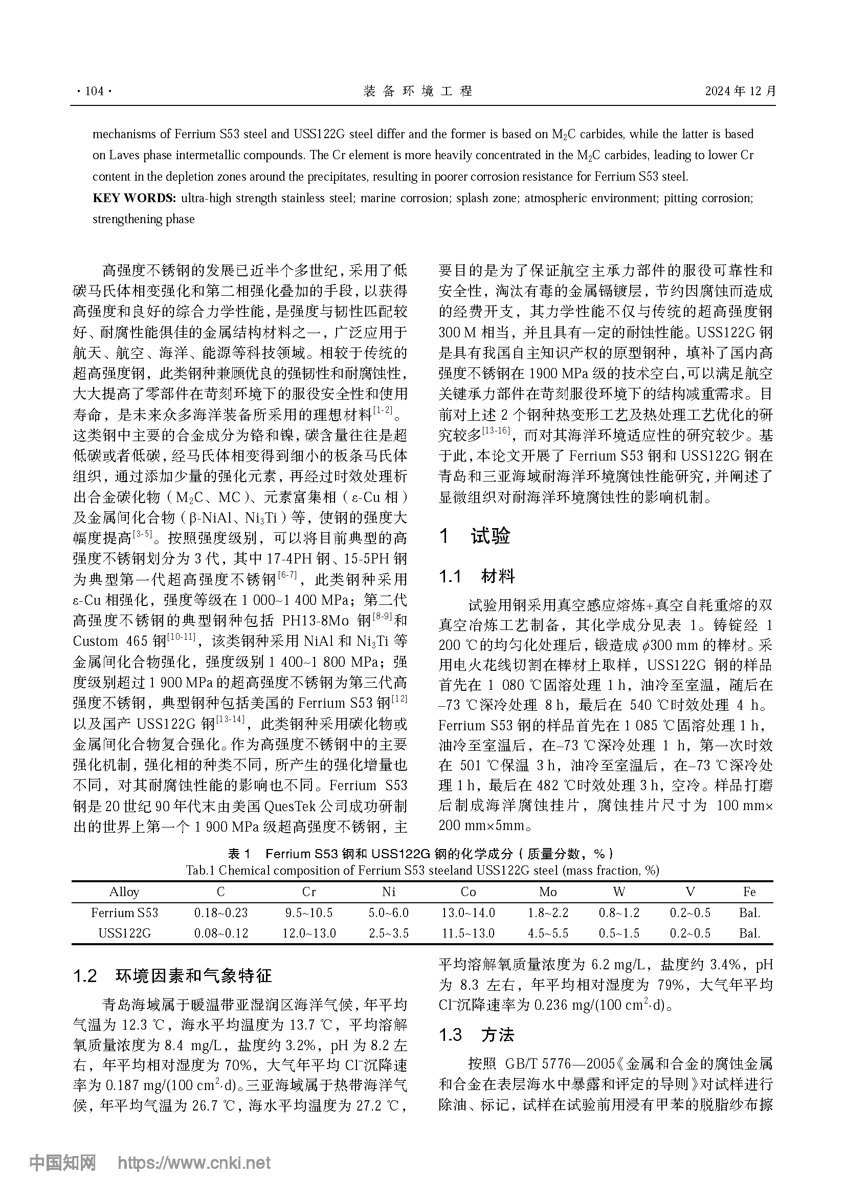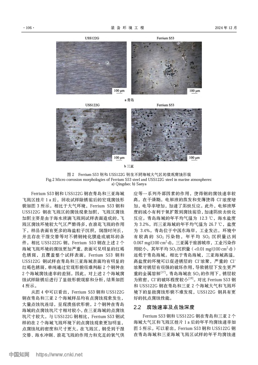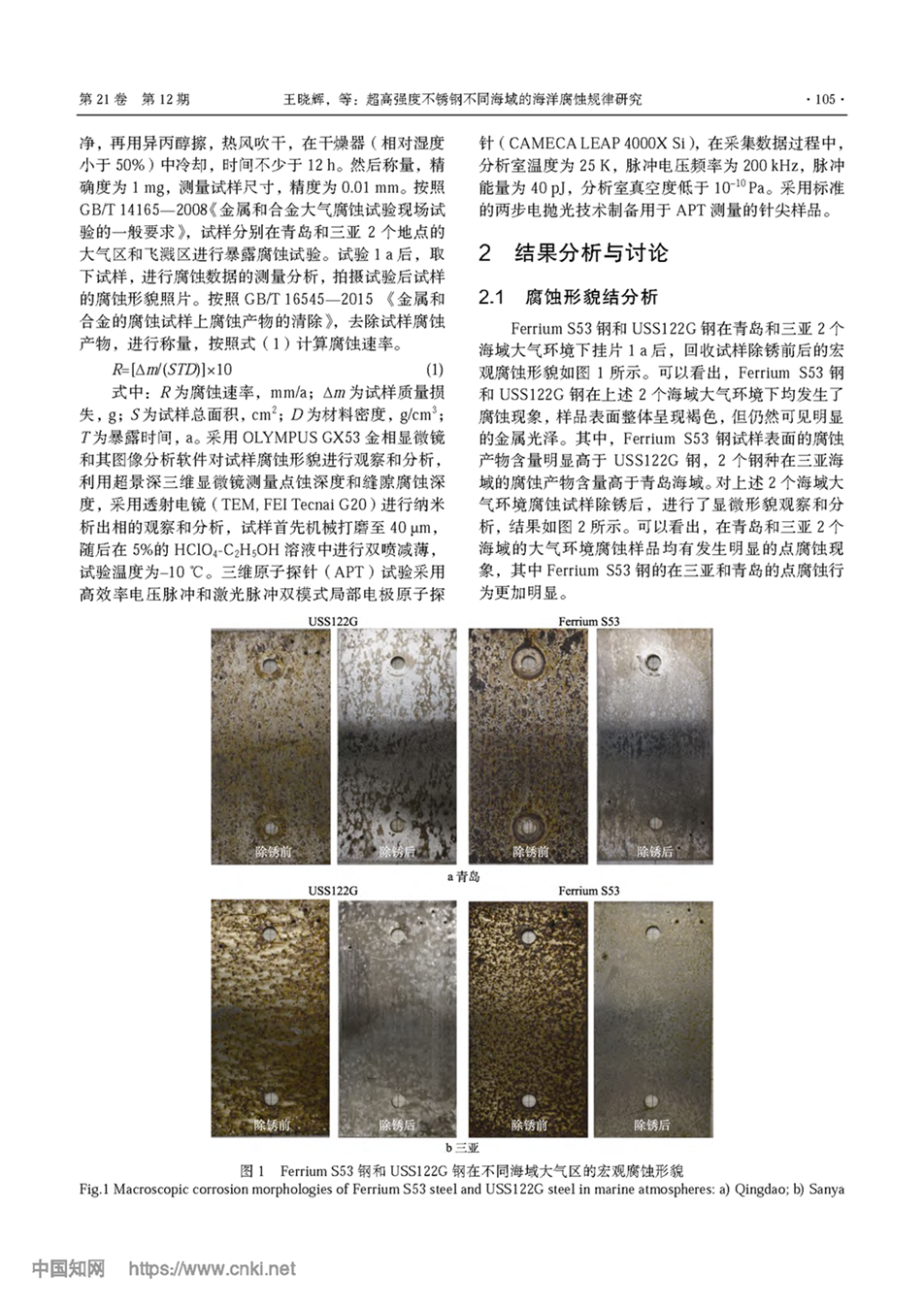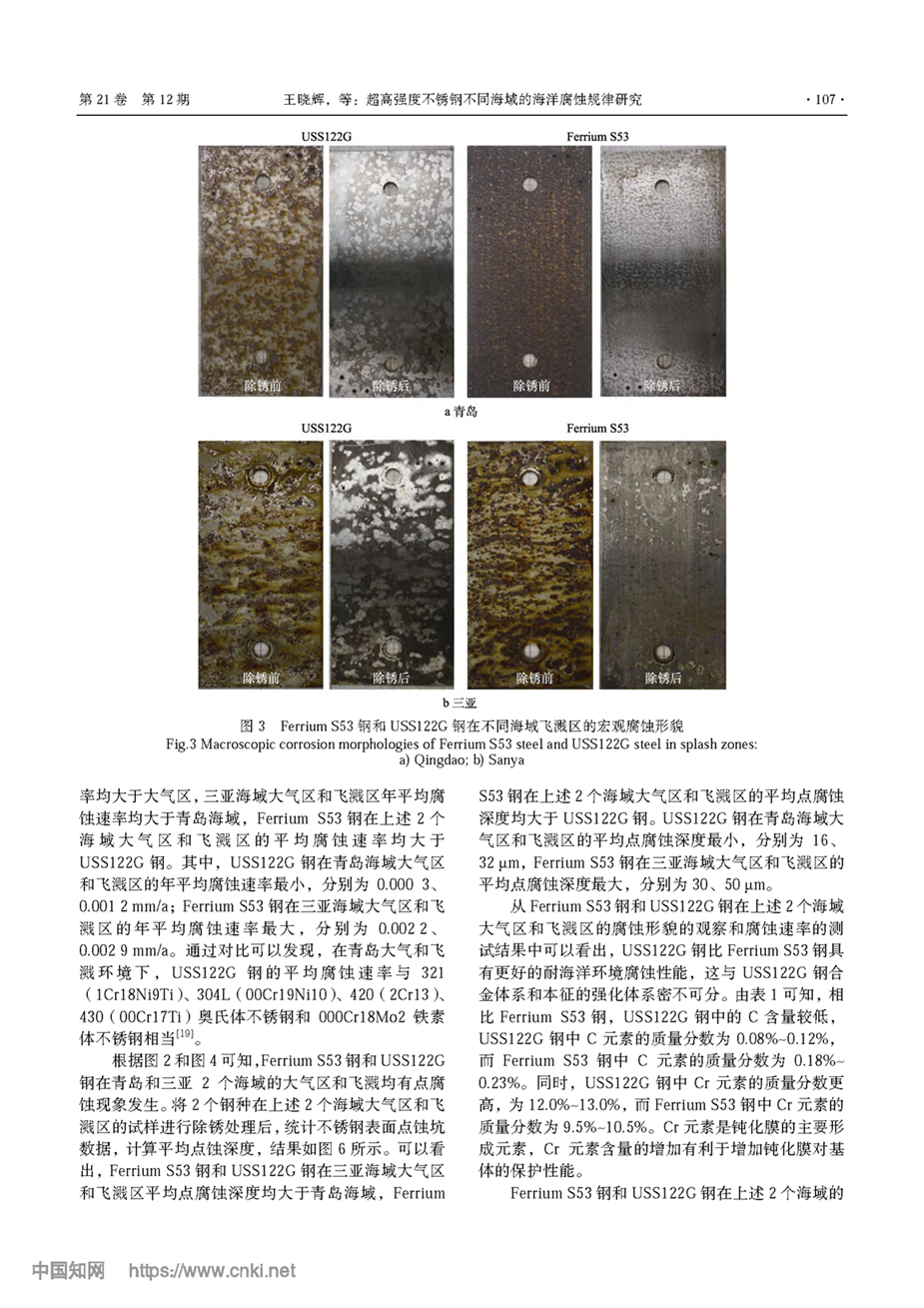 超高强度不锈钢不同海域的海洋腐蚀规律研究