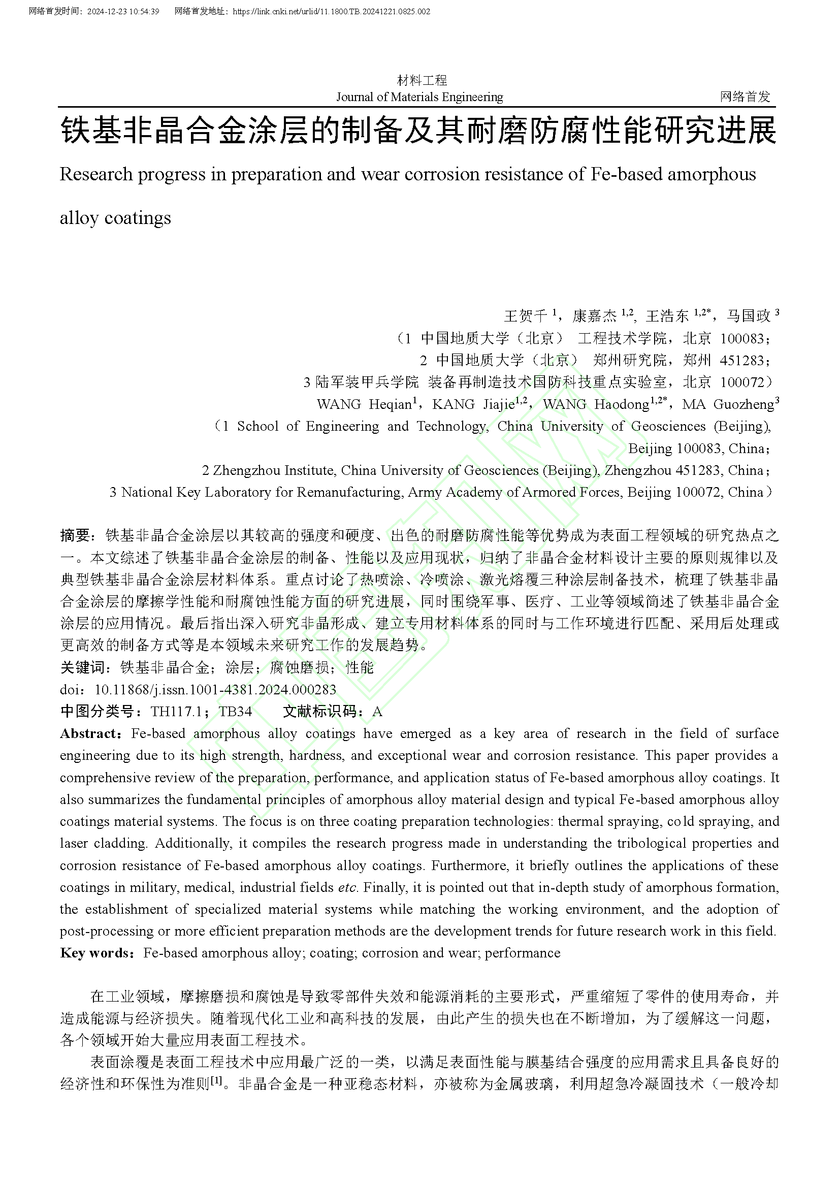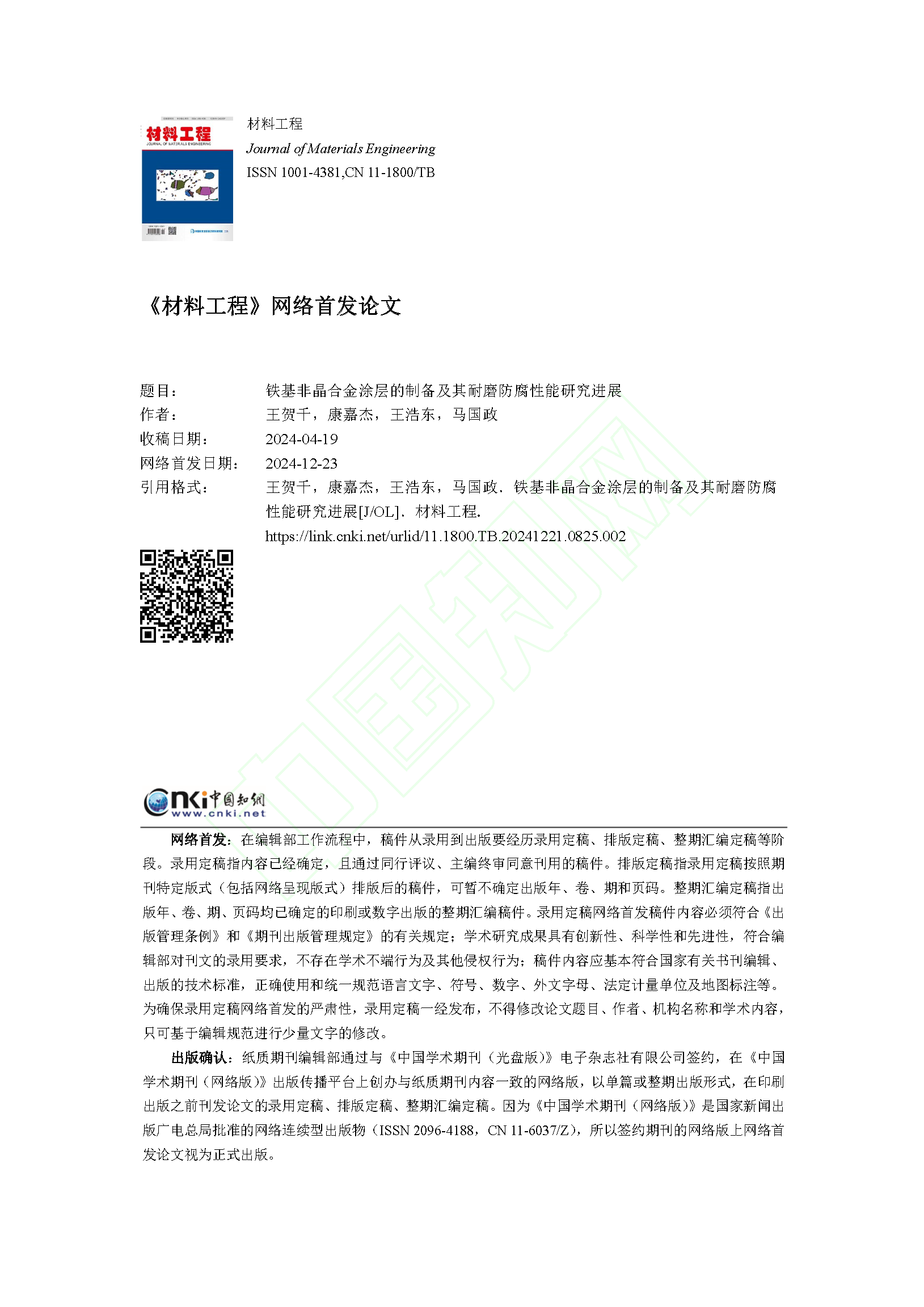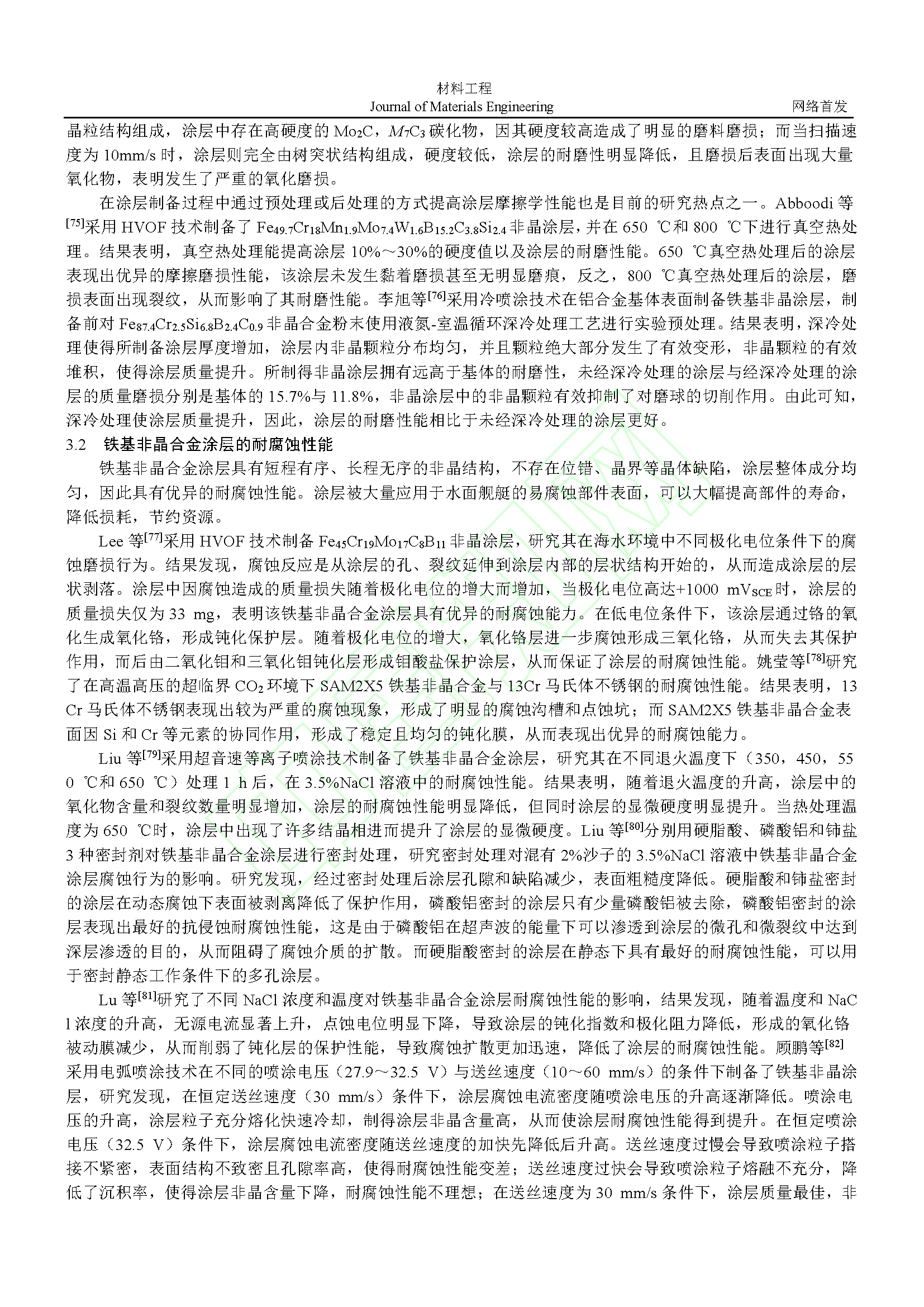 铁基非晶合金涂层的制备及其耐磨防腐性能研究进展