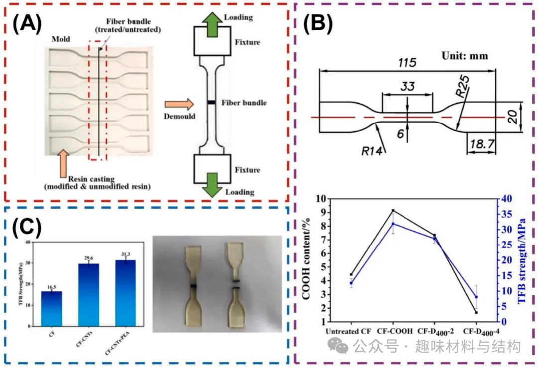 横向纤维束拉伸试验:在硅胶模具中制备TFBT样品并对TFBT样品进行拉伸加载;