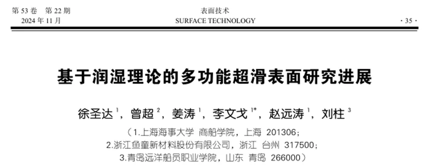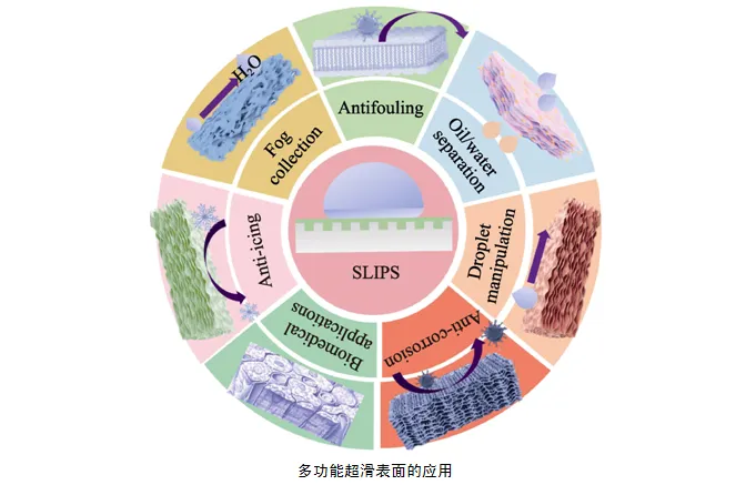 超滑表面(SLIPS)是一种通过向具有微纳米多孔结构的衬底注入低表面能液体而形成的全憎表面,能够排斥多种液体,具有液滴滑动阻力小、力学性能好、耐高温高压、自清洁、自修复、润滑减摩等特性,在防腐、防污、减阻等领域具有广阔的应用前景。上海海事大学李文戈教授团队综述了超滑表面的润湿理论,总结了水相和油相在气相下的扩散系数Sow(a)、液滴外部和液滴下方的润湿结构、每种结构单位面积的总界面能、每种结构稳定性的等效判据以及超滑表面存在的12种热力学状态。讨论了超滑表面的制备原则,总结了制备粗糙基底的方法及优缺点。为了制备性能优异稳定的超滑表面,在遵循设计原理的同时,还需充分了解衬底、润滑剂、工作流体和外部气体之间的相互作用。针对多功能超滑表面的特性,综述了其在防腐蚀、防覆冰、防污、减阻、油水分离、水雾收集、生物医学7个领域的应用机理和研究现状。最后,对超滑表面的发展前景进行了展望。未来的超滑表面应朝着制备工艺简单有效、力学性能稳定、多功能化、绿色环保的方向发展。 关键词:超滑表面;润湿理论;制备方法;微/纳米结构;多功能;应用 徐圣达, 曾超, 姜涛, 等. 基于润湿理论的多功能超滑表面研究进展[J]. 表面技术, 2024, 53(22): 35-49. XU Shengda, ZENG Chao, JIANG Tao, et al. Research Progress of Multifunctional Super-slip Surfaces Based on Wetting Theory[J]. Surface Technology, 2024, 53(22): 35-49.