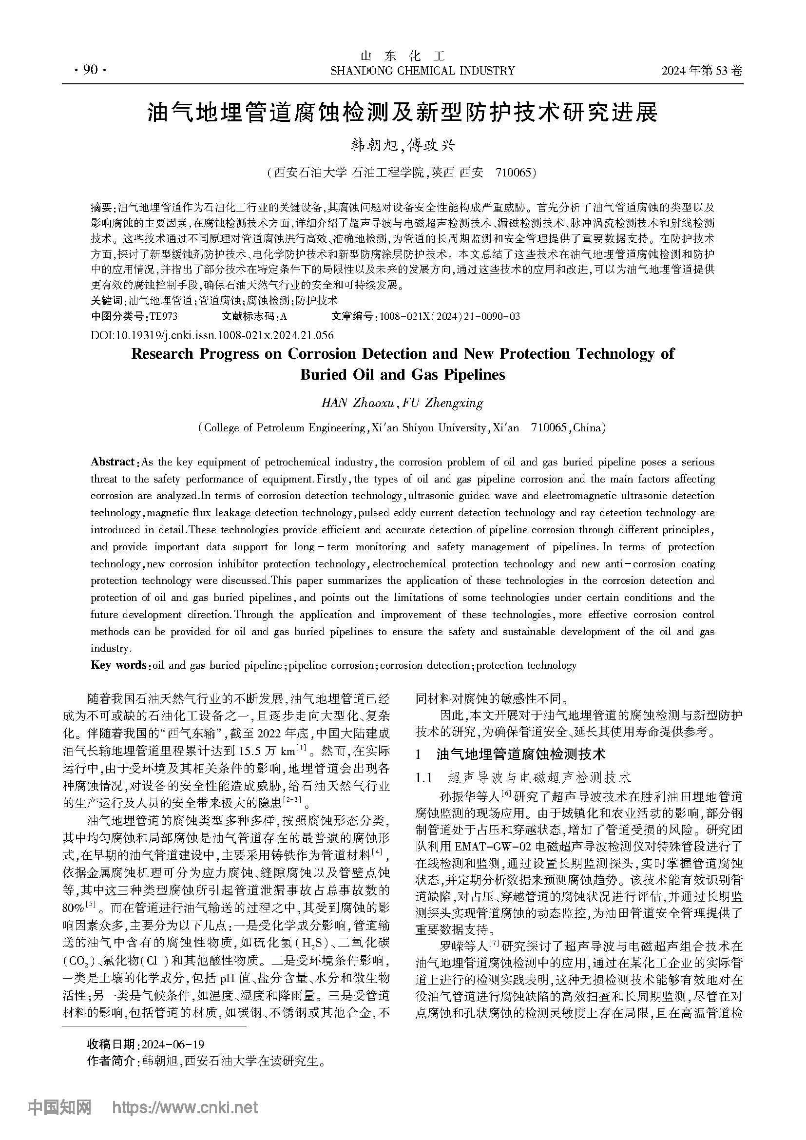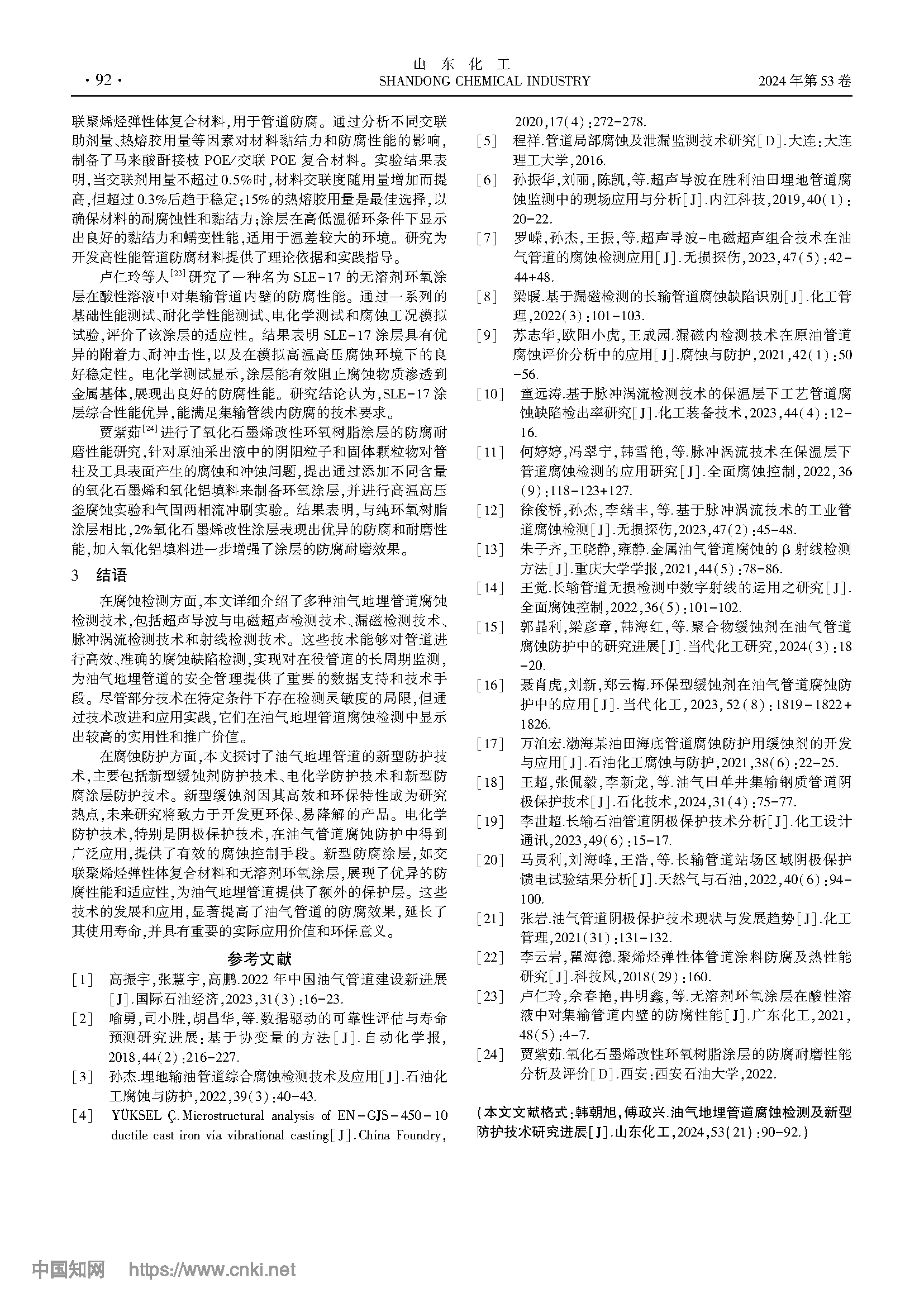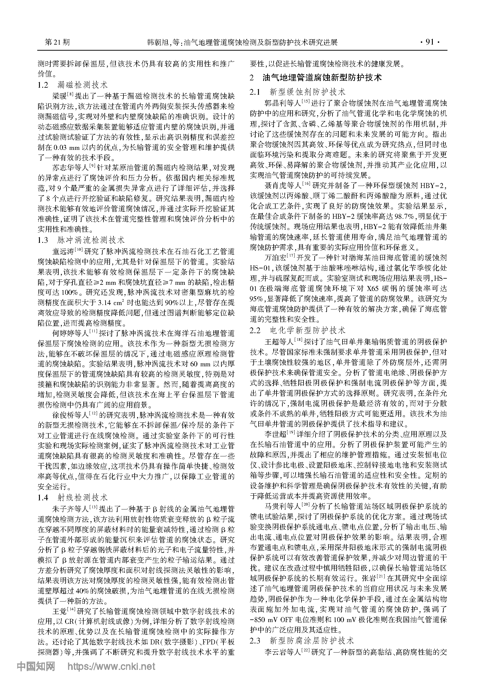 油气地埋管道腐蚀检测及新型防护技术研究进展