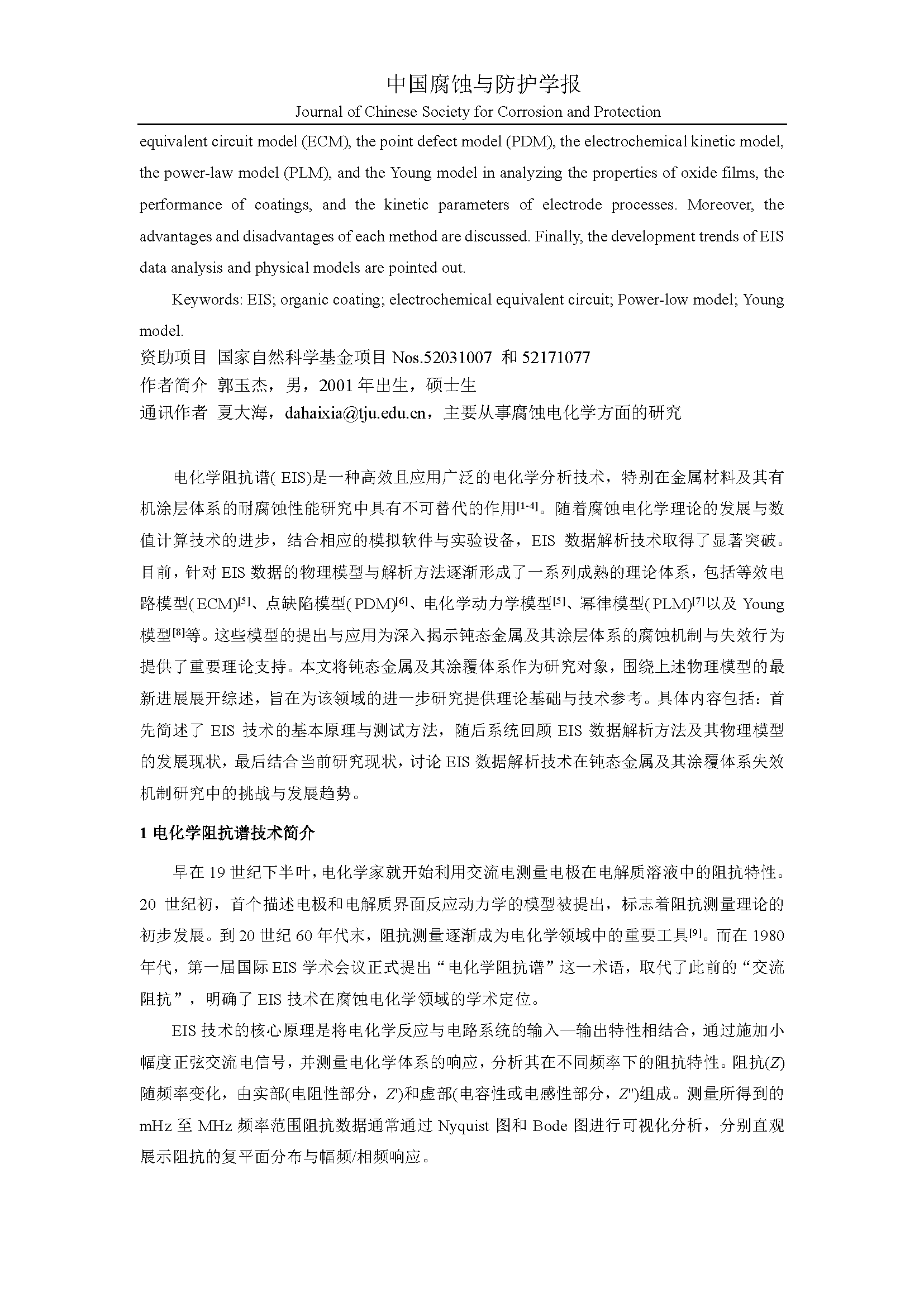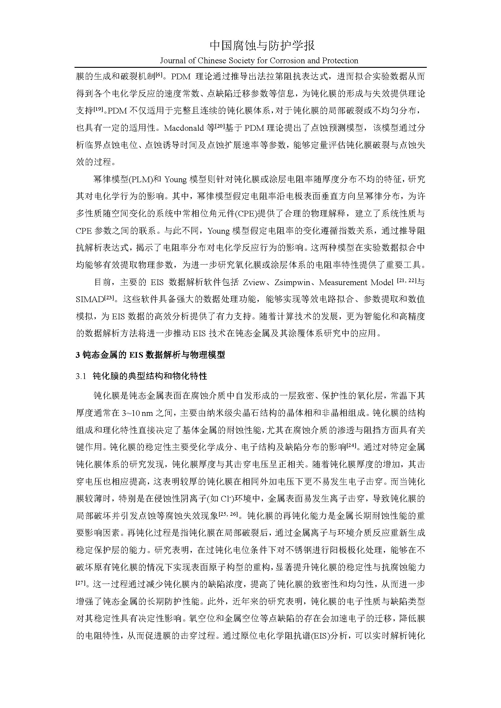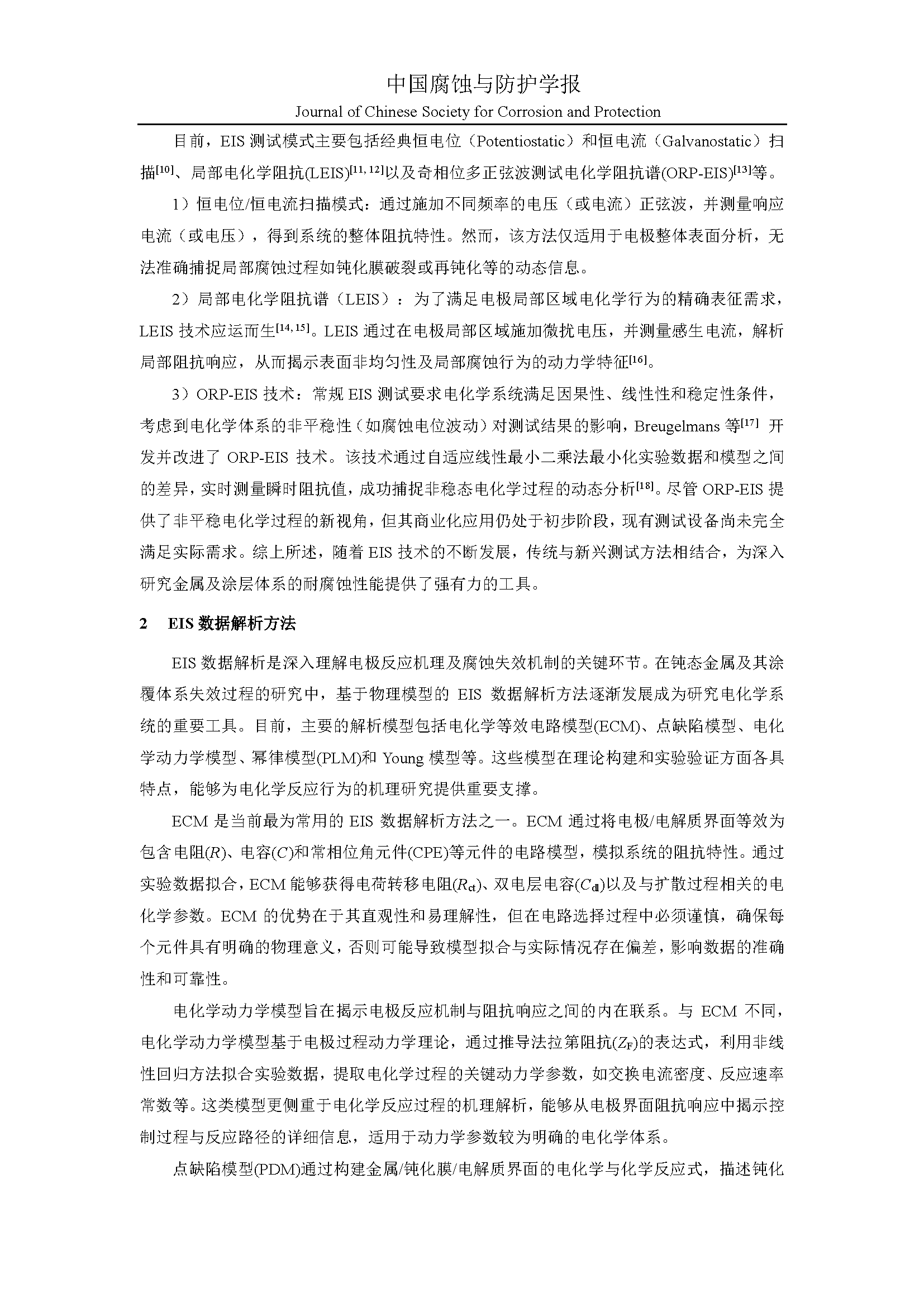 腐蚀电化学阻抗谱的数据解析与物理模型研究进展