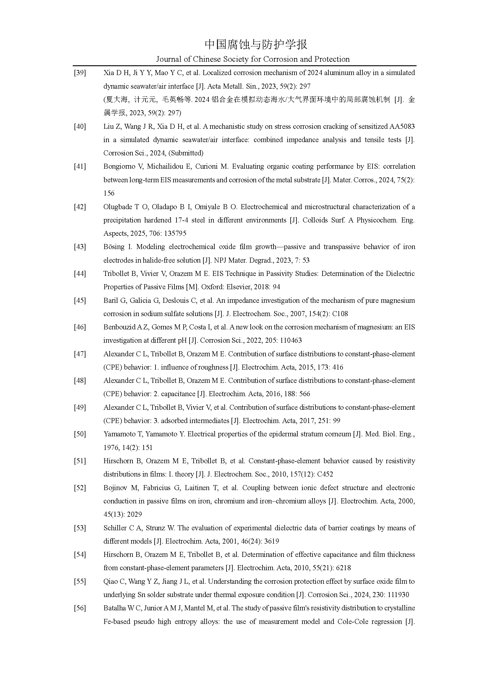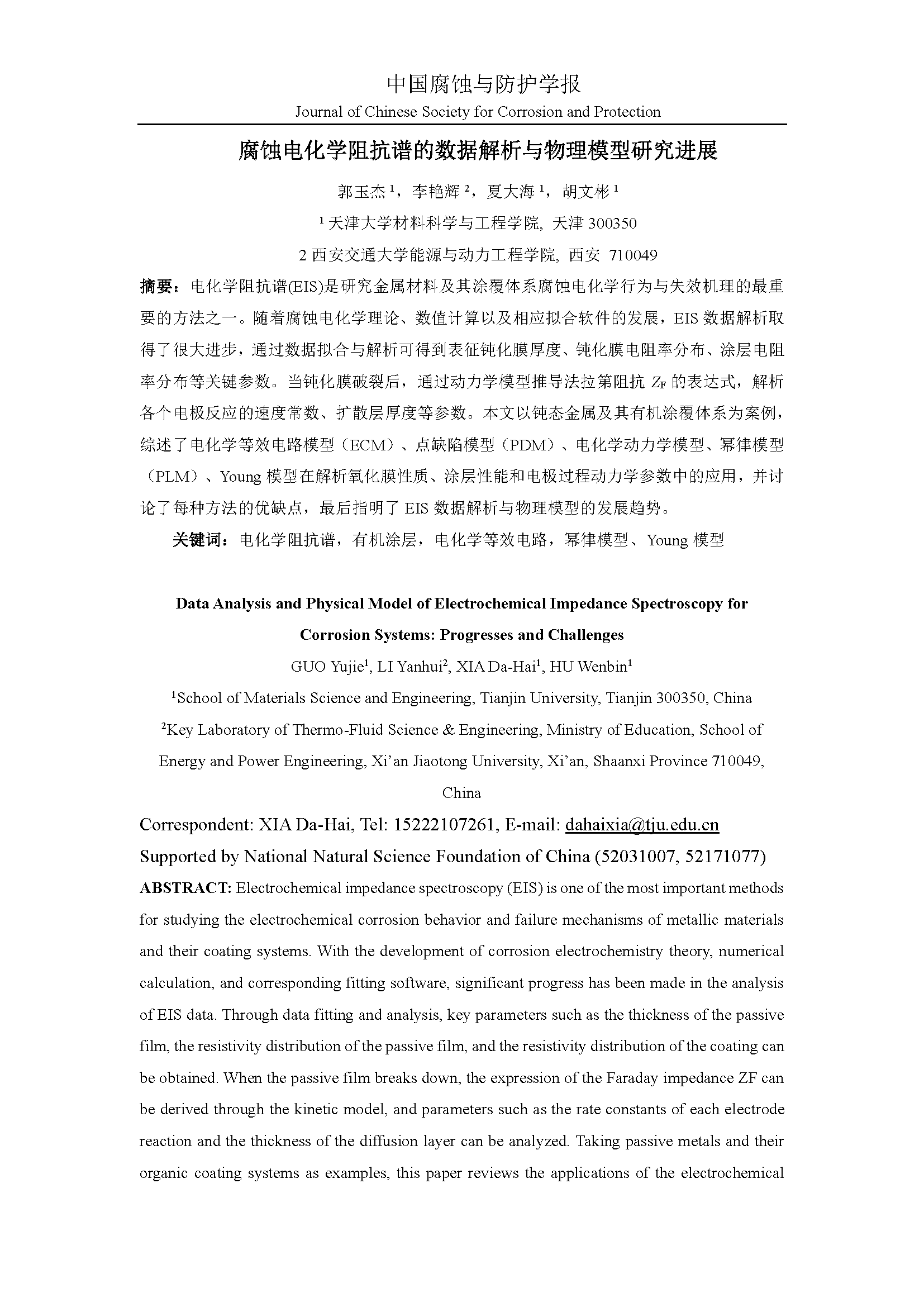 来源:中国腐蚀与防护学报